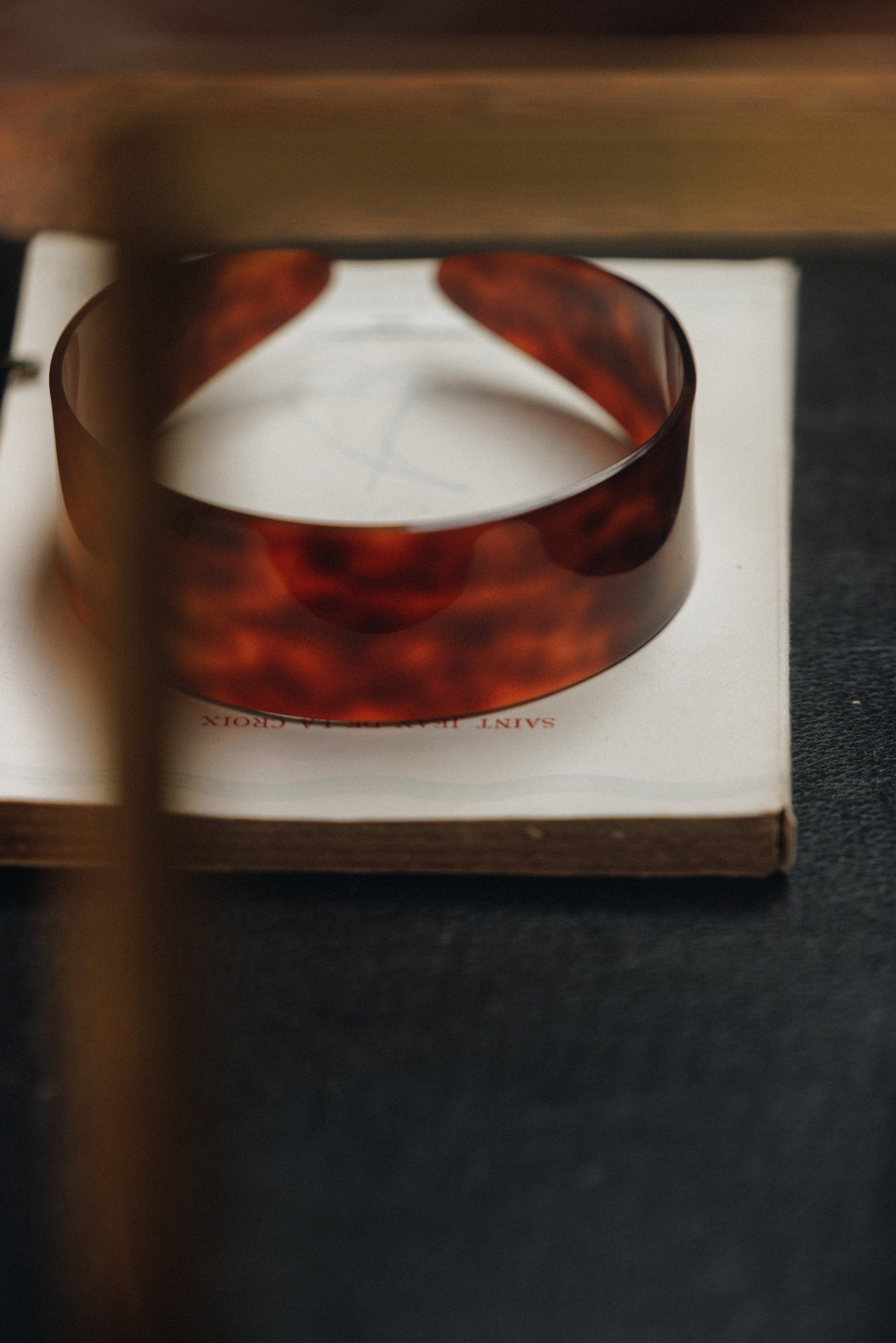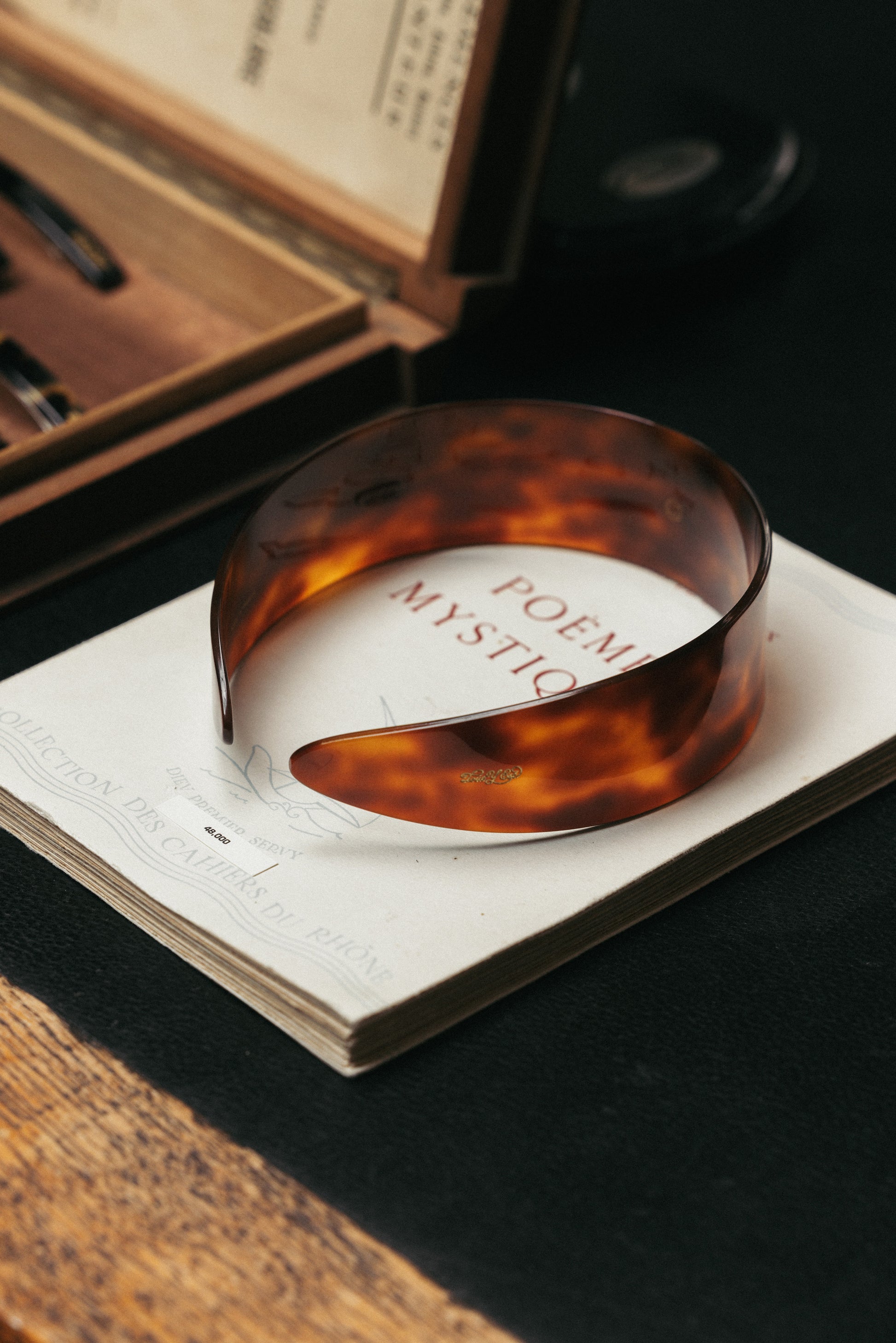 아세테이트는 면화와 목재 펄프에서 얻은 셀룰로오스를 원료로 한 천연 소재입니다. 합성 플라스틱과 달리 부드러운 질감과 자연스러운 광택, 깊이 있는 색감을 지니며, 색이 소재 전체에 고르게 스며들어 오랜 시간 사용해도 선명함과 광택을 유지합니다. 플라스틱 보다 품질과 질감이 훨씬 뛰어나지만, 제작 과정이 까다롭고 비용이 높아 고급 안경테나 헤어 액세서리에 주로 사용됩니다. 그중에서도 오요나에서 완성된 아세테이트는 표면이 유리처럼 매끄럽고, 색과 결이 선명하며, 뛰어난 내구성으로 형태와 아름다움을 오래 유지합니다.