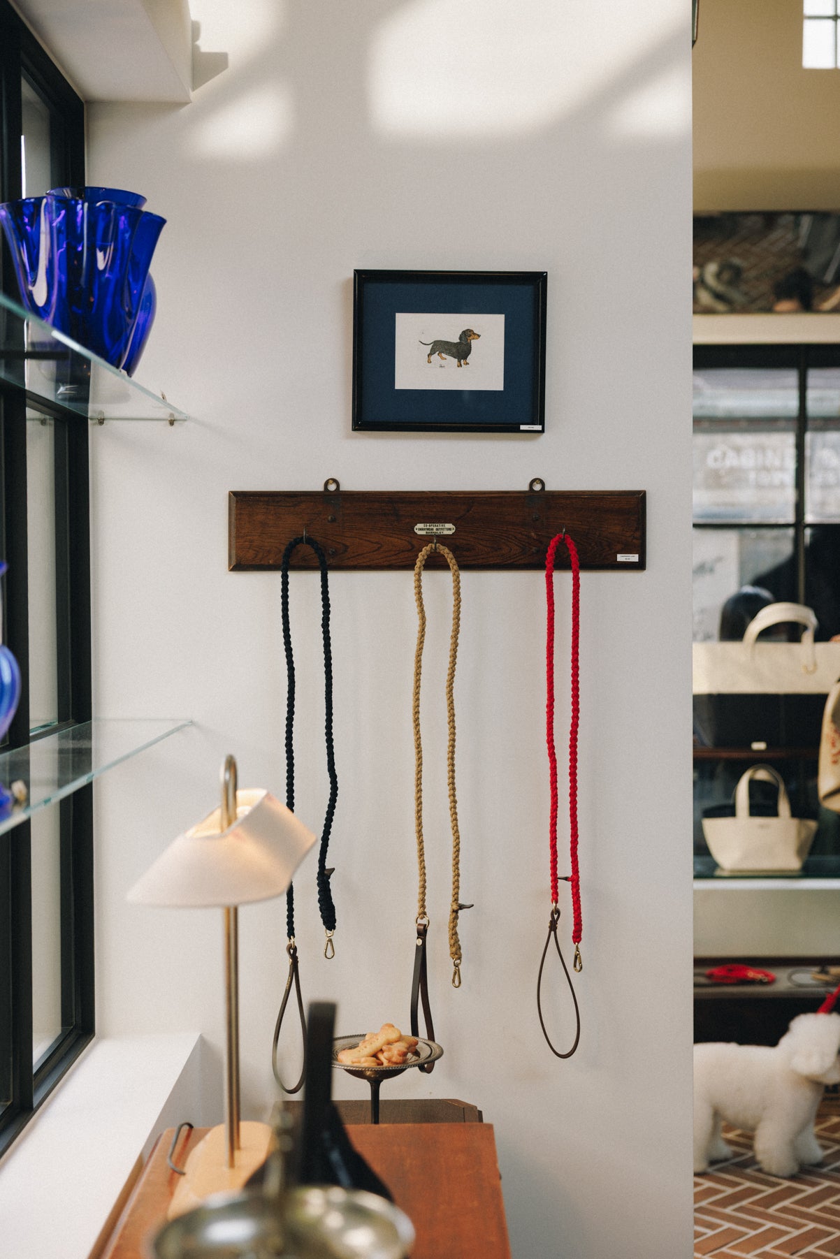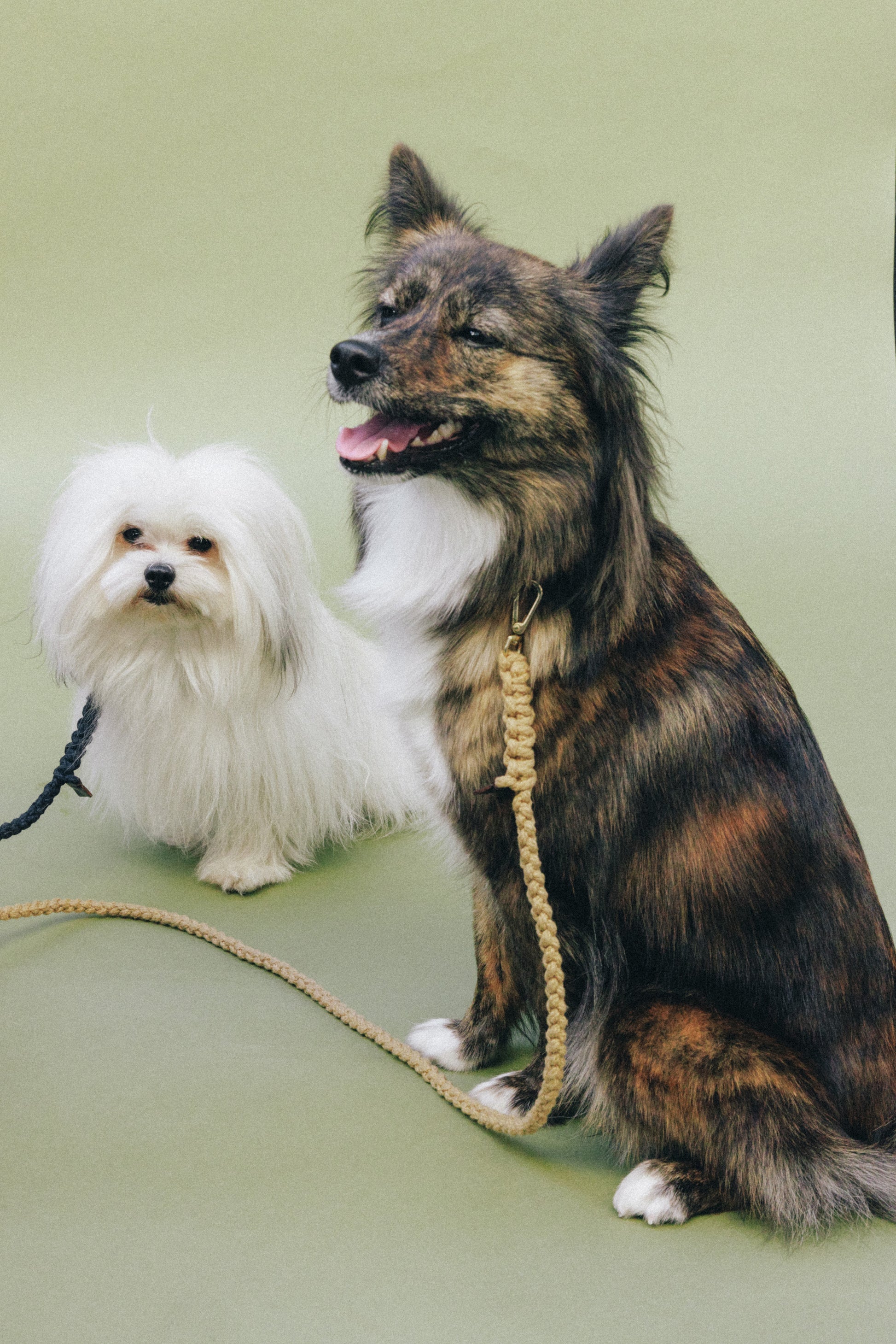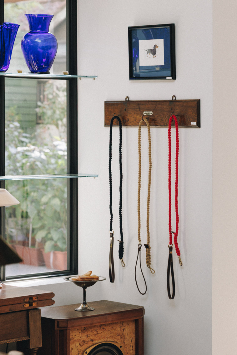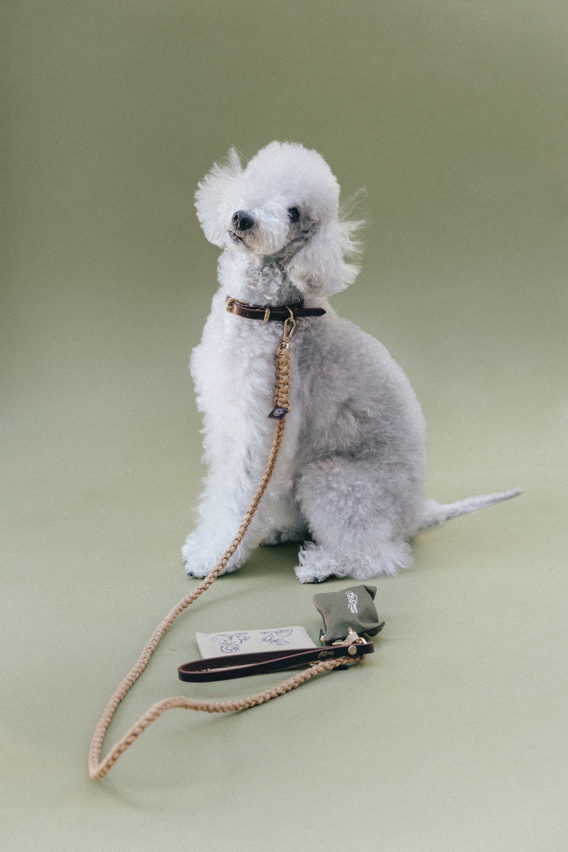 로프에 약간의 신축성이 있어 반려견과 함께 움직일 때 충격이 부드럽게 완화되고, 손잡이 부분의 가죽은 사용할수록 자연스럽게 에이징되어 손에 익습니다. 세 줄을 꼬아 만든 튼튼한 구조로 내구성이 우수하며, 목줄과 연결되는 고리는 360도 회전되어 반려견의 움직임에 따라 꼬임 없이 편안하게 사용할 수 있습니다. 손잡이 부분에는 ‘TOUT Y EST’의 금박 로고가 새겨져 있습니다.