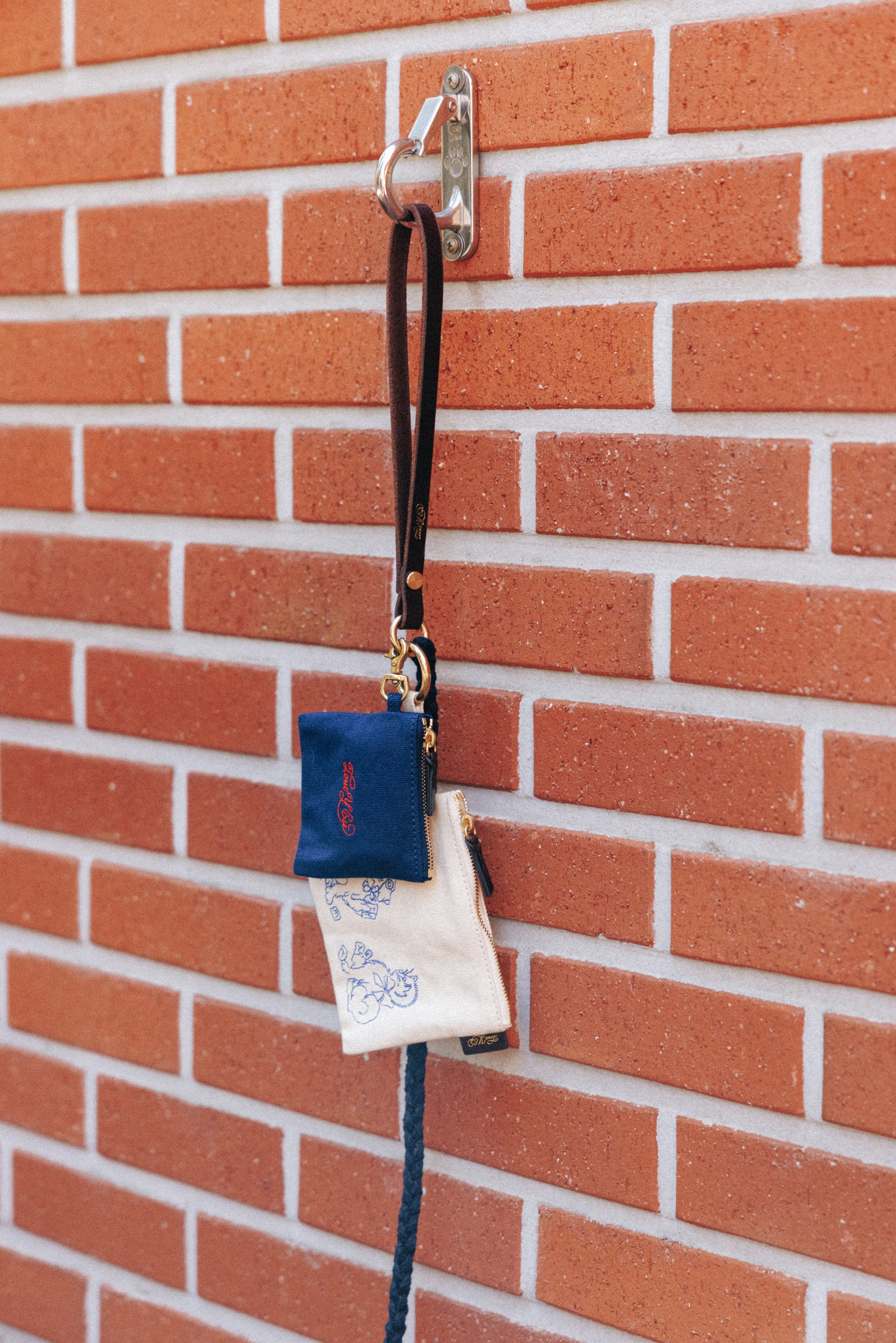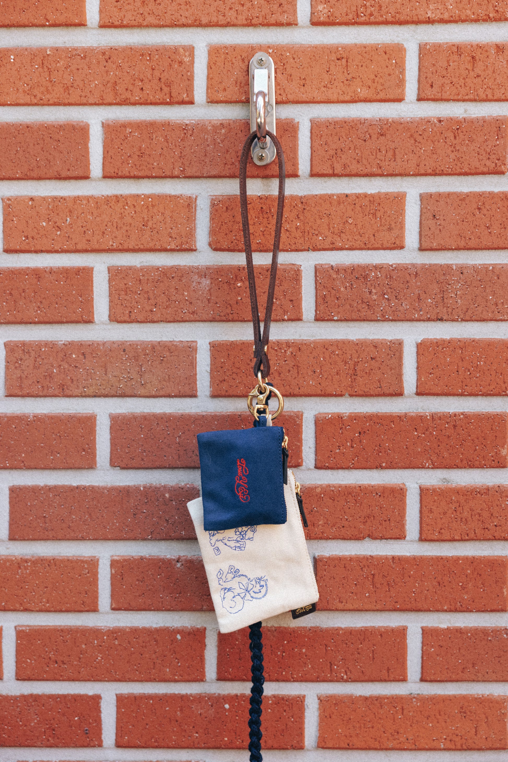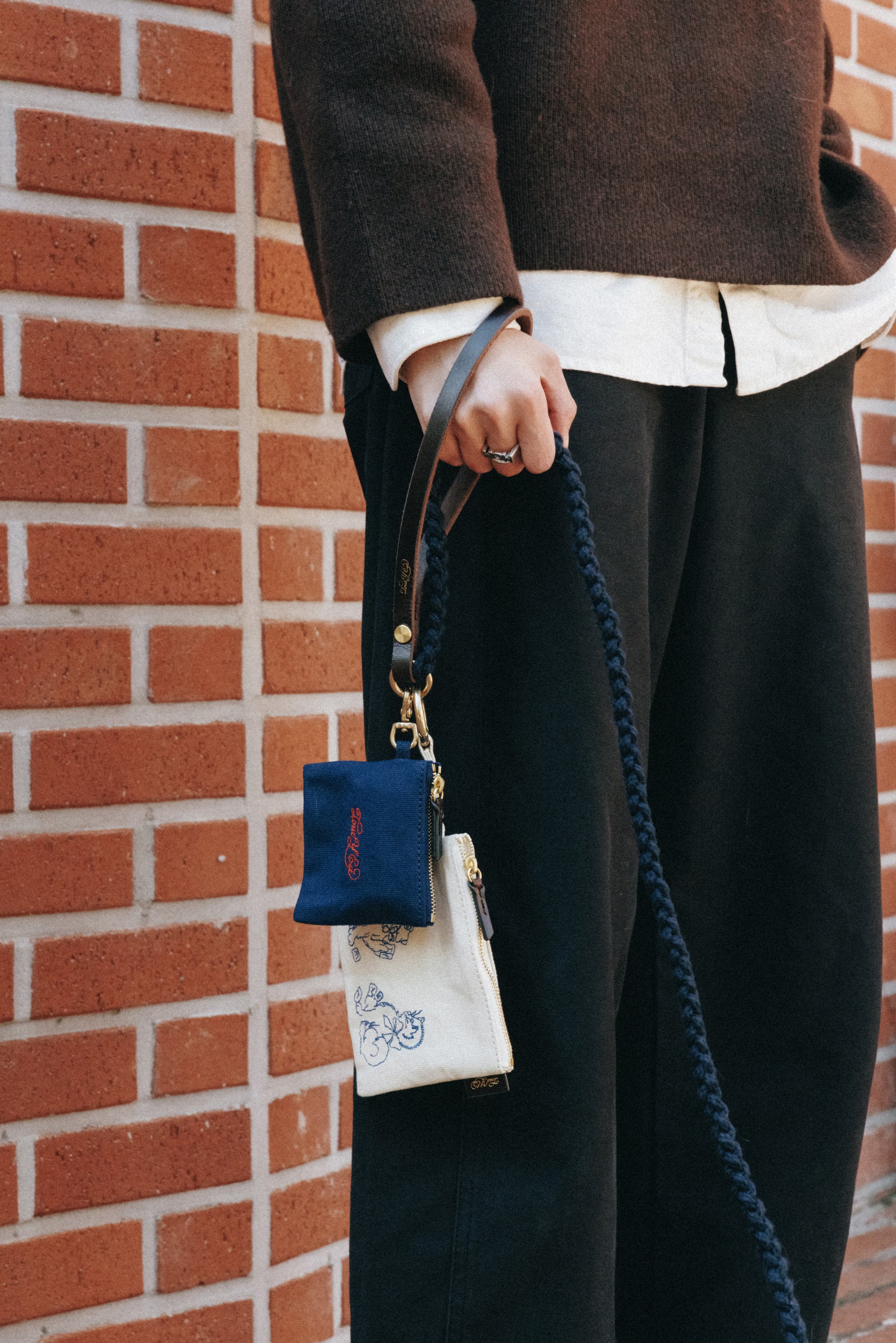 코튼 캔버스 원단과 브라스로 제작된 파우치입니다. 산책 시 견주의 작은 소지품을 담거나, 강아지 간식 · 여분의 배변봉투 · 물티슈 등을 보관하는 다양한 용도로 사용할 수 있습니다. 앞면에는 강아지와 고양이 자수가 놓여 있으며, 지퍼 손잡이는 소가죽으로 마감되었습니다. 측면의 가죽 탭에는 ‘TOUT Y EST’ 금박 로고가 각인되어 있습니다. O링 스트랩이 달려 있어 캐리백이나 리쉬에 연결할 수 있으며, 산책용뿐 아니라 가방의 액세서리로도 활용할 수 있습니다.