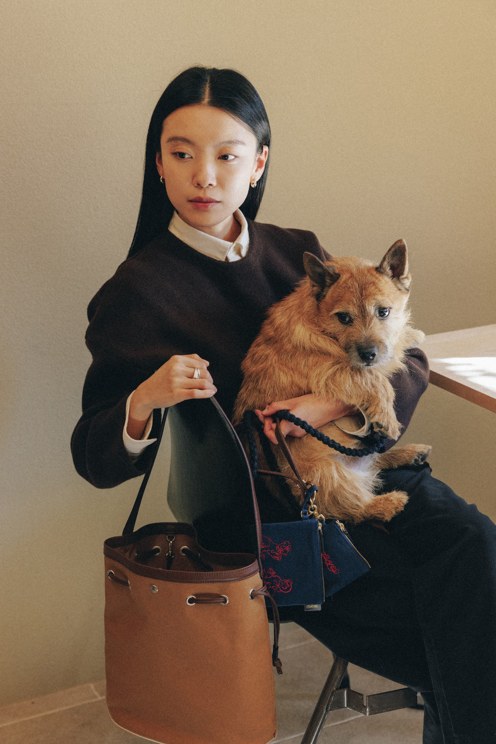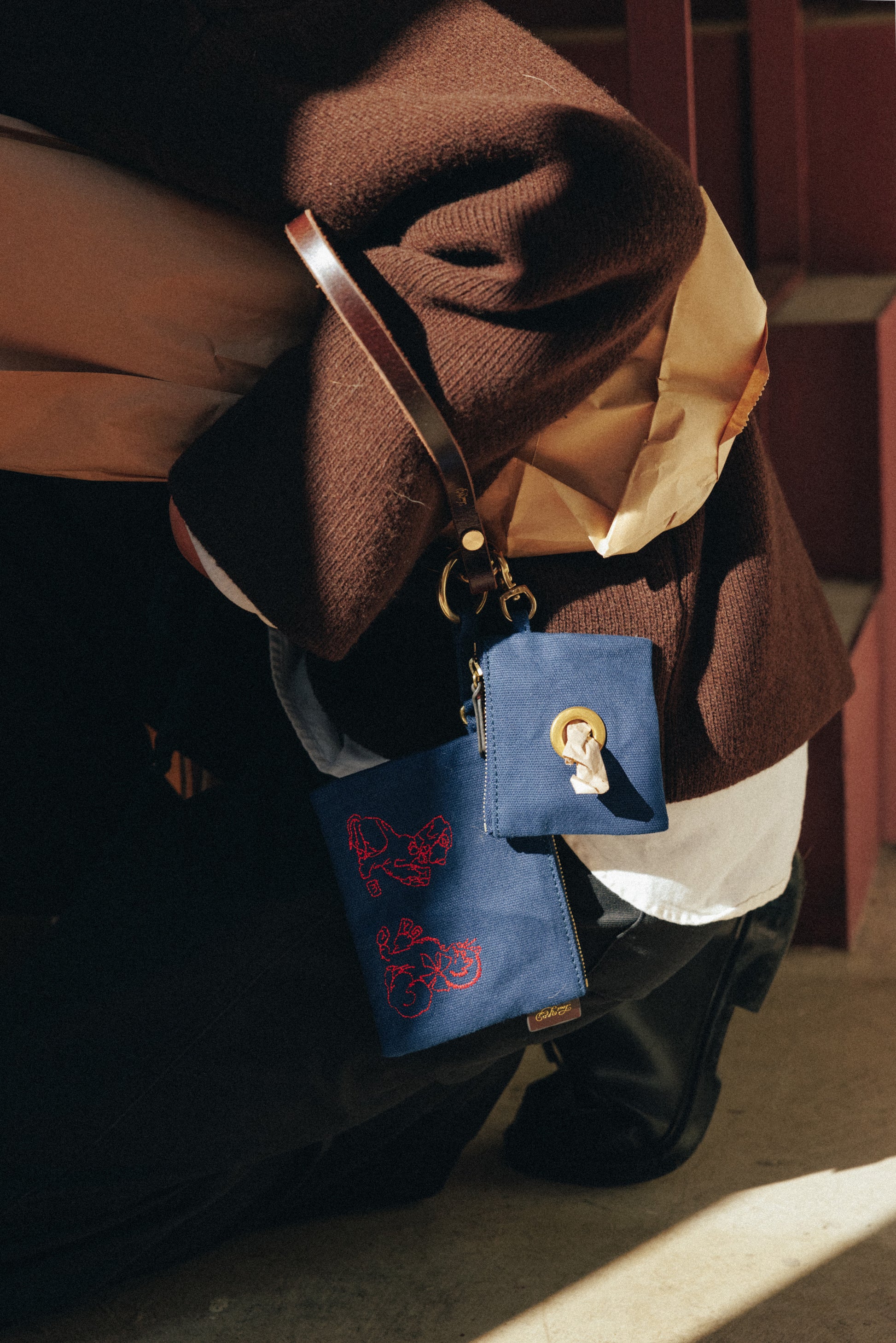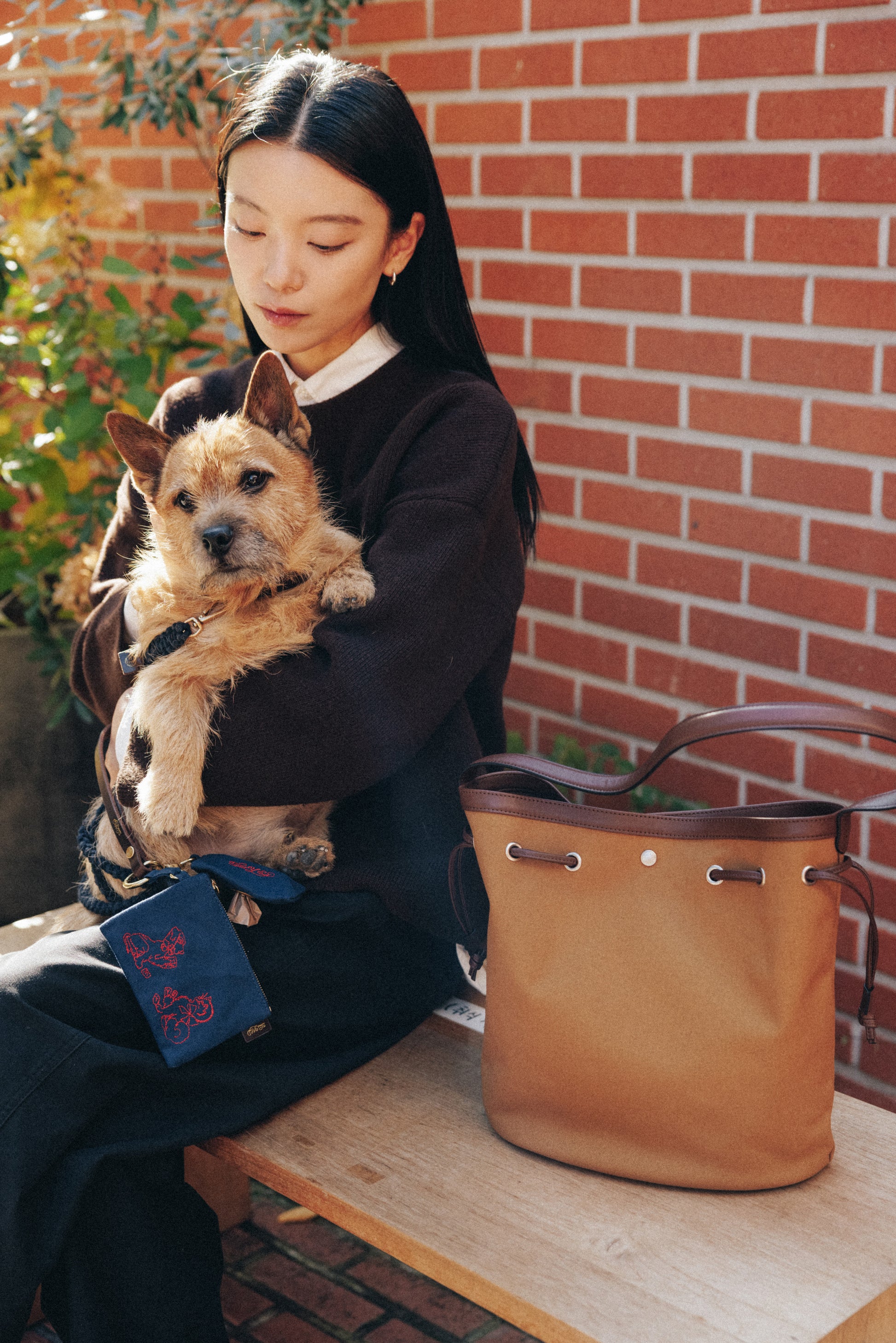 산책 시 견주의 작은 소지품을 담거나, 강아지 간식 · 여분의 배변봉투 · 물티슈 등을 보관하는 다양한 용도로 사용할 수 있습니다. 앞면에는 강아지와 고양이 자수가 놓여 있으며, 지퍼 손잡이는 소가죽으로 마감되었습니다. 측면의 가죽 탭에는 ‘TOUT Y EST’ 금박 로고가 각인되어 있습니다. O링 스트랩이 달려 있어 캐리백이나 리쉬에 연결할 수 있으며, 산책용뿐 아니라 가방의 액세서리로도 활용할 수 있습니다.