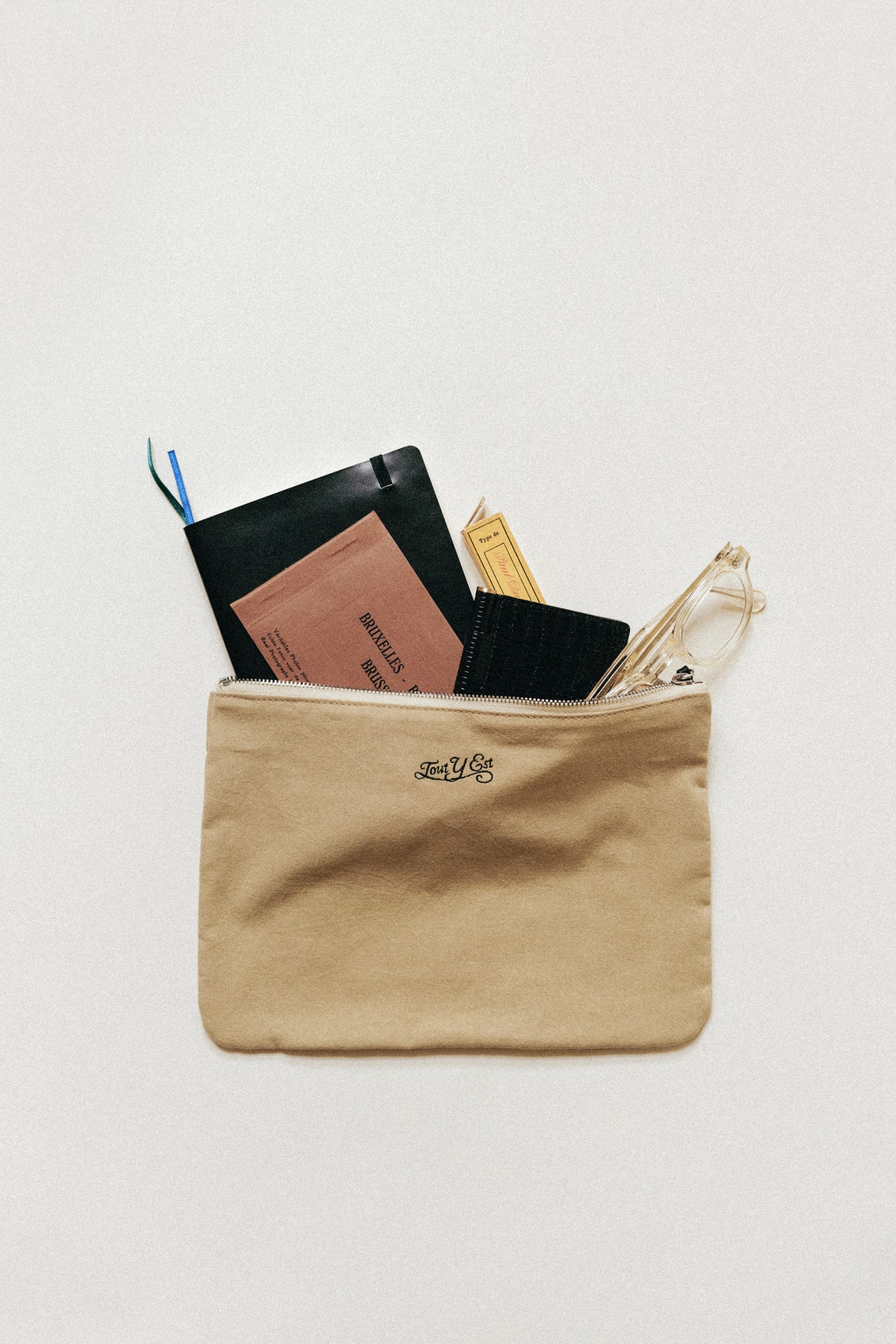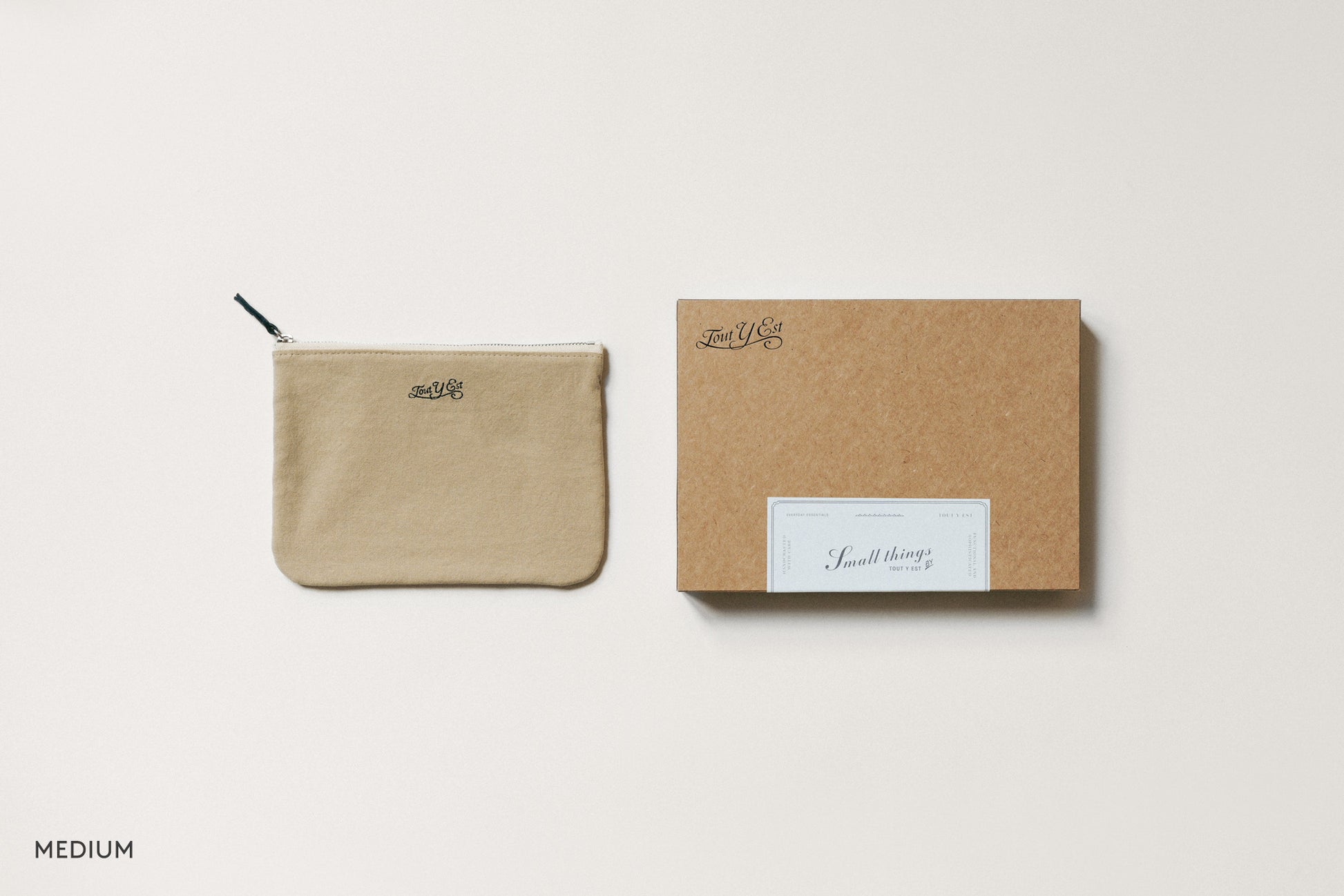 일상에서 필수품을 간편하게 정리하고 휴대하기 좋은 직사각 형태의 파우치입니다. 부드러운 지퍼는 가죽 풀러가 달려 있어 사용이 편리하며, 내부에 포켓이 있어 흩어지기 쉬운 작은 소지품도 깔끔하게 수납할 수 있습니다. 전면에는 투티에 로고를 자수로 새겨 넣었고 겉감과 동일한 소재로 안감을 제작하여 완성도를 높였습니다.