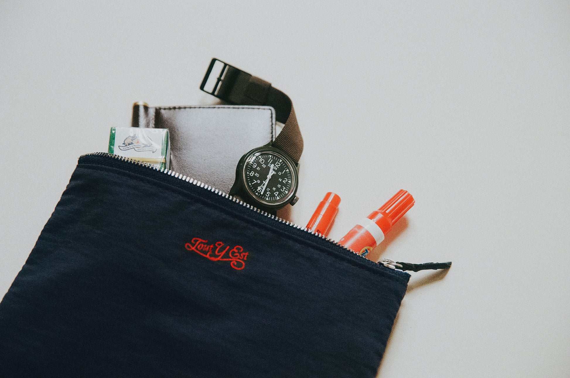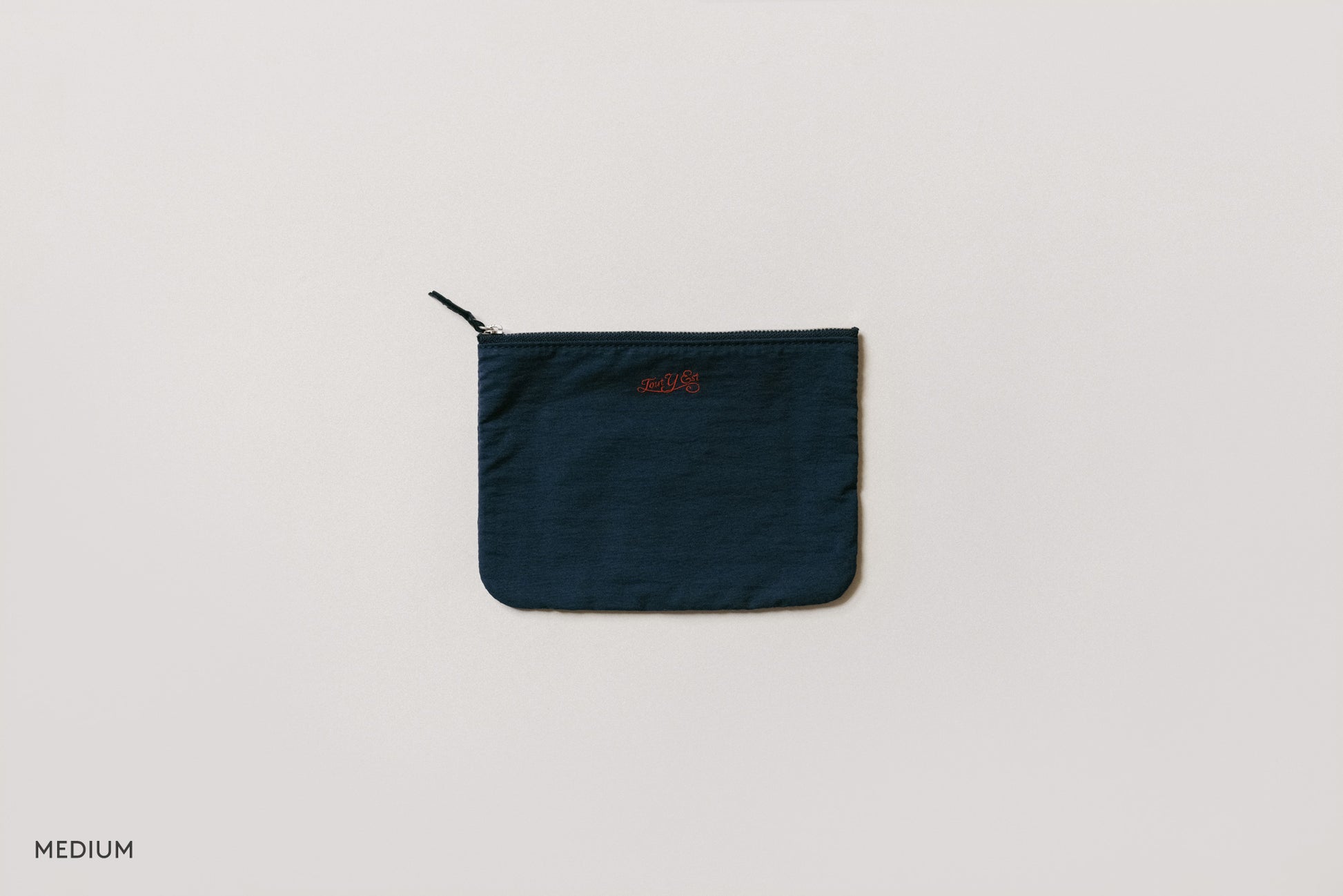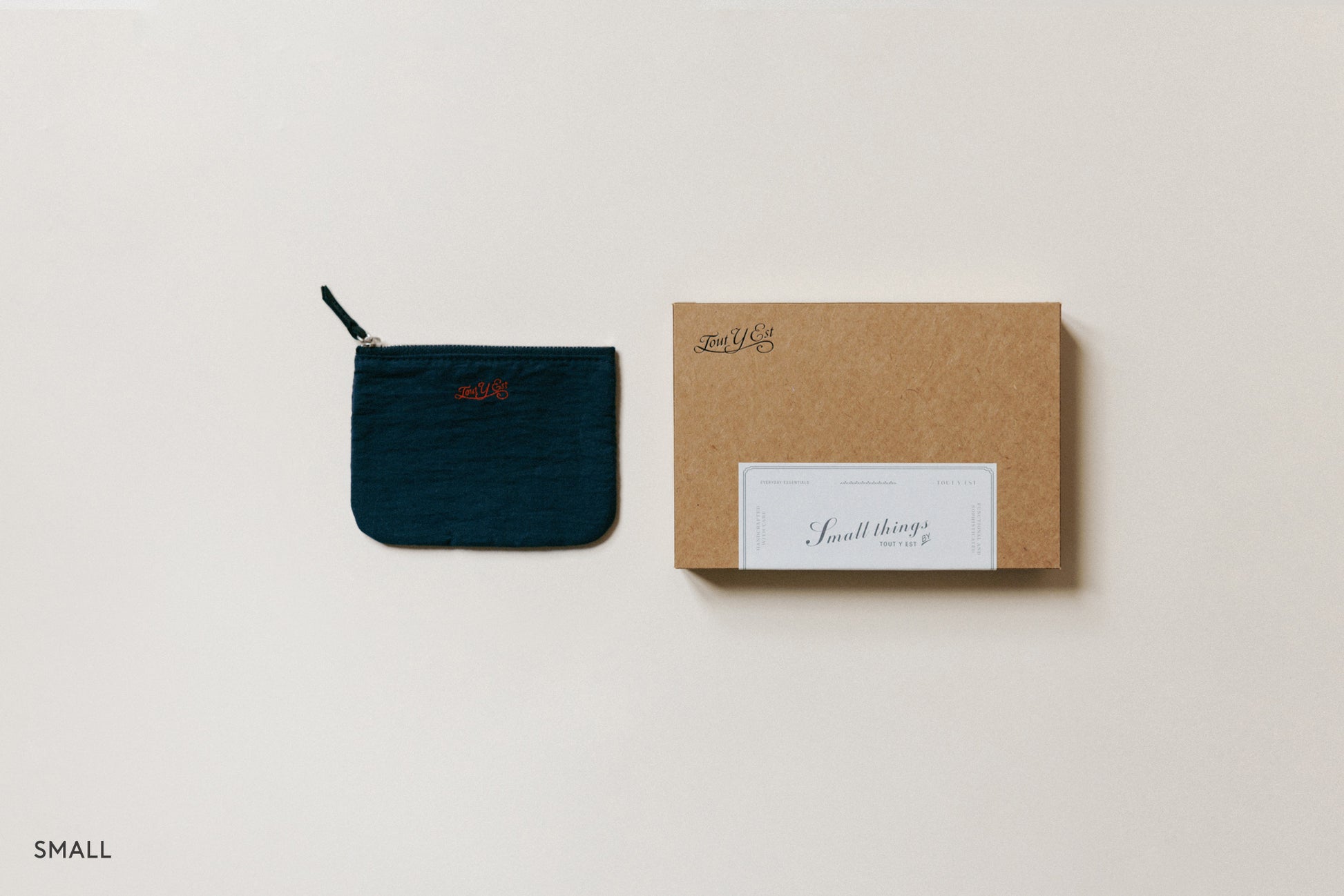일상에서 필수품을 간편하게 정리하고 휴대하기 좋은 직사각 형태의 파우치입니다. 부드러운 지퍼는 가죽 풀러가 달려 있어 사용이 편리하며, 내부에 포켓이 있어 흩어지기 쉬운 작은 소지품도 깔끔하게 수납할 수 있습니다. 전면에는 투티에 로고를 자수로 새겨 넣었고 겉감과 동일한 소재로 안감을 제작하여 완성도를 높였습니다.