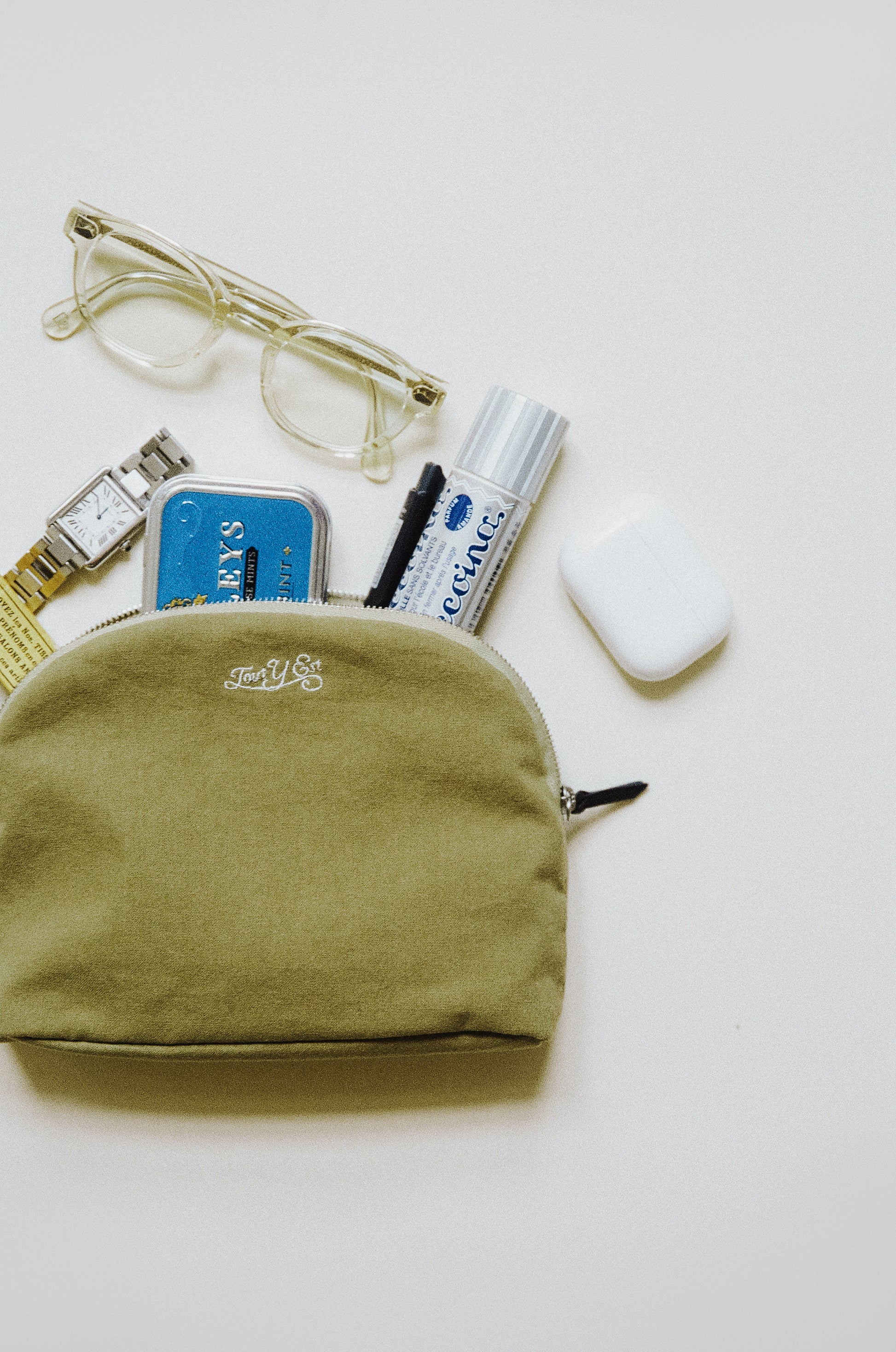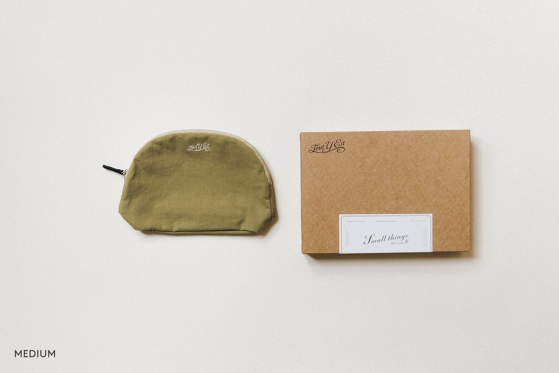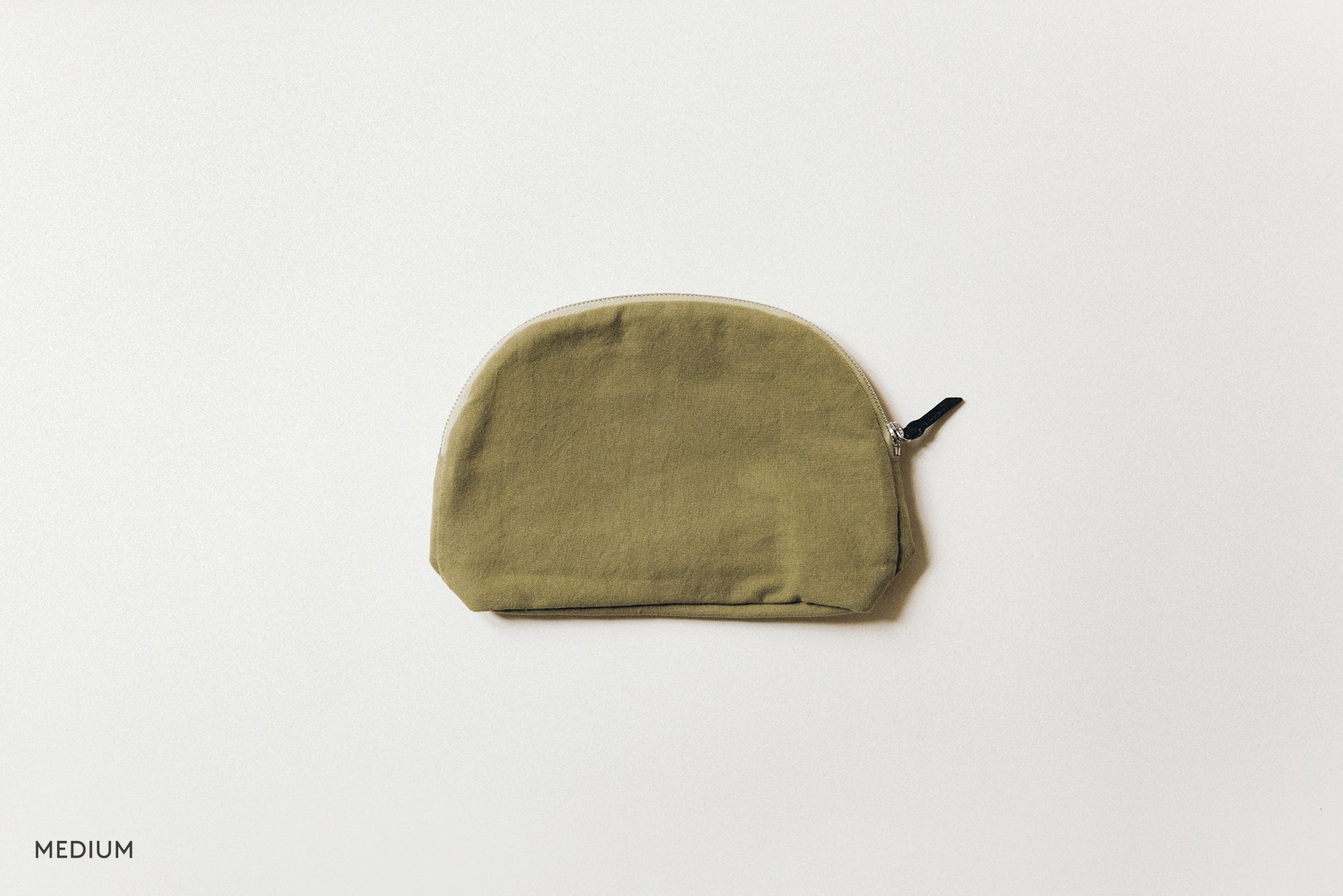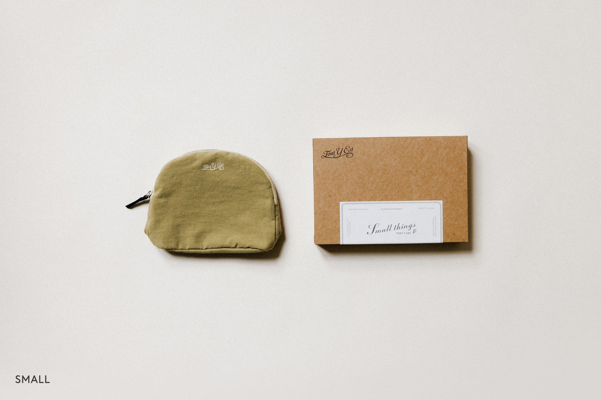 일상에서 필수품을 간편하게 정리하고 휴대하기 좋은 반달 형태의 파우치입니다. 부드러운 지퍼는 가죽 풀러가 달려 있어 사용이 편리하며, 내부에 포켓이 있어 흩어지기 쉬운 작은 소지품도 깔끔하게 수납할 수 있습니다. 플랫하지 않고 적당한 너비의 밑면을 가진 형태로 수납력이 좋습니다. 전면에는 투티에 로고를 자수로 새겨 넣었고 겉감과 동일한 소재로 안감을 제작하여 완성도를 높였습니다.