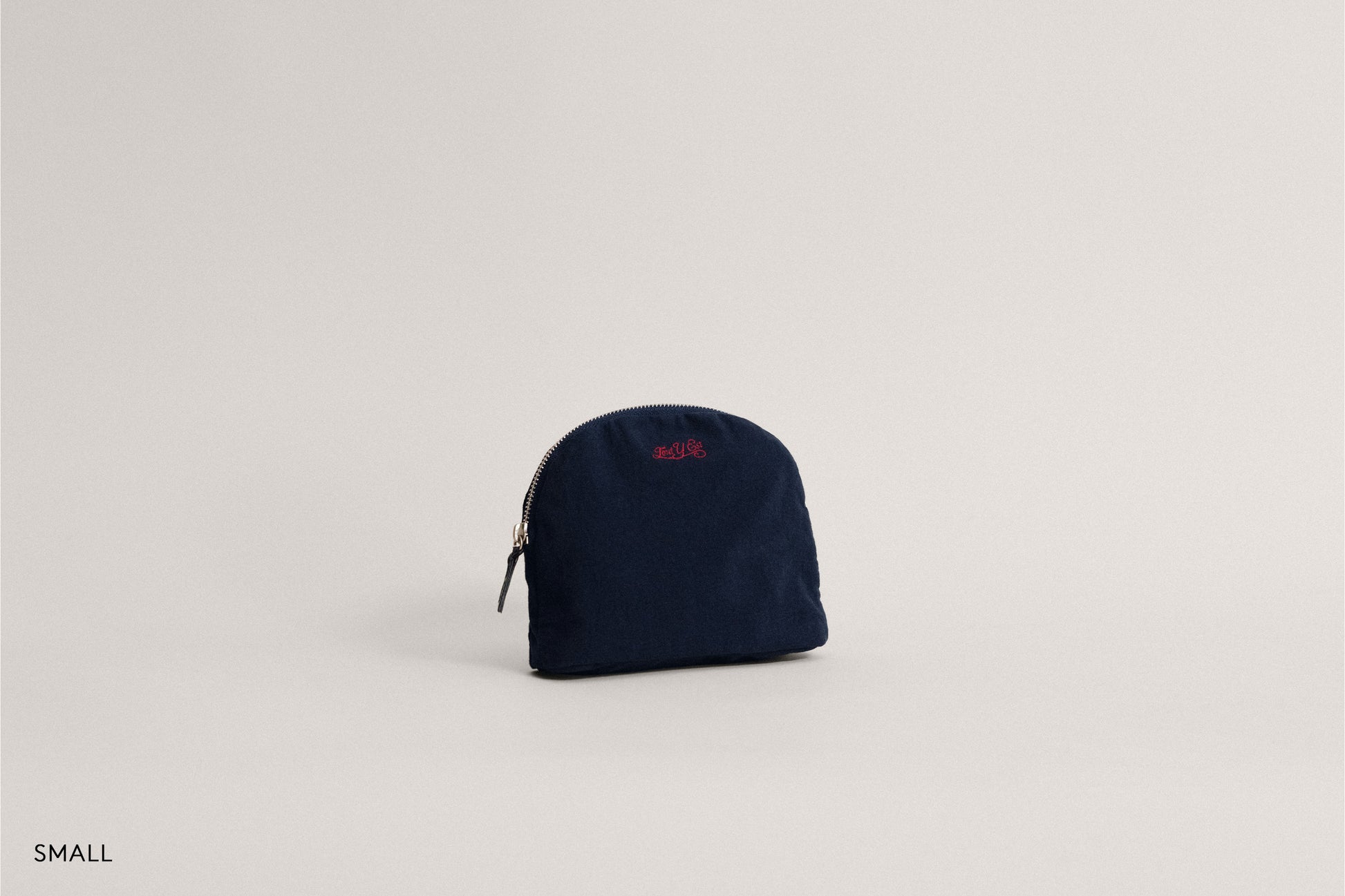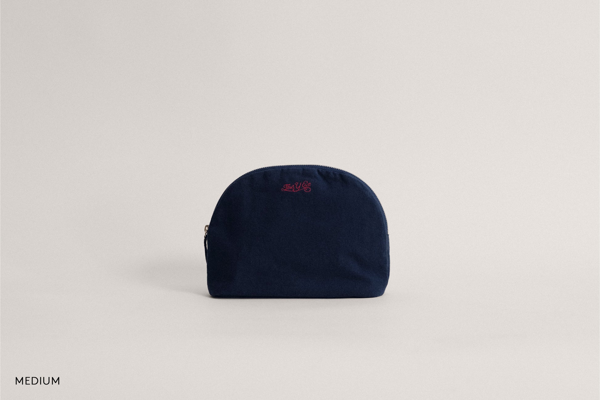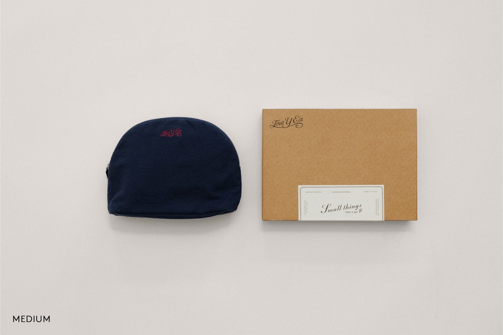 일상에서 필수품을 간편하게 정리하고 휴대하기 좋은 반달 형태의 파우치입니다. 부드러운 지퍼는 가죽 풀러가 달려 있어 사용이 편리하며, 내부에 포켓이 있어 흩어지기 쉬운 작은 소지품도 깔끔하게 수납할 수 있습니다. 플랫하지 않고 적당한 너비의 밑면을 가진 형태로 수납력이 좋습니다. 전면에는 투티에 로고를 자수로 새겨 넣었고 겉감과 동일한 소재로 안감을 제작하여 완성도를 높였습니다.