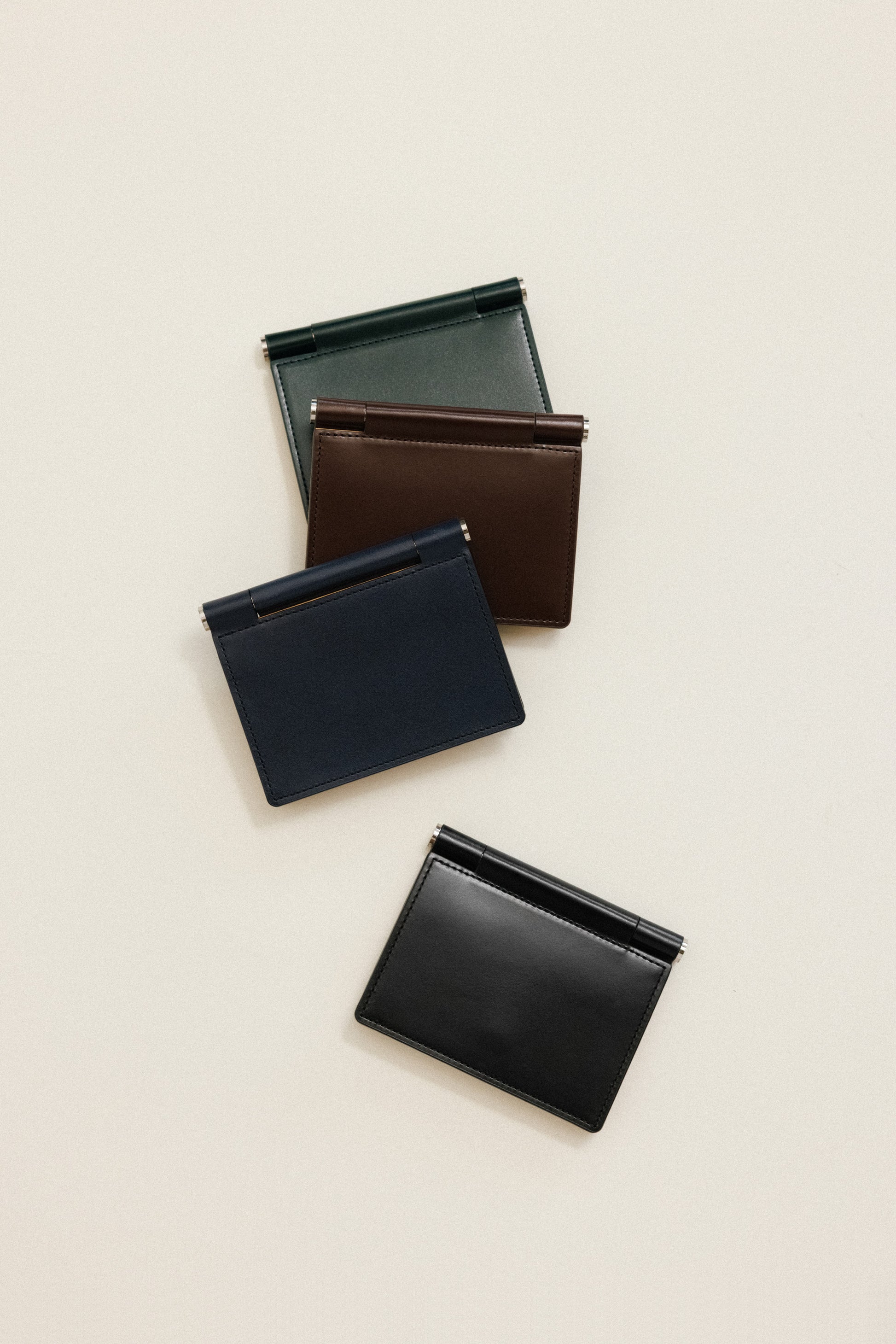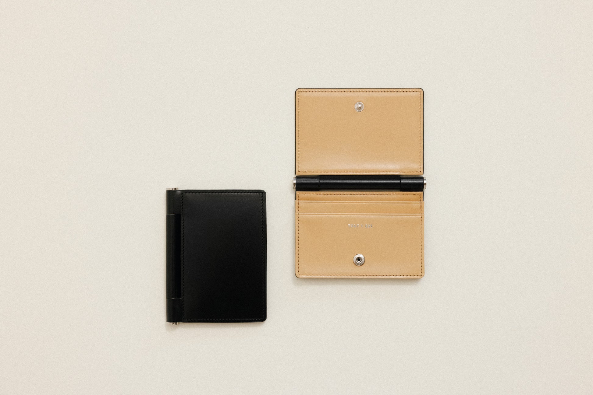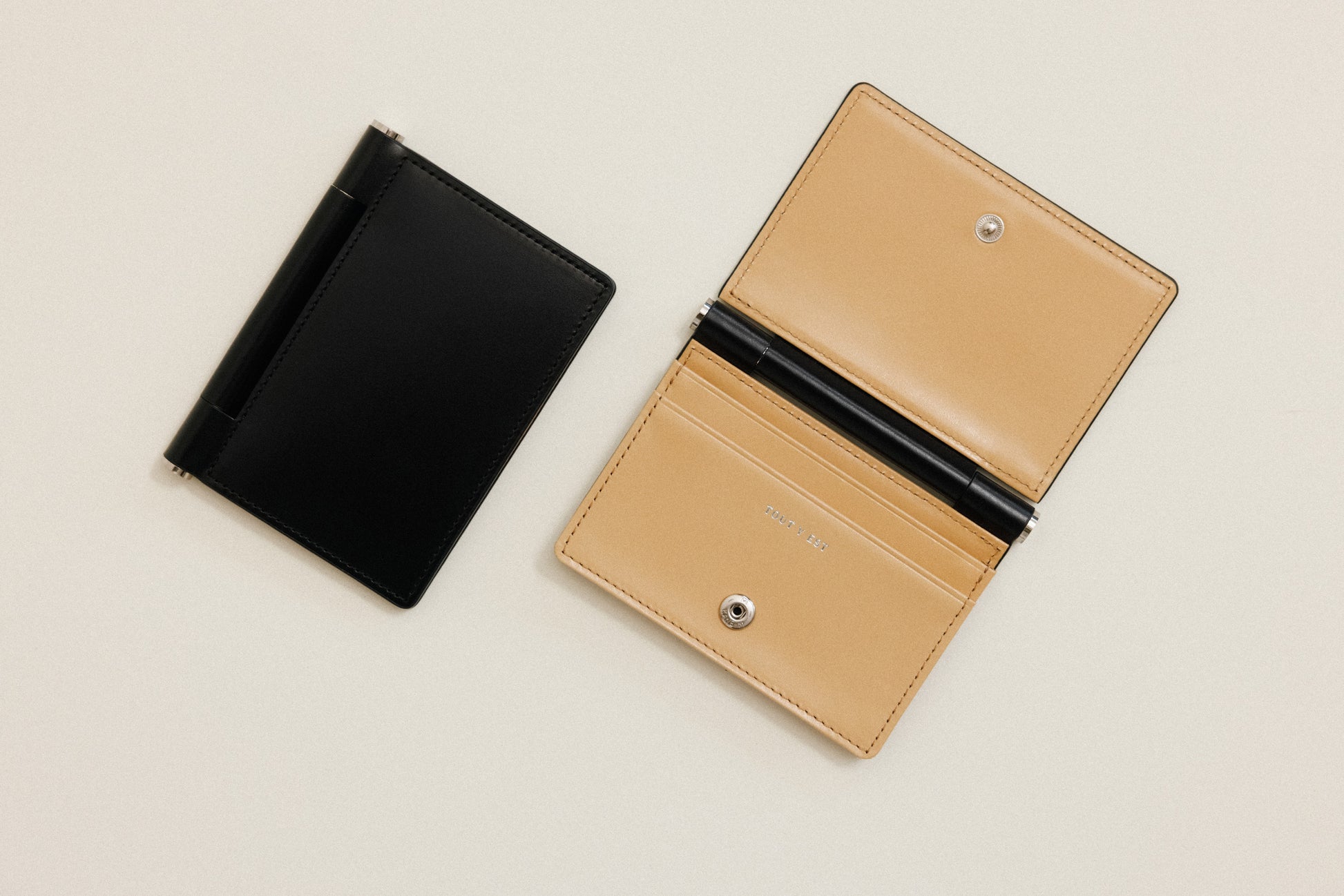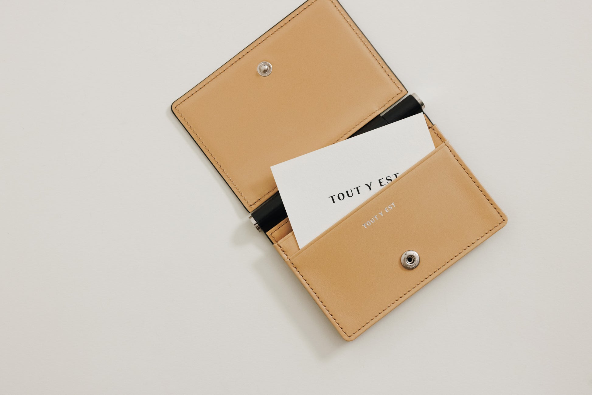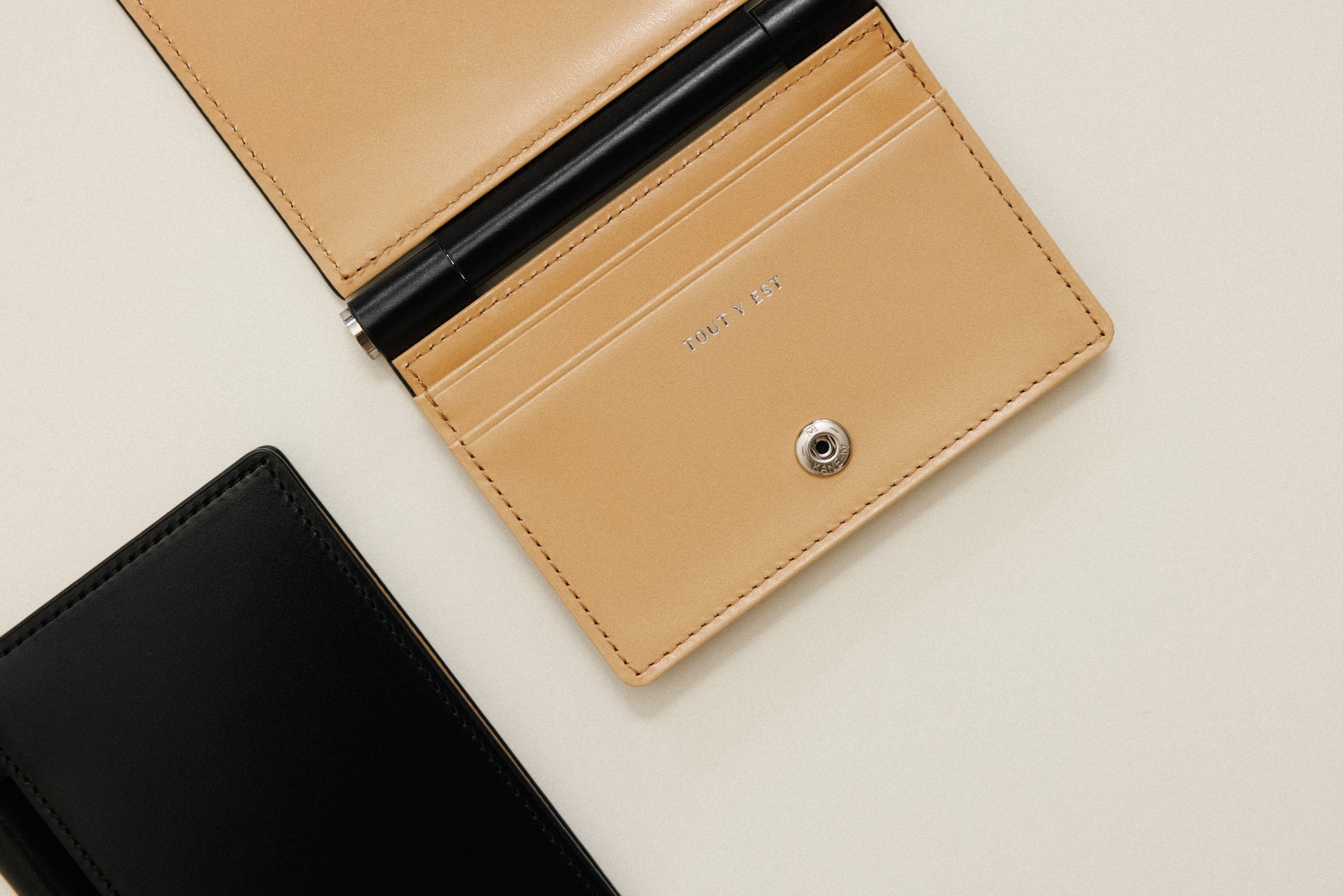 투티에의 상징적인 브라스 바 장식을 사용한 포멜 명함지갑은 바를 중심으로 플랩이 완전히 젖혀질 수 있는 구조로 소지품을 편안하게 넣고 꺼낼 수 있습니다. 넓은 칸과 카드 슬롯으로 분리되어 있어 자주 사용하는 카드를 별도로 수납하기에 용이합니다. 스냅을 사용하여 여닫을 수 있으며 10장 내외의 카드 수납이 가능합니다.