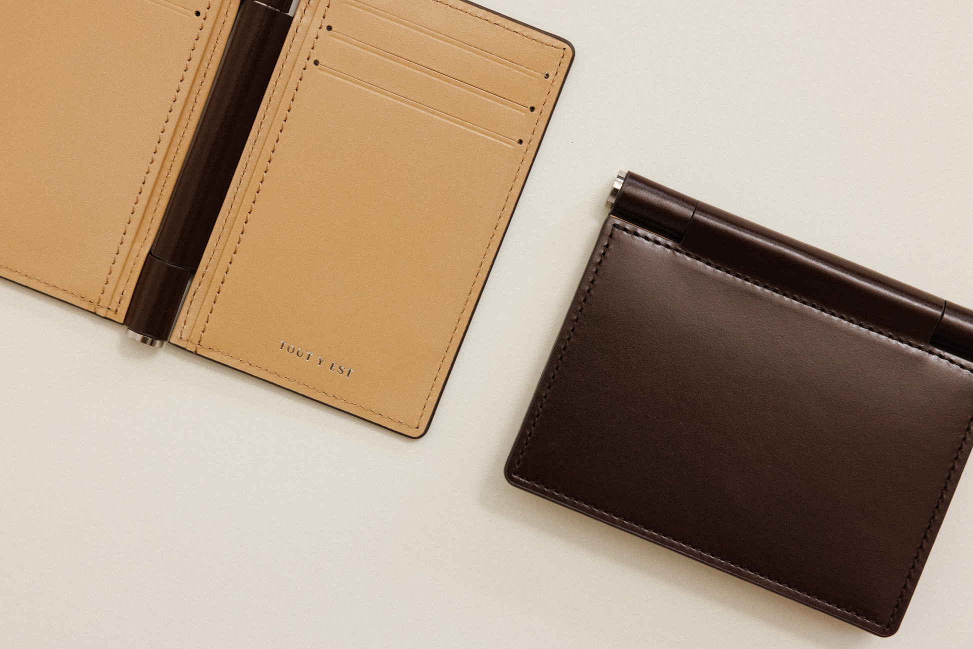투티에의 상징적인 브라스 바 장식을 사용한 포멜 카드지갑은 바를 중심으로 양쪽이 모두 회전하는 구조로 소지품을 쉽게 넣고 뺄 수 있으며 태그하여 사용하기에도 용이합니다. 양쪽 각각 4장의 카드 수납이 가능하며 넓은 추가 슬롯을 추가하여 지폐나 영수증 등을 넣어 수납하실 수 있습니다. 가볍고 견고한 가죽과 한 손에 들어오는 컴팩트한 사이즈에 투티에만의 시그니쳐 디자인을 담은 포멜 카드 지갑을 만나보세요.