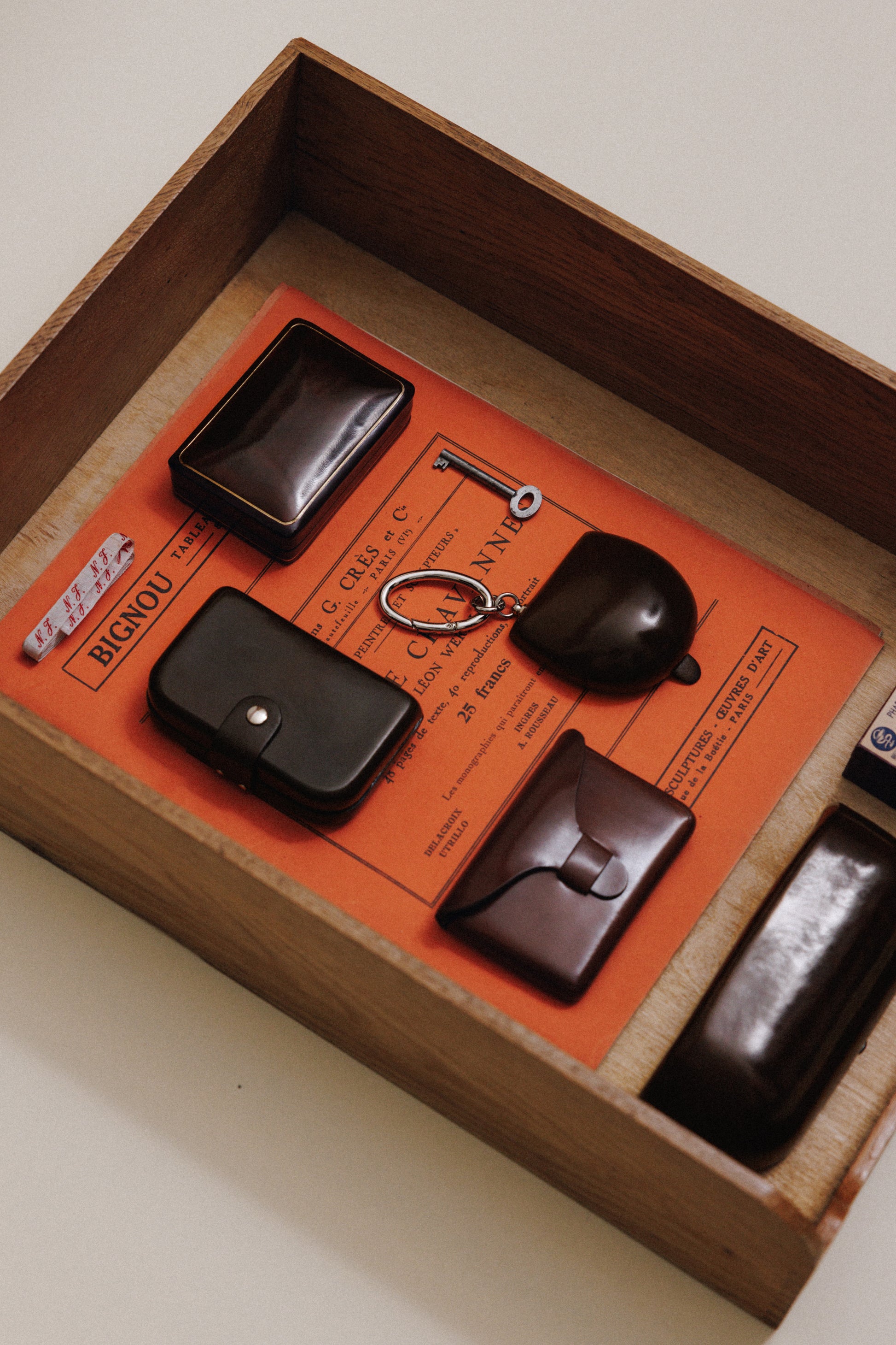 플로렌스 지갑은 몰드 공법의 매력이 잘 드러나는 박스 형태를 지니고 있습니다. 견고하게 여닫을 수 있도록 스냅 단추를 부착한 손잡이에는 아일렛 장식으로 포인트를 더했습니다. 두 개의 카드 포켓과 가죽 클립이 있어 카드, 현금, 영수증 등을 실용적으로 수납할 수 있습니다. 간결한 외형과 대조되는 구조적인 형태는 일상에 멋과 실용성을 더해줍니다.
