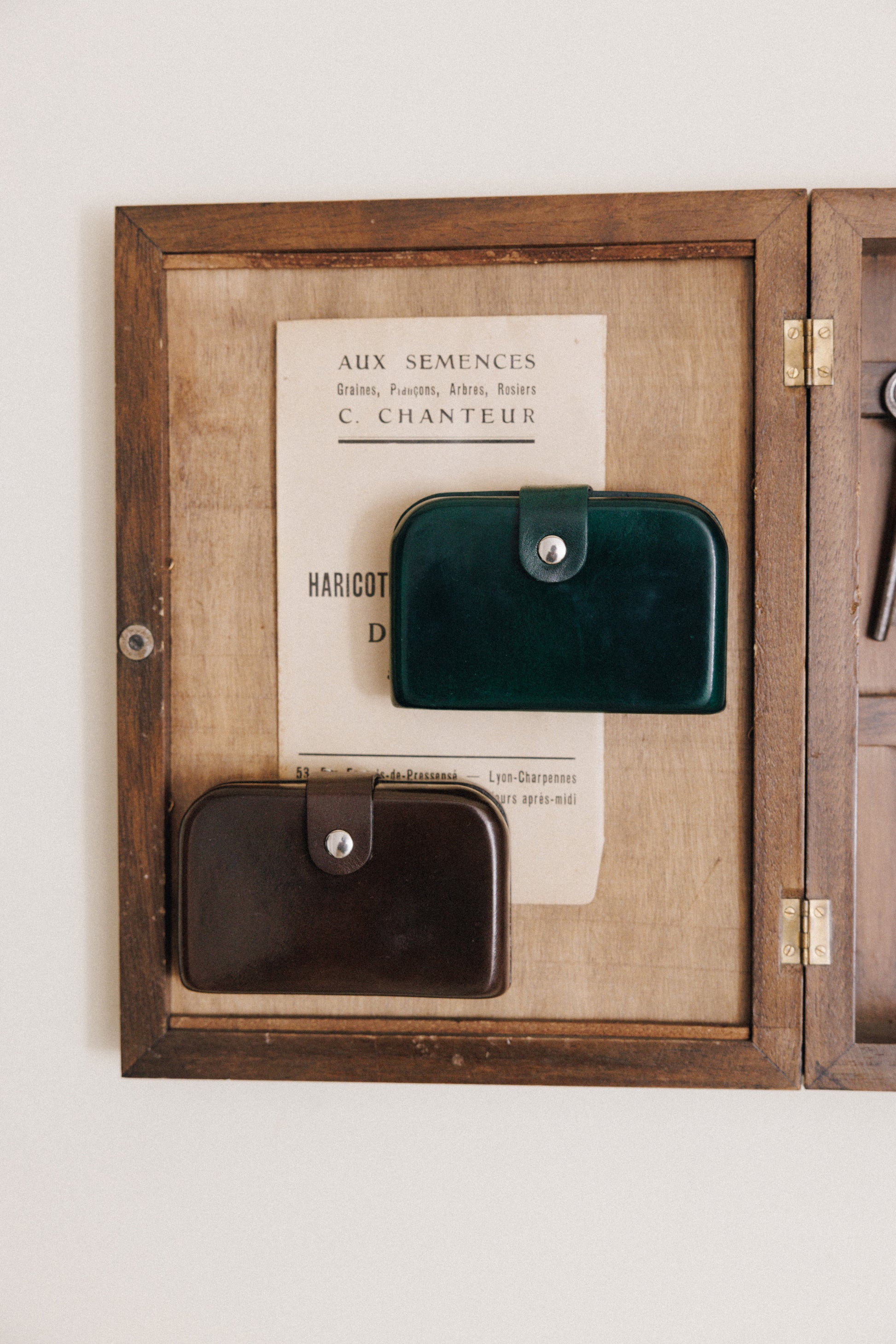 플로렌스 지갑은 몰드 공법의 매력이 잘 드러나는 박스 형태를 지니고 있습니다. 견고하게 여닫을 수 있도록 스냅 단추를 부착한 손잡이에는 아일렛 장식으로 포인트를 더했습니다. 두 개의 카드 포켓과 가죽 클립이 있어 카드, 현금, 영수증 등을 실용적으로 수납할 수 있습니다. 간결한 외형과 대조되는 구조적인 형태는 일상에 멋과 실용성을 더해줍니다.