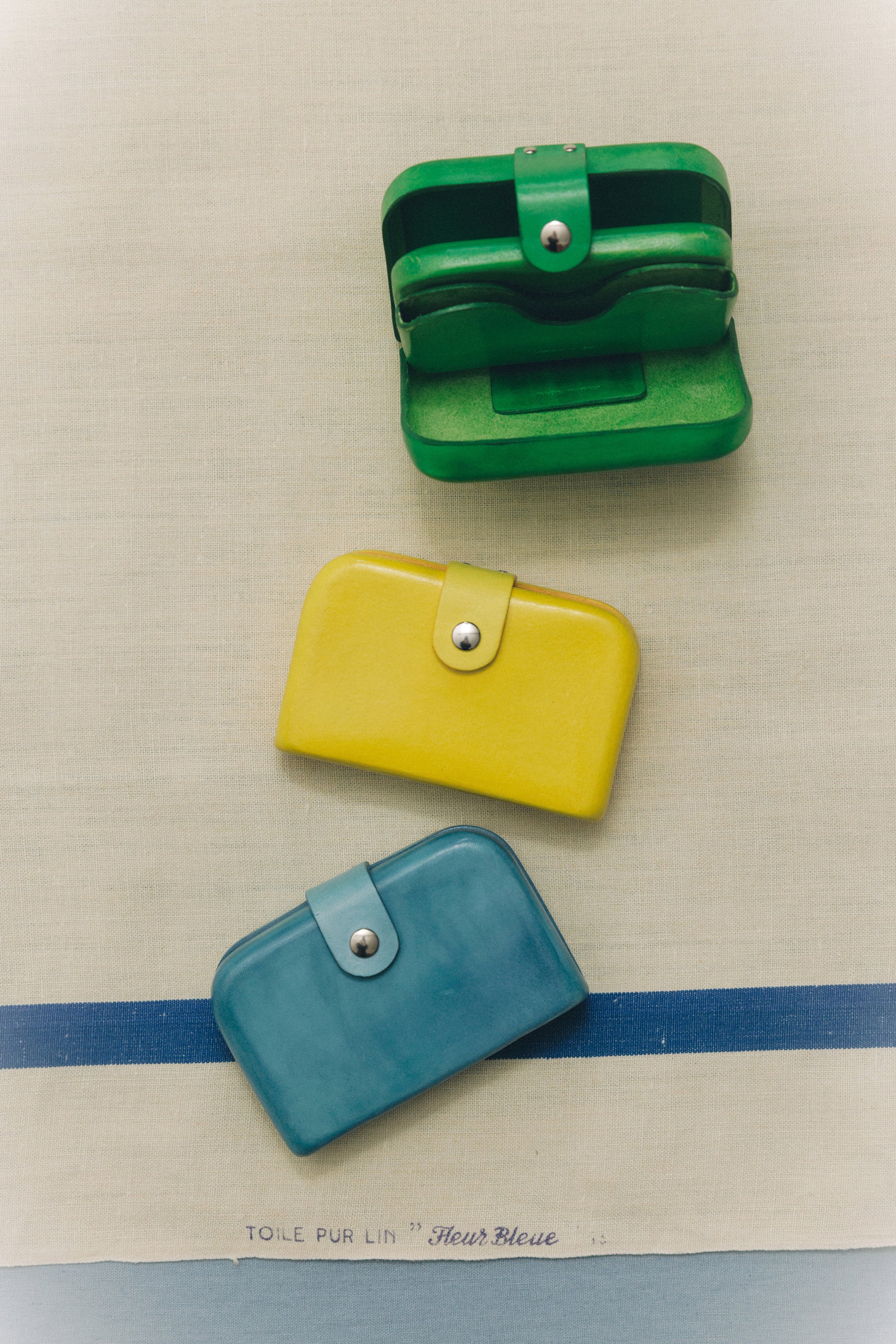 플로렌스 지갑은 몰드 공법의 매력이 잘 드러나는 박스 형태를 지니고 있습니다. 견고하게 여닫을 수 있도록 스냅 단추를 부착한 손잡이에는 아일렛 장식으로 포인트를 더했습니다. 두 개의 카드 포켓과 가죽 클립이 있어 카드, 현금, 영수증 등을 실용적으로 수납할 수 있습니다. 간결한 외형과 대조되는 구조적인 형태는 일상에 멋과 실용성을 더해줍니다.