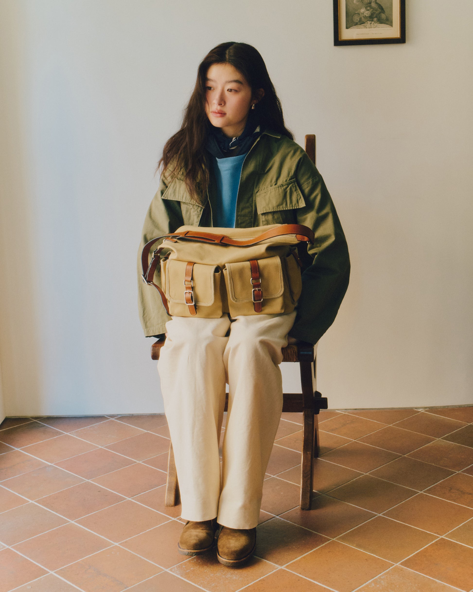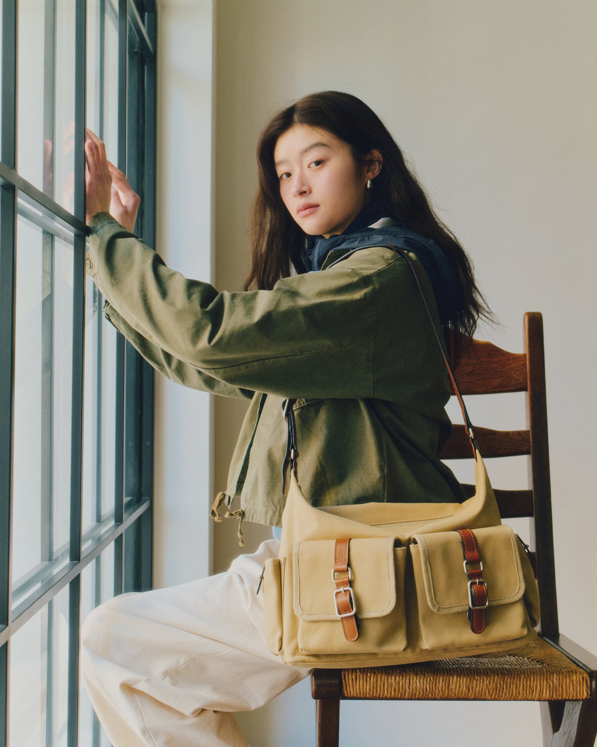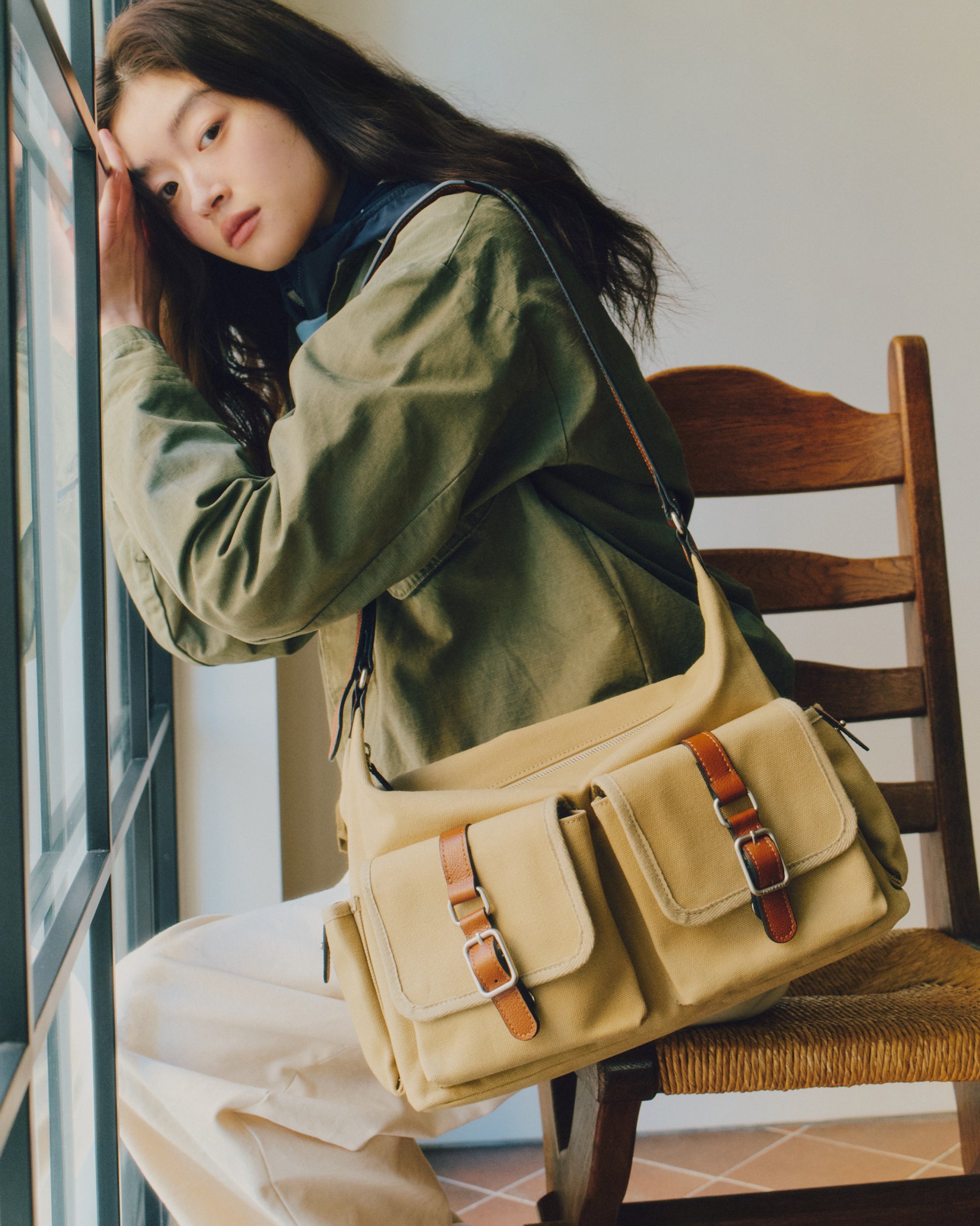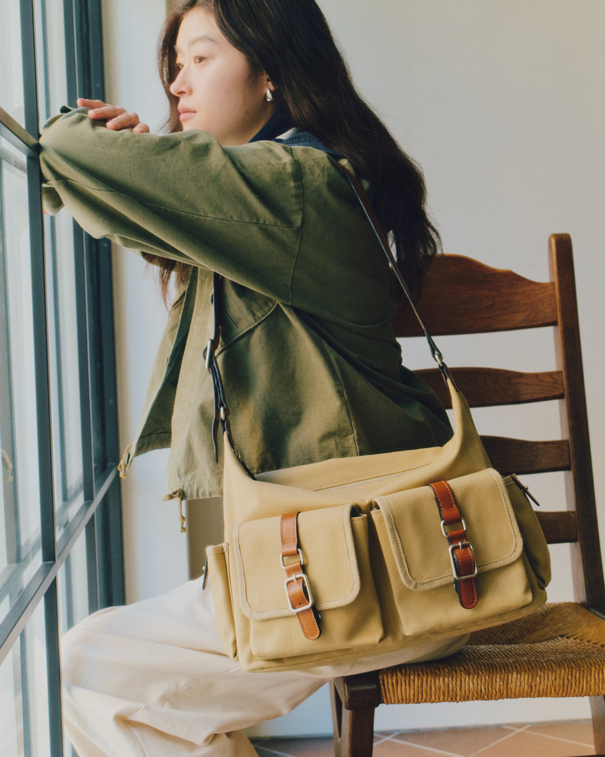 자연스럽게 떨어지는 곡선 형태로 기존 부트백보다 부드러운 인상을 주고, 상단은 지퍼 여밈으로 구성하여 일상에서 더 편안하게 사용할 수 있도록 했습니다. 전면에는 부트백에서 이어지는 가죽 버클 포켓을 적용해 시리즈의 특징을 담았고, 측면에는 작은 수납을 위한 포켓을 더했습니다. 소가죽으로 제작한 스트랩에는 어깨 보호대를 넣어 착용감을 높였으며, 길이 조절이 가능해 숄더와 크로스 두 가지 방식으로 착용할 수 있습니다.