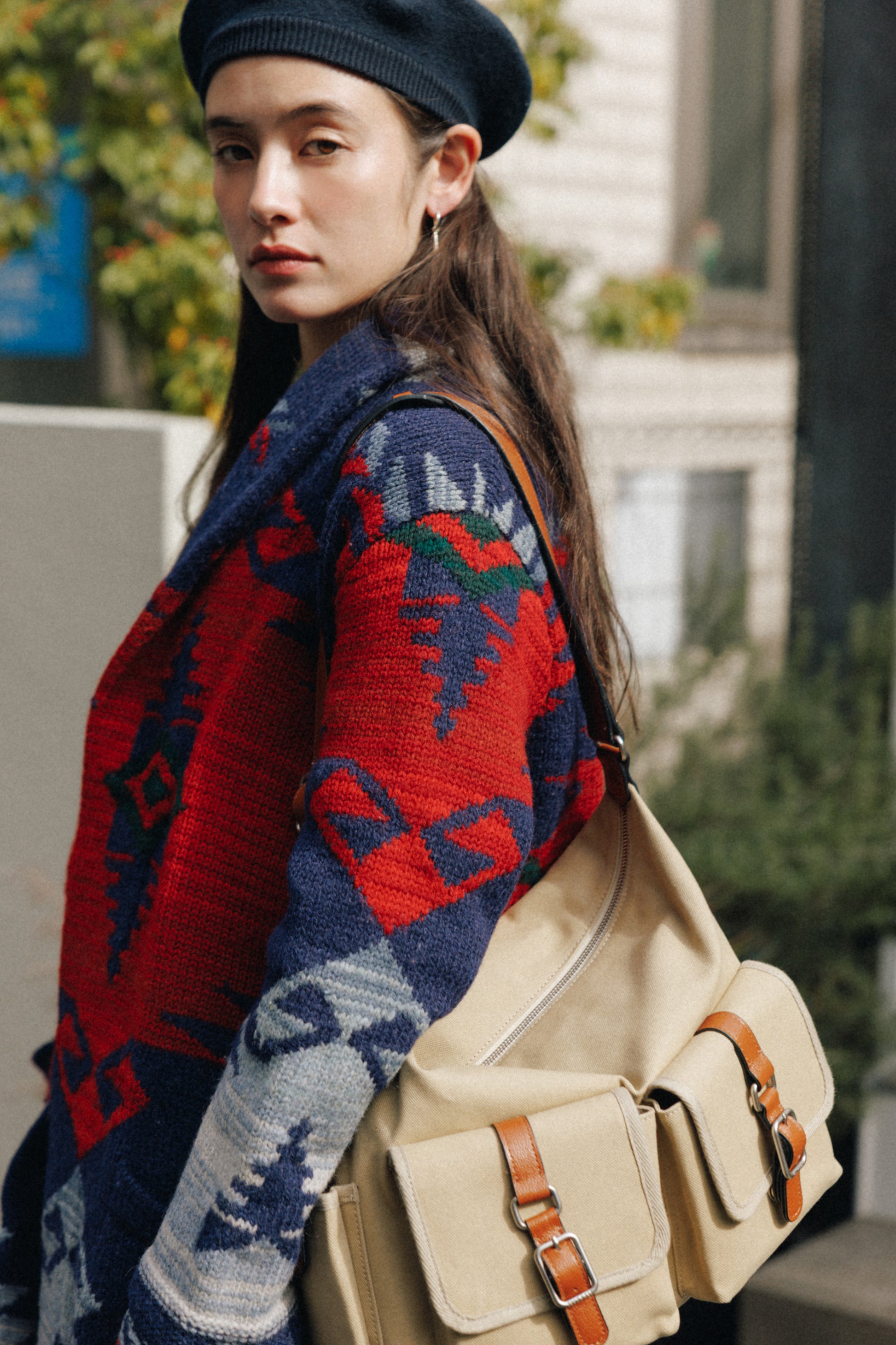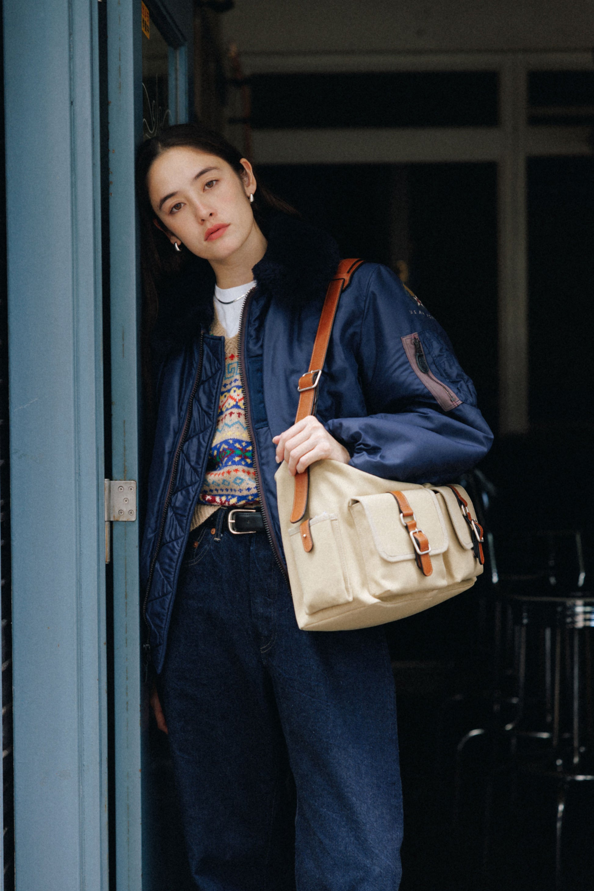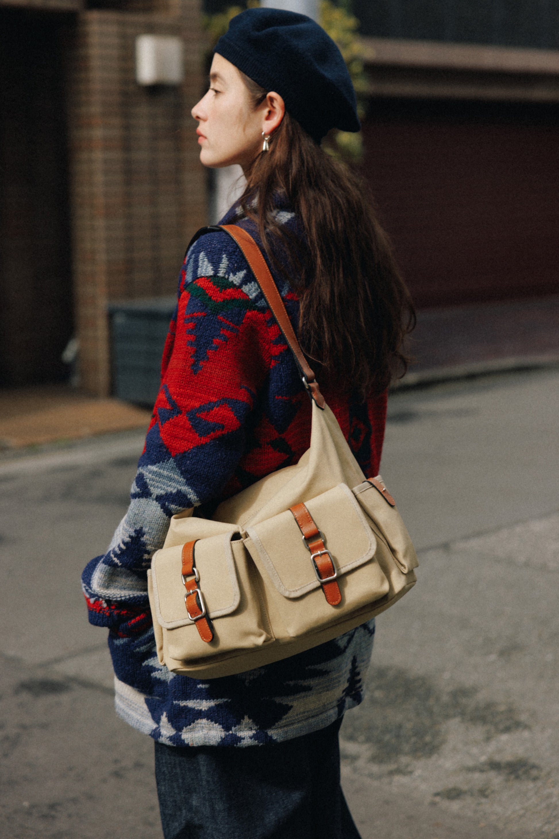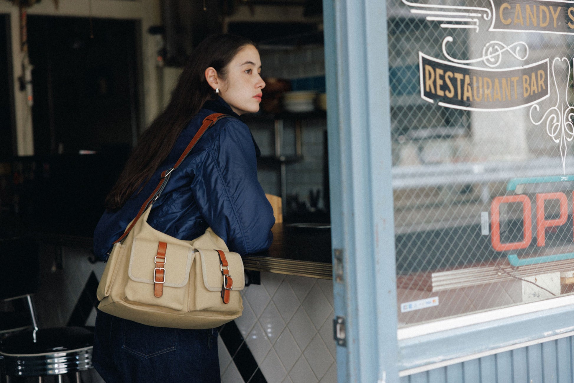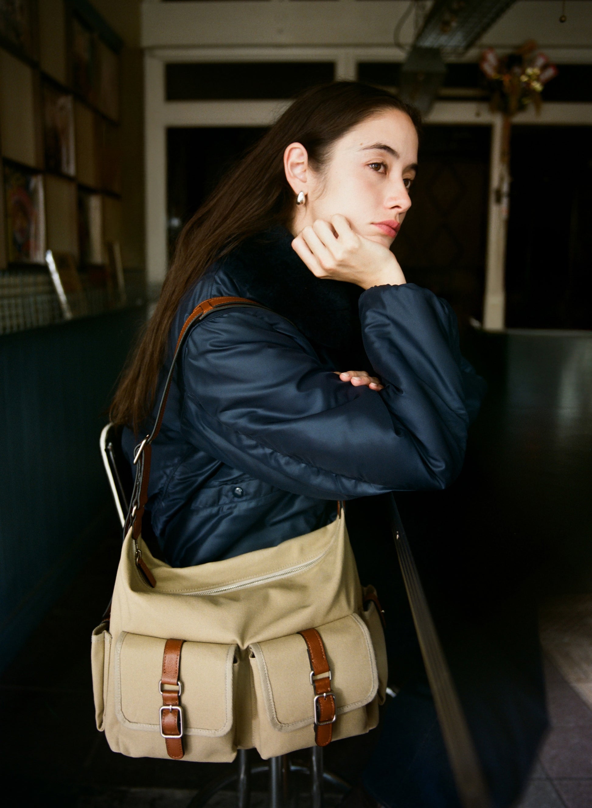 자연스럽게 떨어지는 곡선 형태로 기존 부트백보다 부드러운 인상을 주고, 상단은 지퍼 여밈으로 구성하여 일상에서 더 편안하게 사용할 수 있도록 했습니다. 전면에는 부트백에서 이어지는 가죽 버클 포켓을 적용해 시리즈의 특징을 담았고, 측면에는 작은 수납을 위한 포켓을 더했습니다. 소가죽으로 제작한 스트랩에는 어깨 보호대를 넣어 착용감을 높였으며, 길이 조절이 가능해 숄더와 크로스 두 가지 방식으로 착용할 수 있습니다.