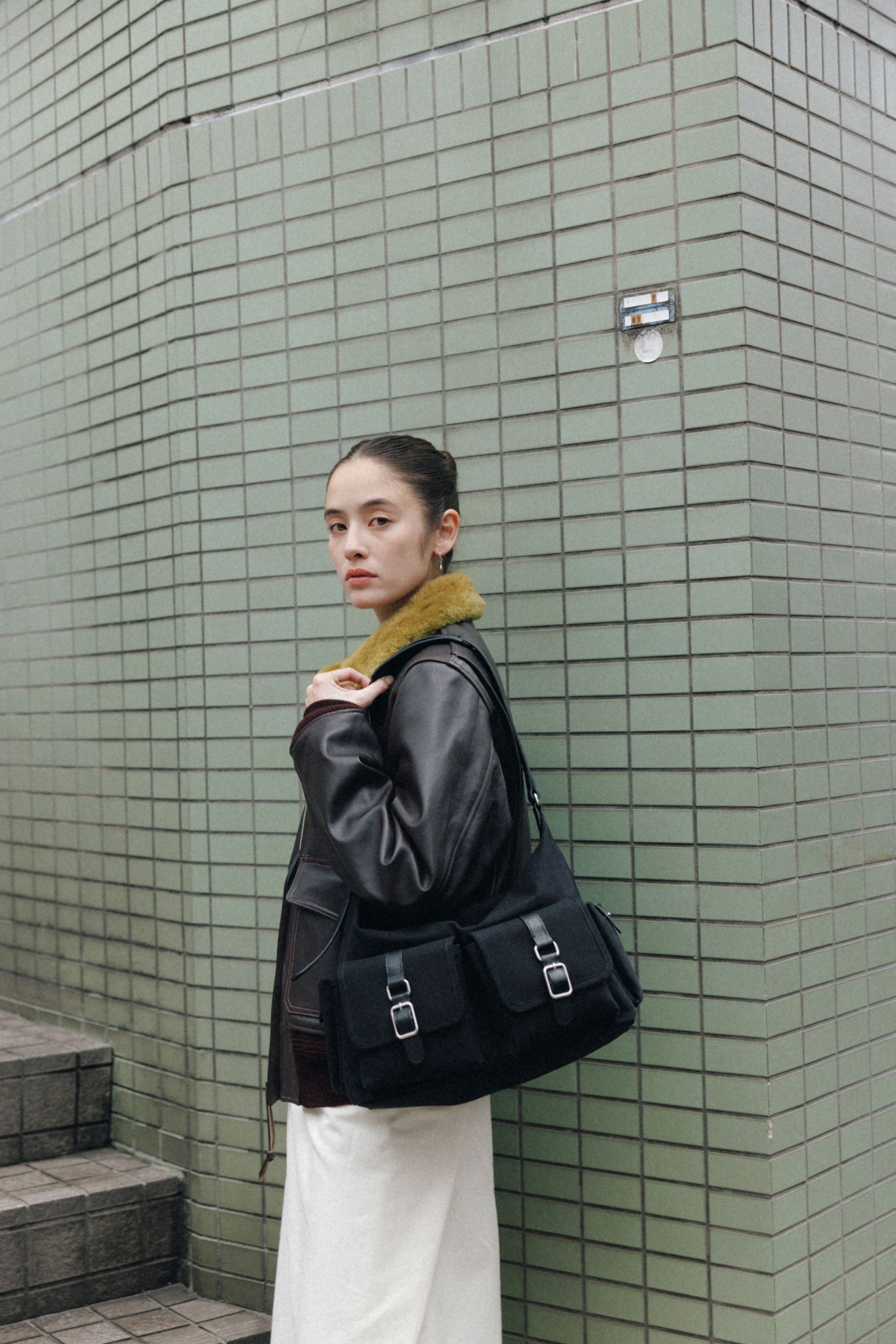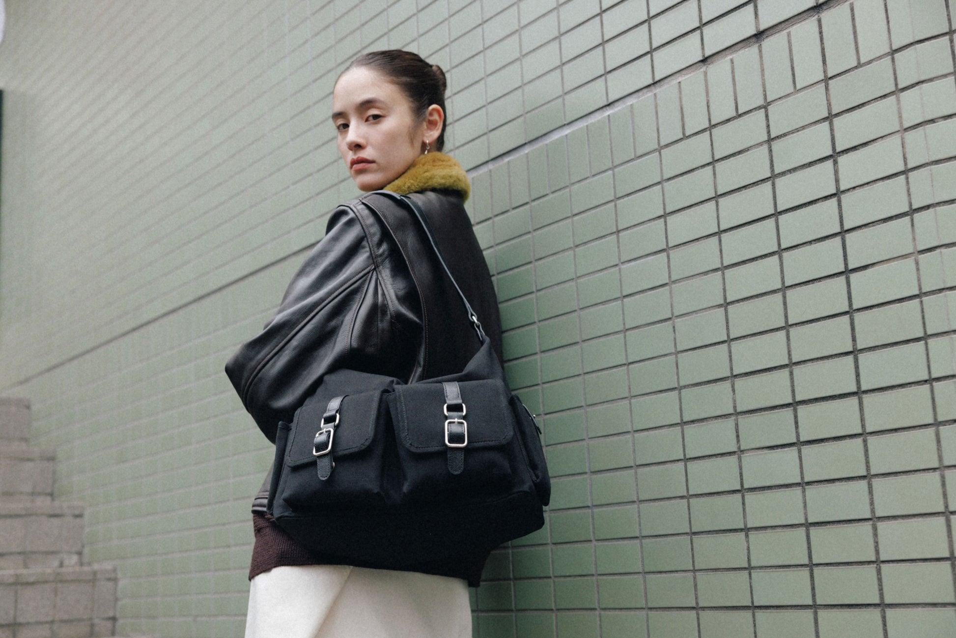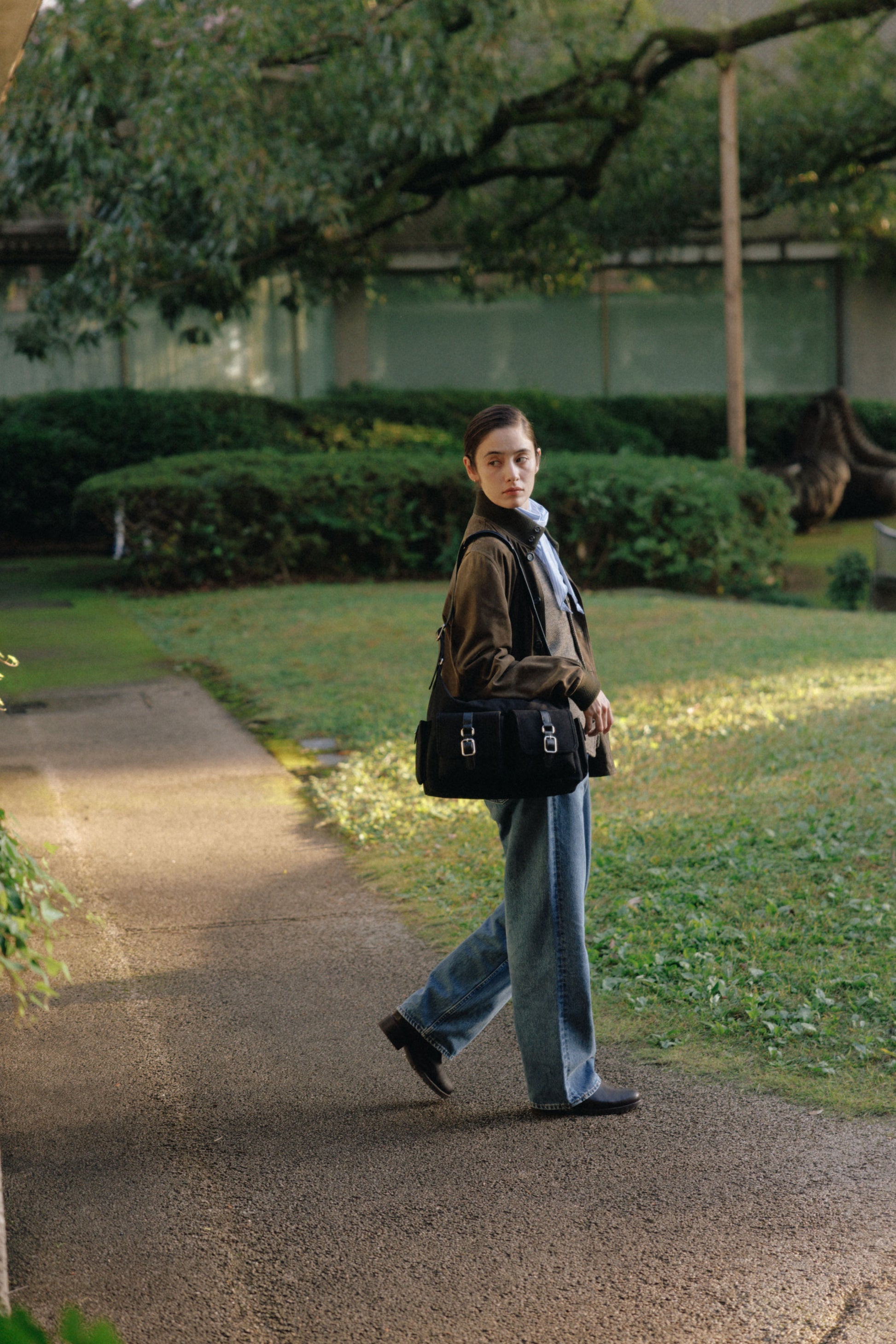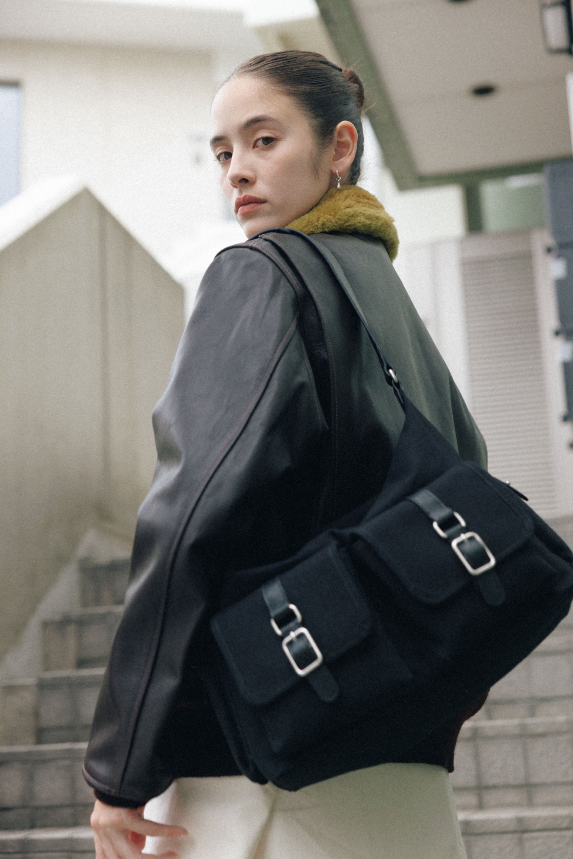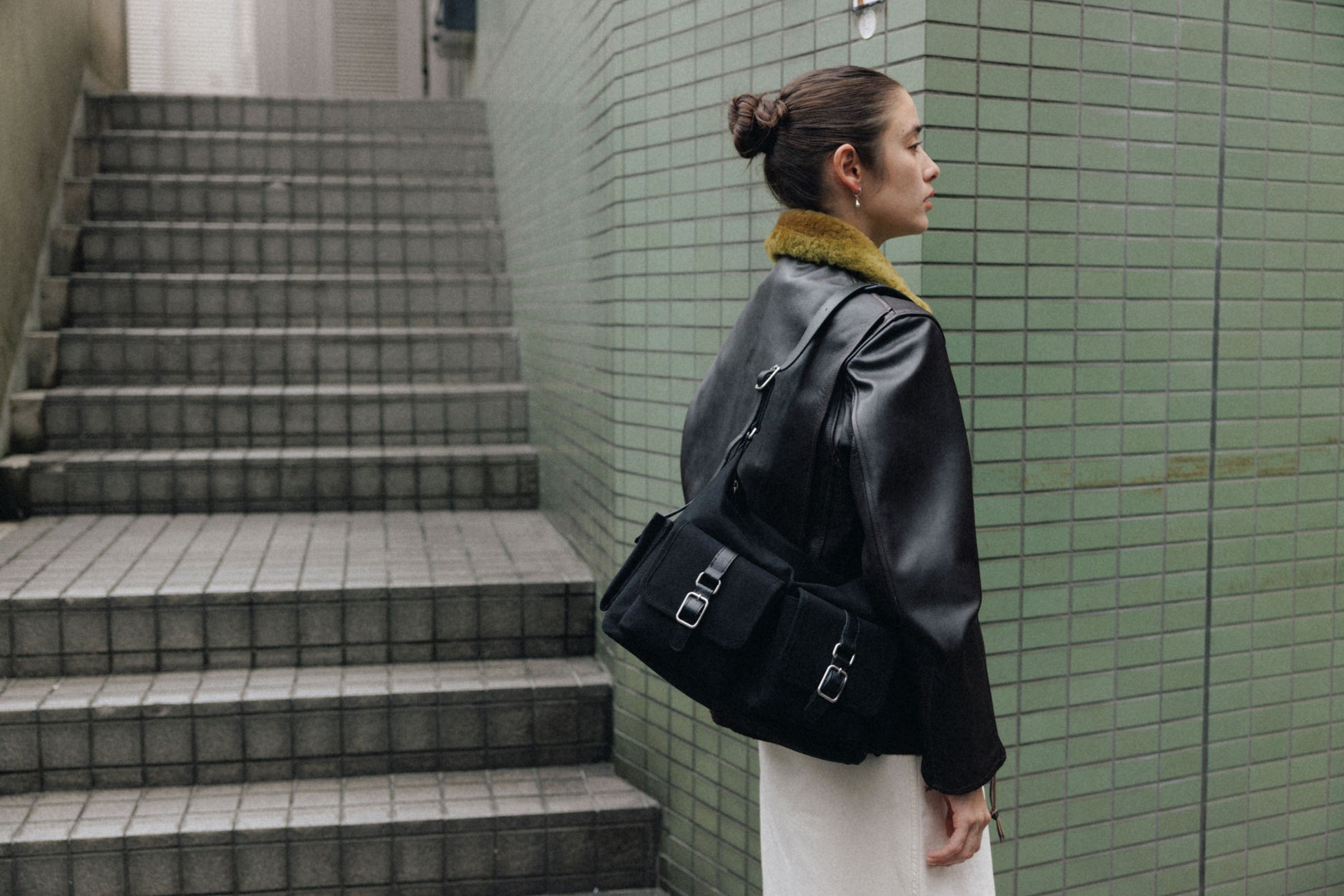 자연스럽게 떨어지는 곡선 형태로 기존 부트백보다 부드러운 인상을 주고, 상단은 지퍼 여밈으로 구성하여 일상에서 더 편안하게 사용할 수 있도록 했습니다. 전면에는 부트백에서 이어지는 가죽 버클 포켓을 적용해 시리즈의 특징을 담았고, 측면에는 작은 수납을 위한 포켓을 더했습니다. 소가죽으로 제작한 스트랩에는 어깨 보호대를 넣어 착용감을 높였으며, 길이 조절이 가능해 숄더와 크로스 두 가지 방식으로 착용할 수 있습니다.