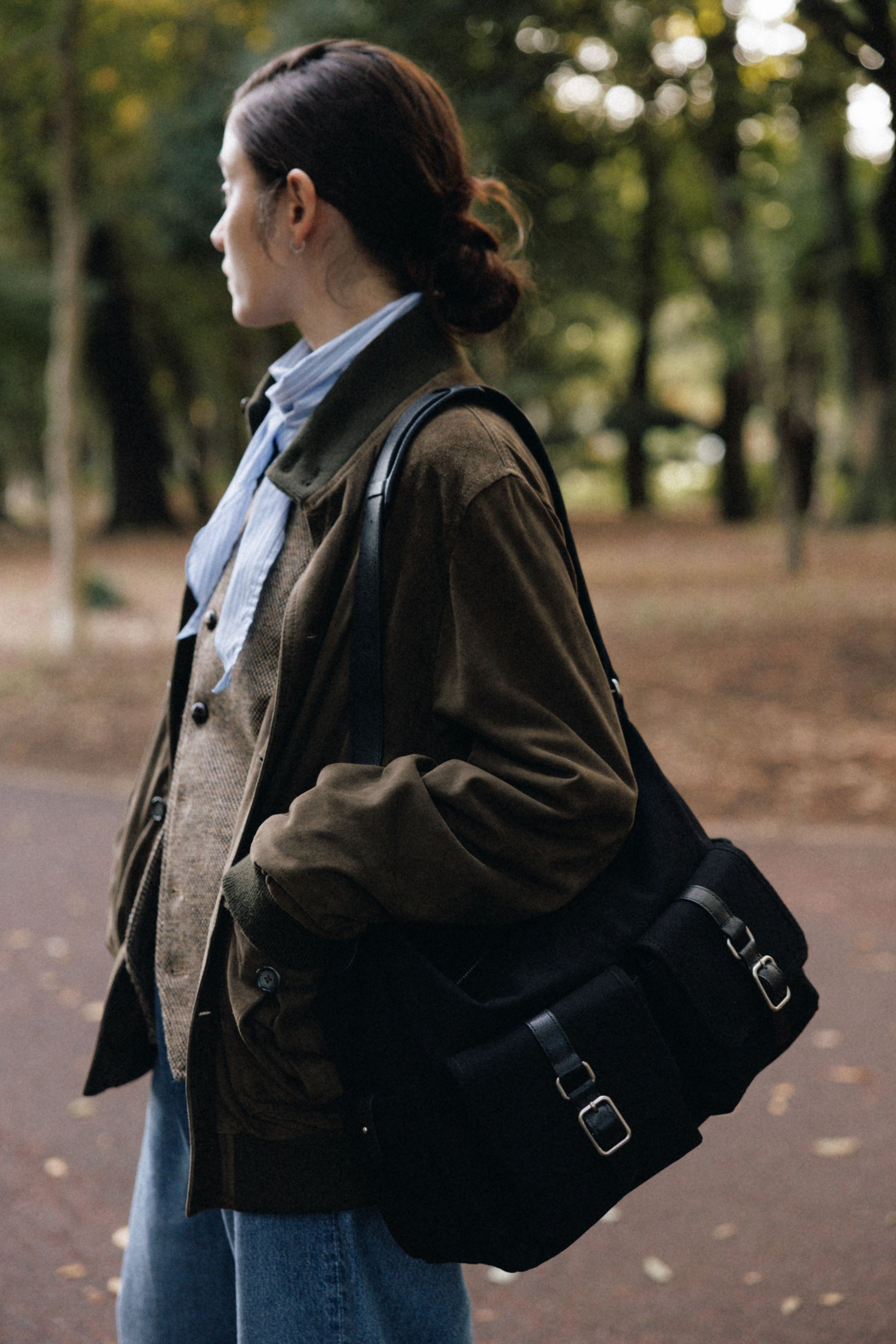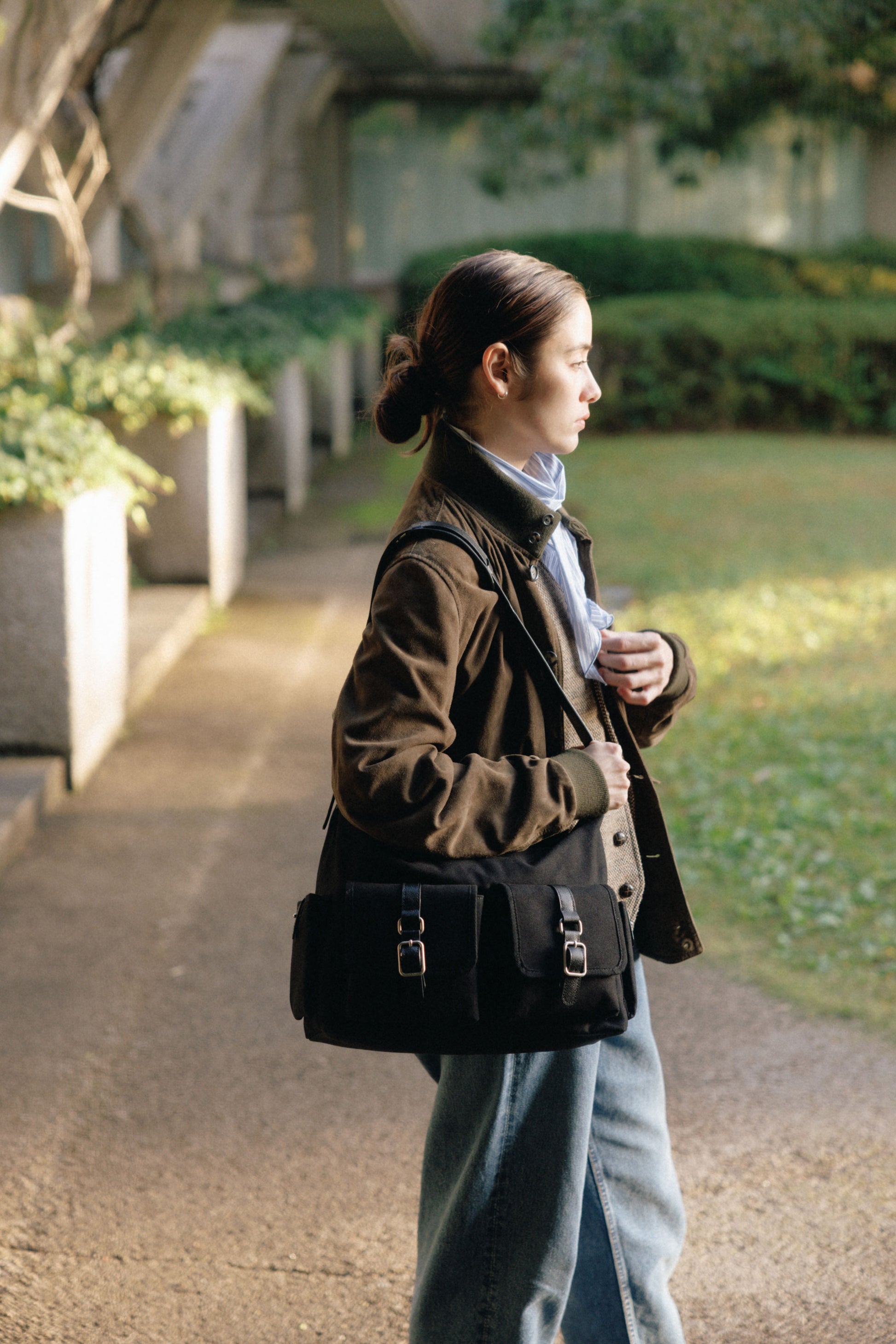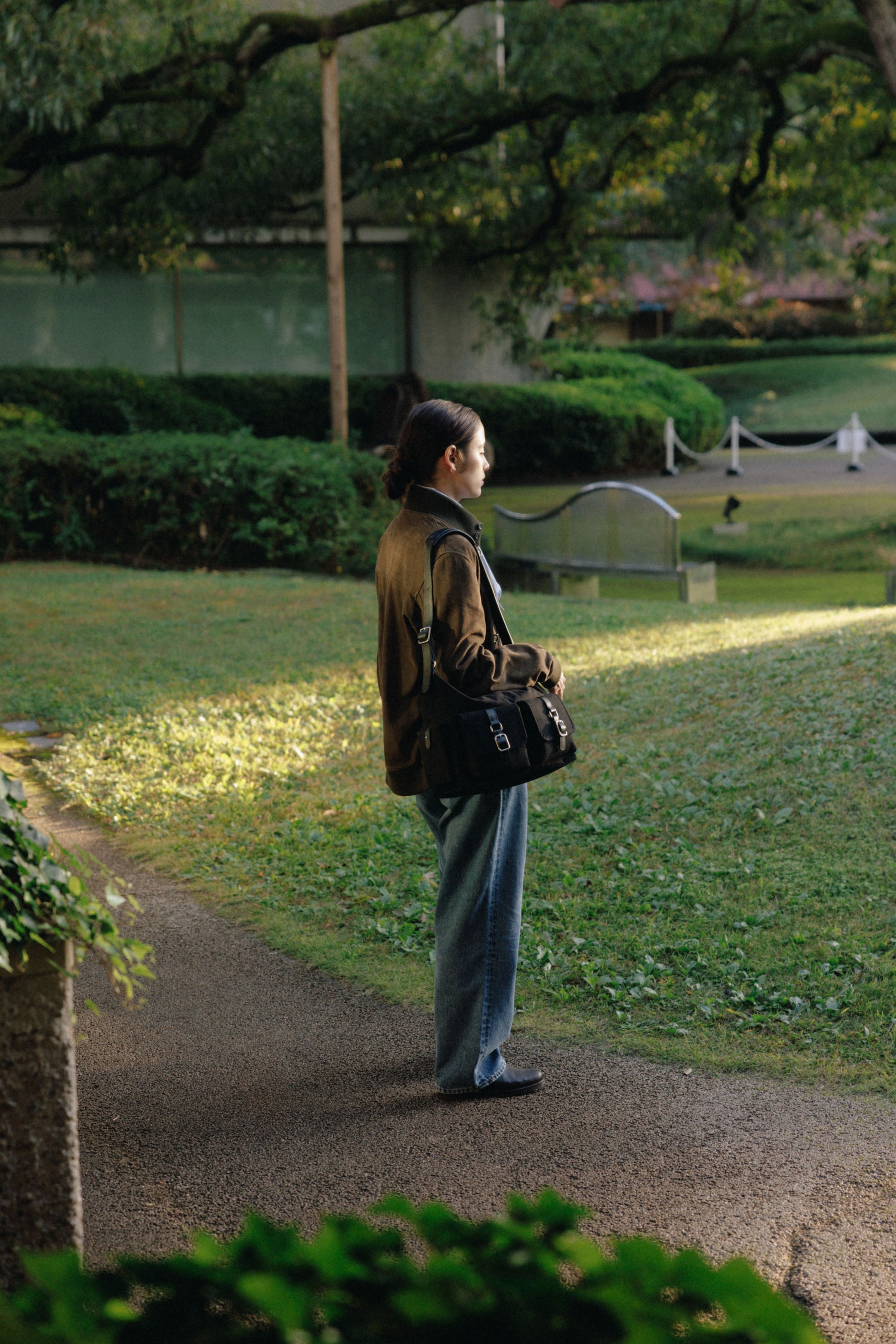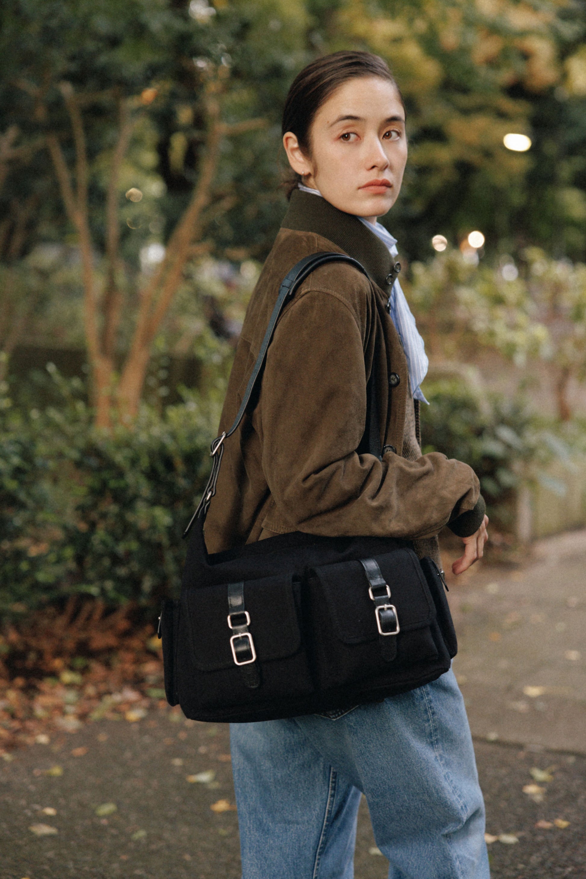 자연스럽게 떨어지는 곡선 형태로 기존 부트백보다 부드러운 인상을 주고, 상단은 지퍼 여밈으로 구성하여 일상에서 더 편안하게 사용할 수 있도록 했습니다. 전면에는 부트백에서 이어지는 가죽 버클 포켓을 적용해 시리즈의 특징을 담았고, 측면에는 작은 수납을 위한 포켓을 더했습니다. 소가죽으로 제작한 스트랩에는 어깨 보호대를 넣어 착용감을 높였으며, 길이 조절이 가능해 숄더와 크로스 두 가지 방식으로 착용할 수 있습니다.