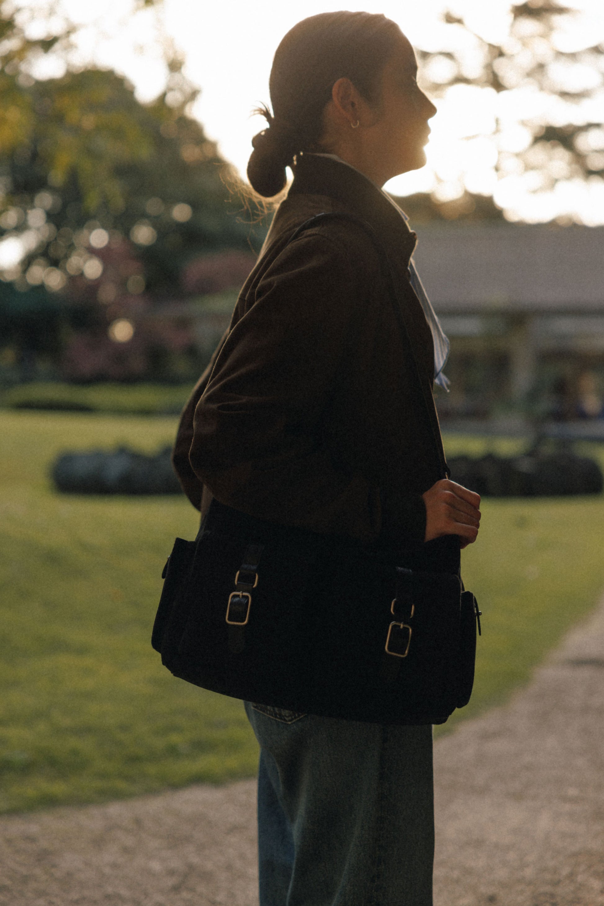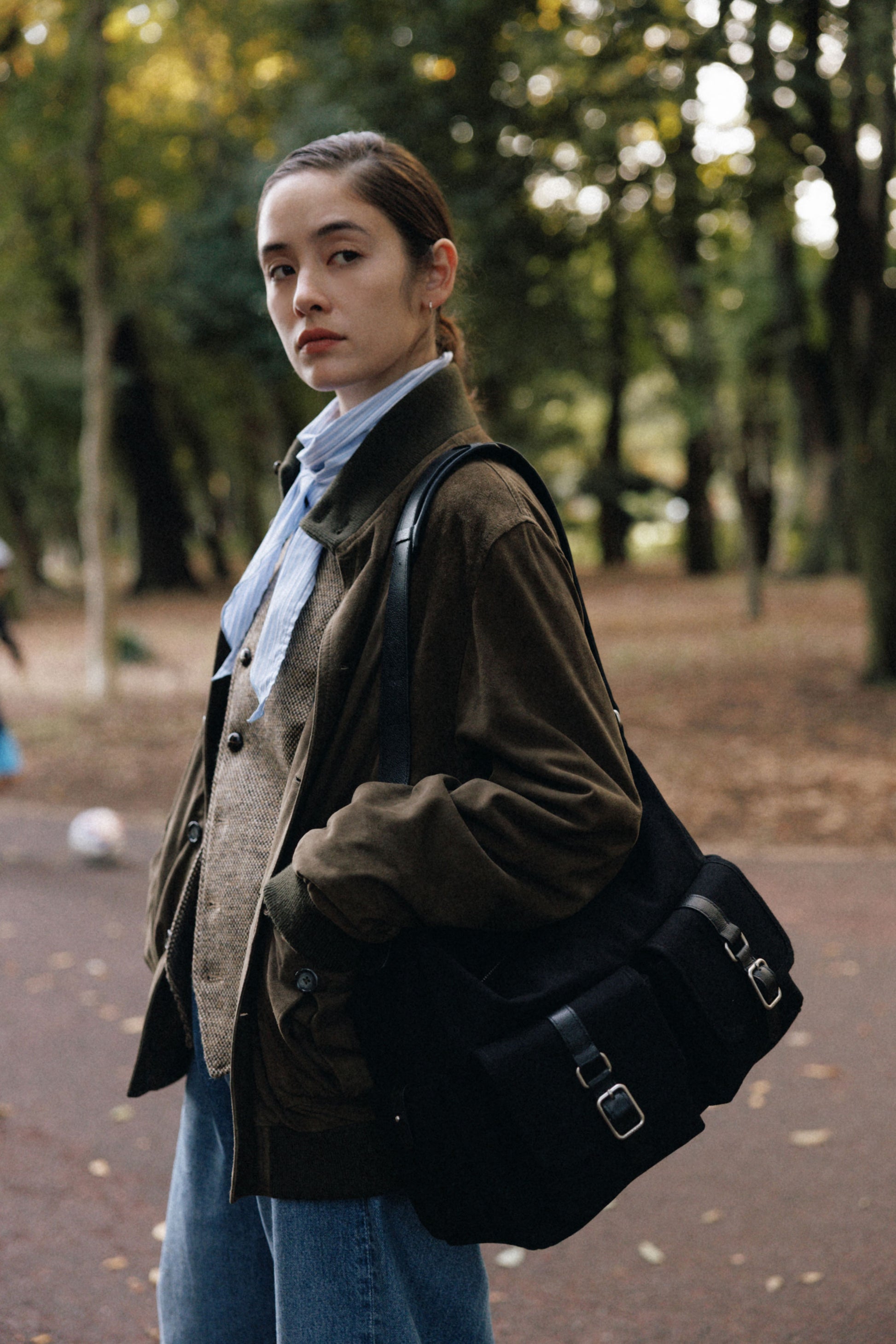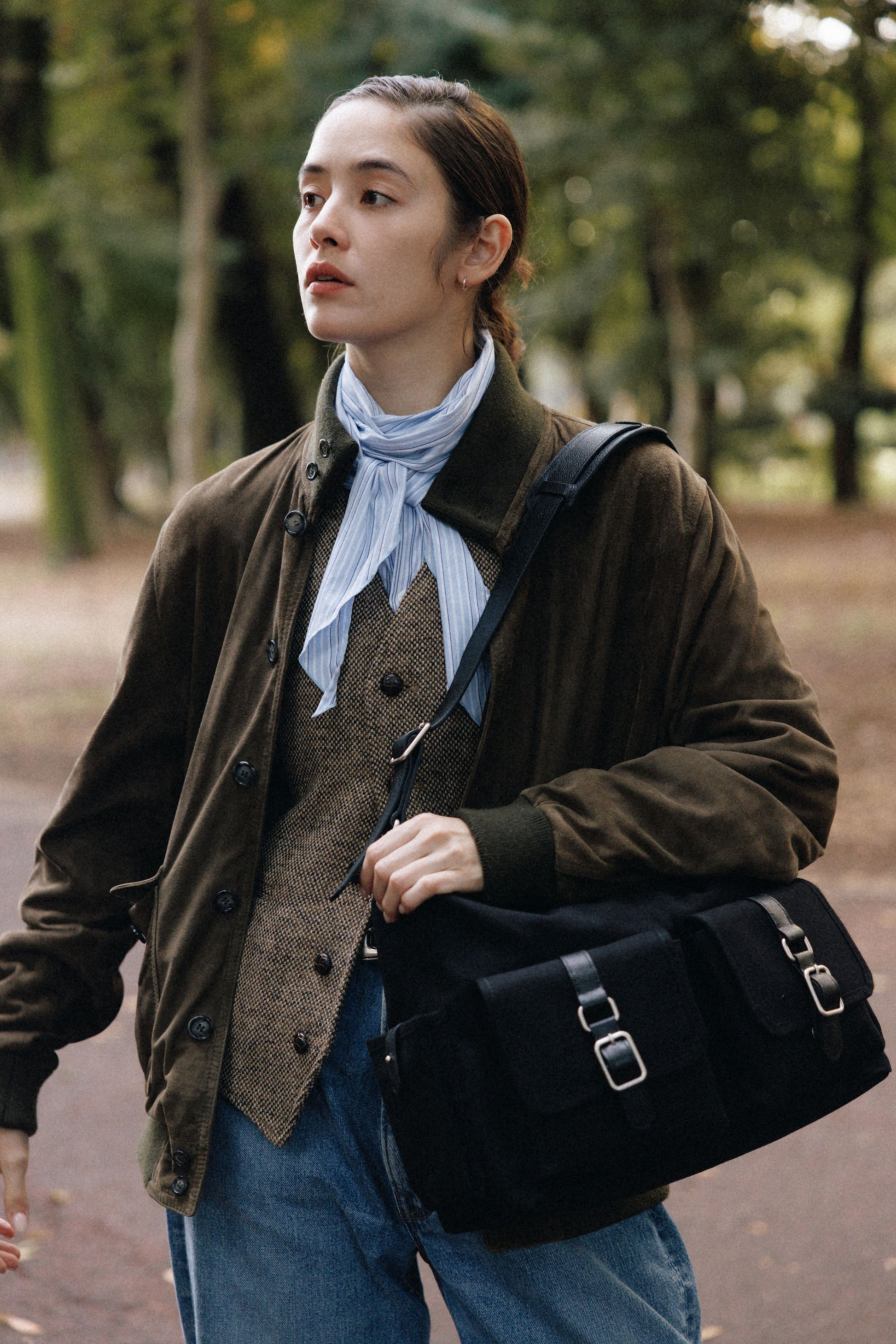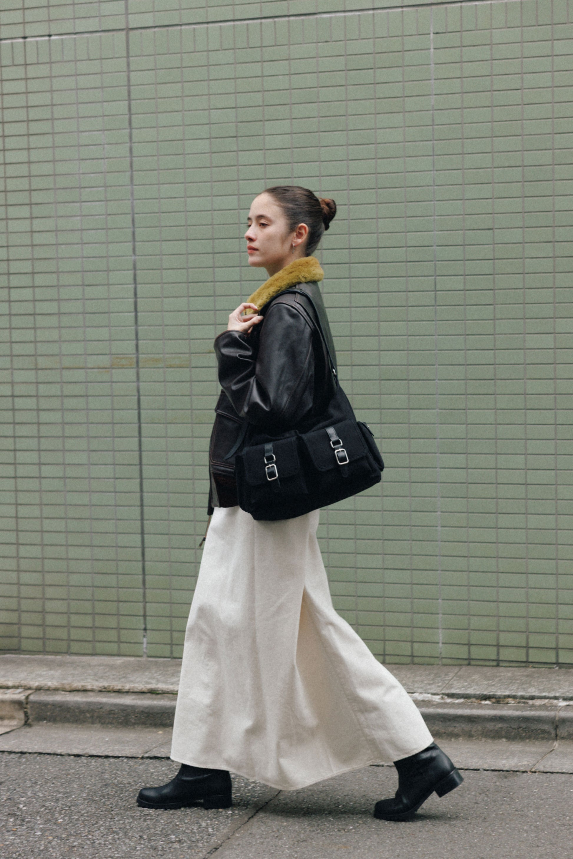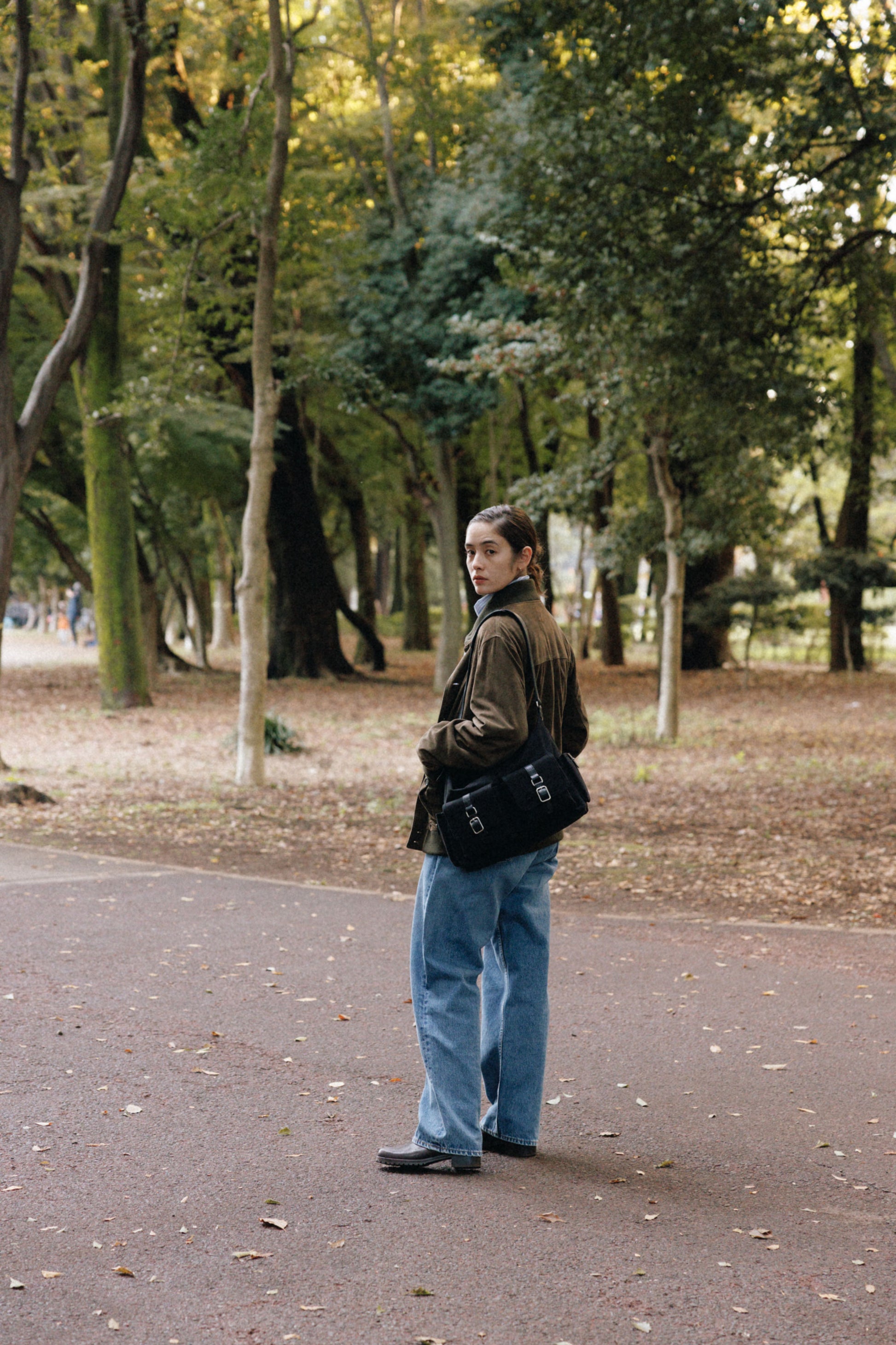 자연스럽게 떨어지는 곡선 형태로 기존 부트백보다 부드러운 인상을 주고, 상단은 지퍼 여밈으로 구성하여 일상에서 더 편안하게 사용할 수 있도록 했습니다. 전면에는 부트백에서 이어지는 가죽 버클 포켓을 적용해 시리즈의 특징을 담았고, 측면에는 작은 수납을 위한 포켓을 더했습니다. 소가죽으로 제작한 스트랩에는 어깨 보호대를 넣어 착용감을 높였으며, 길이 조절이 가능해 숄더와 크로스 두 가지 방식으로 착용할 수 있습니다.