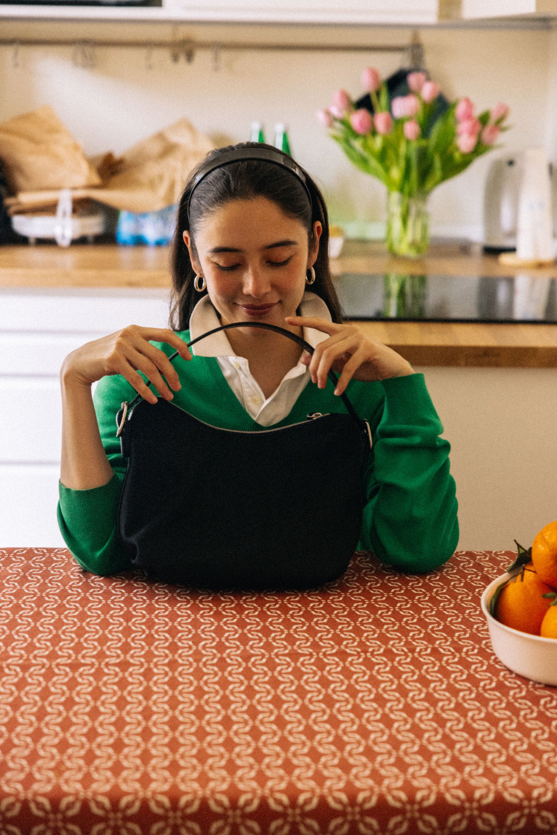 패브릭 가방 시리즈 카노 트왈백은 가볍고 내구성이 강한 소재에 가죽 스트랩 장식과 시그니쳐 버클을 더해 완성하였습니다. 브라스에 얇은 니켈을 도금한 버클에는 투티에의 로고가 각인되어 있으며, 밑단에는 플리츠를 넣어 수납에 따라 자연스러운 형태를 만들어 줍니다. 눈비에도 강한 외부 패브릭은 계절에 구애받지 않고 사용 가능하며 하단에는 가방을 지지해 주는 장식과 로고 각인을 더했습니다. 내부에는 지퍼로 열고 닫을 수 있는 작은 포켓이 있으며 가죽 스트랩은 벨트 버클로 길이 조절이 가능합니다. 수납에 따라 유연하게 변형되는 형태로 스몰 사이즈임에도 많은 소지품 수납이 가능하며 어느 착장에나 쉽게 착용할 수 있습니다.