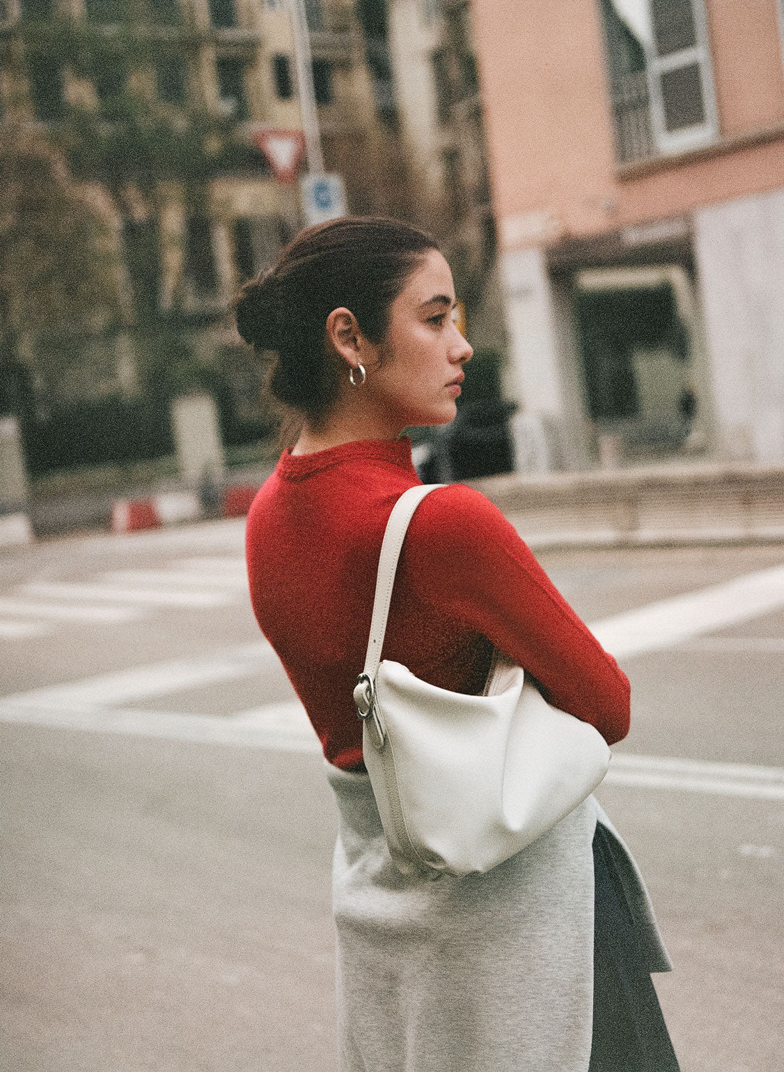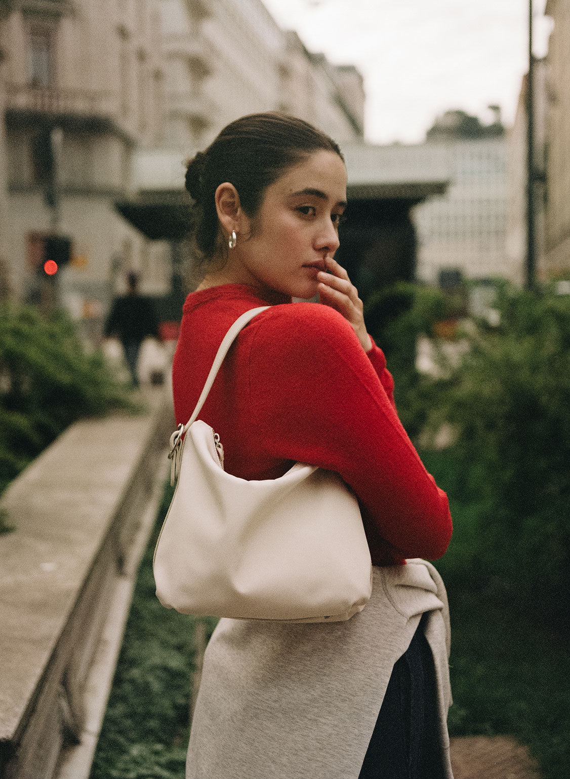 패브릭 가방 시리즈 카노 트왈백은 가볍고 내구성이 강한 소재에 가죽 스트랩 장식과 시그니쳐 버클을 더해 완성하였습니다. 브라스에 얇은 니켈을 도금한 버클에는 투티에의 로고가 각인되어 있으며, 밑단에는 플리츠를 넣어 수납에 따라 자연스러운 형태를 만들어 줍니다. 눈비에도 강한 외부 패브릭은 계절에 구애받지 않고 사용 가능하며 하단에는 가방을 지지해 주는 장식과 로고 각인을 더했습니다. 내부에는 지퍼로 열고 닫을 수 있는 작은 포켓이 있으며 가죽 스트랩은 벨트 버클로 길이 조절이 가능합니다. 수납에 따라 유연하게 변형되는 형태로 스몰 사이즈임에도 많은 소지품 수납이 가능하며 어느 착장에나 쉽게 착용할 수 있습니다.