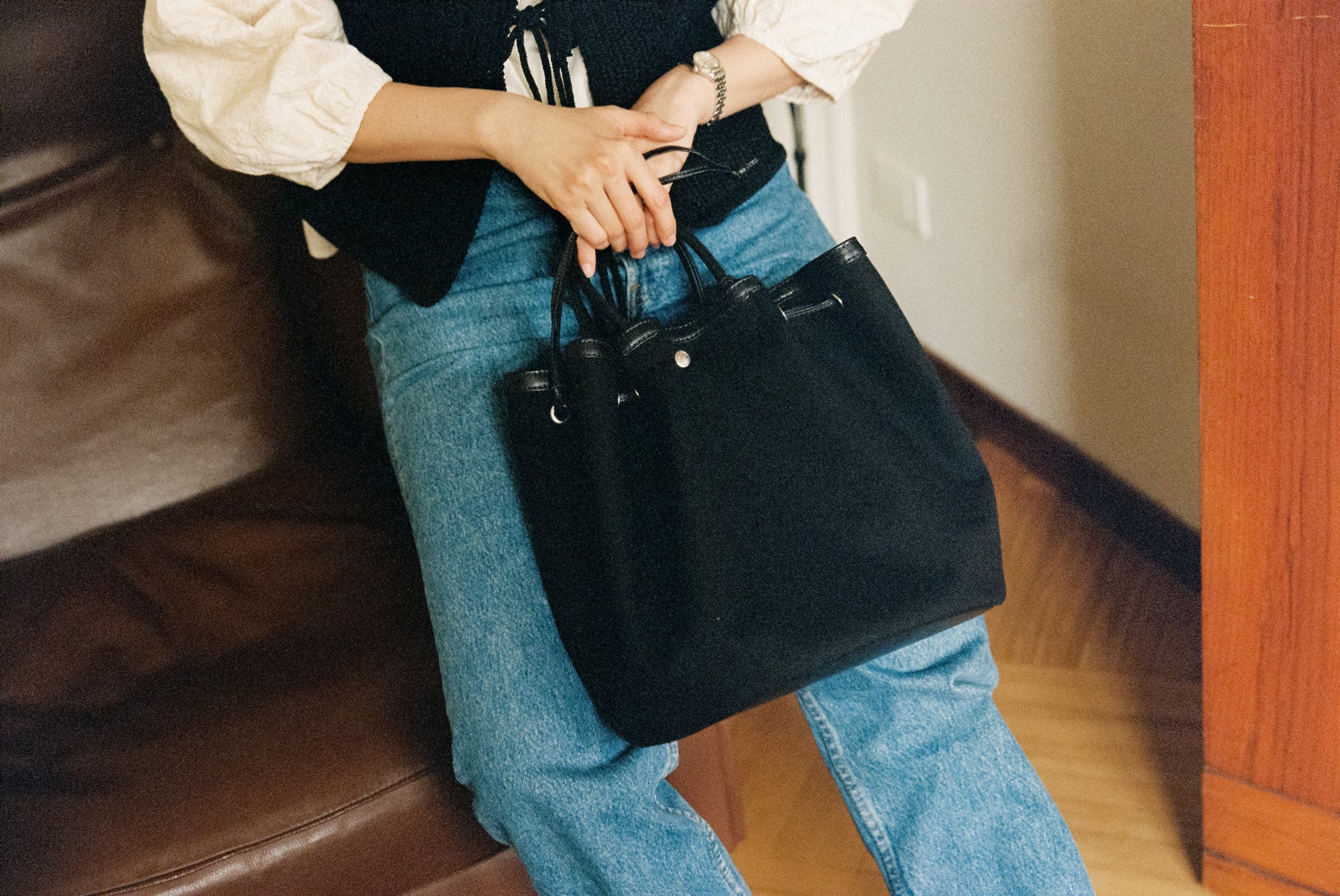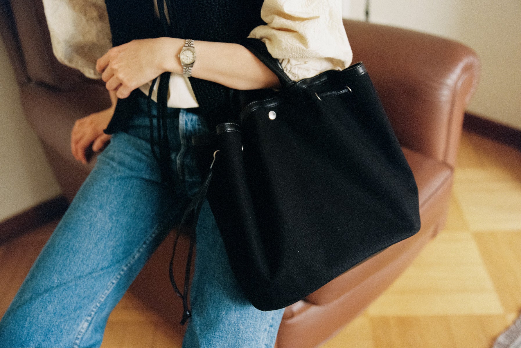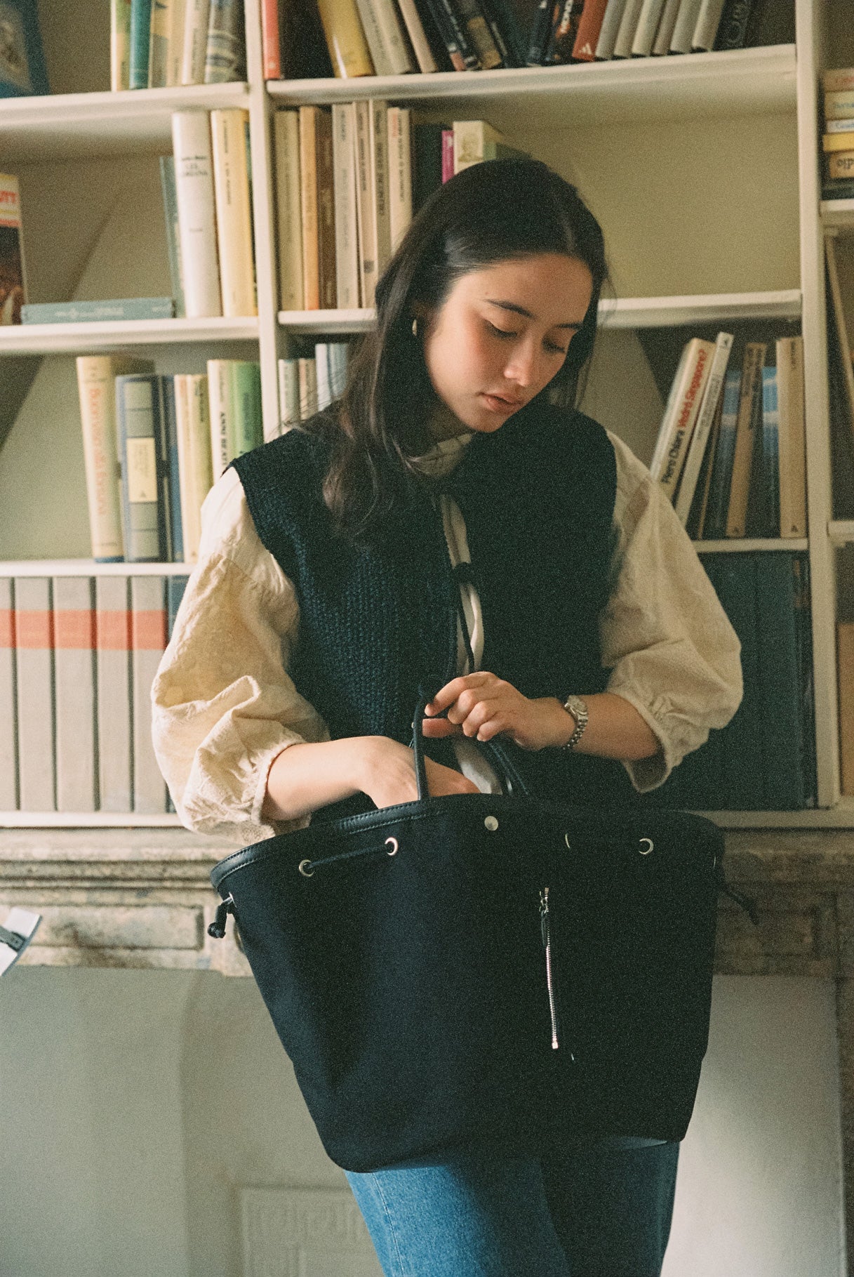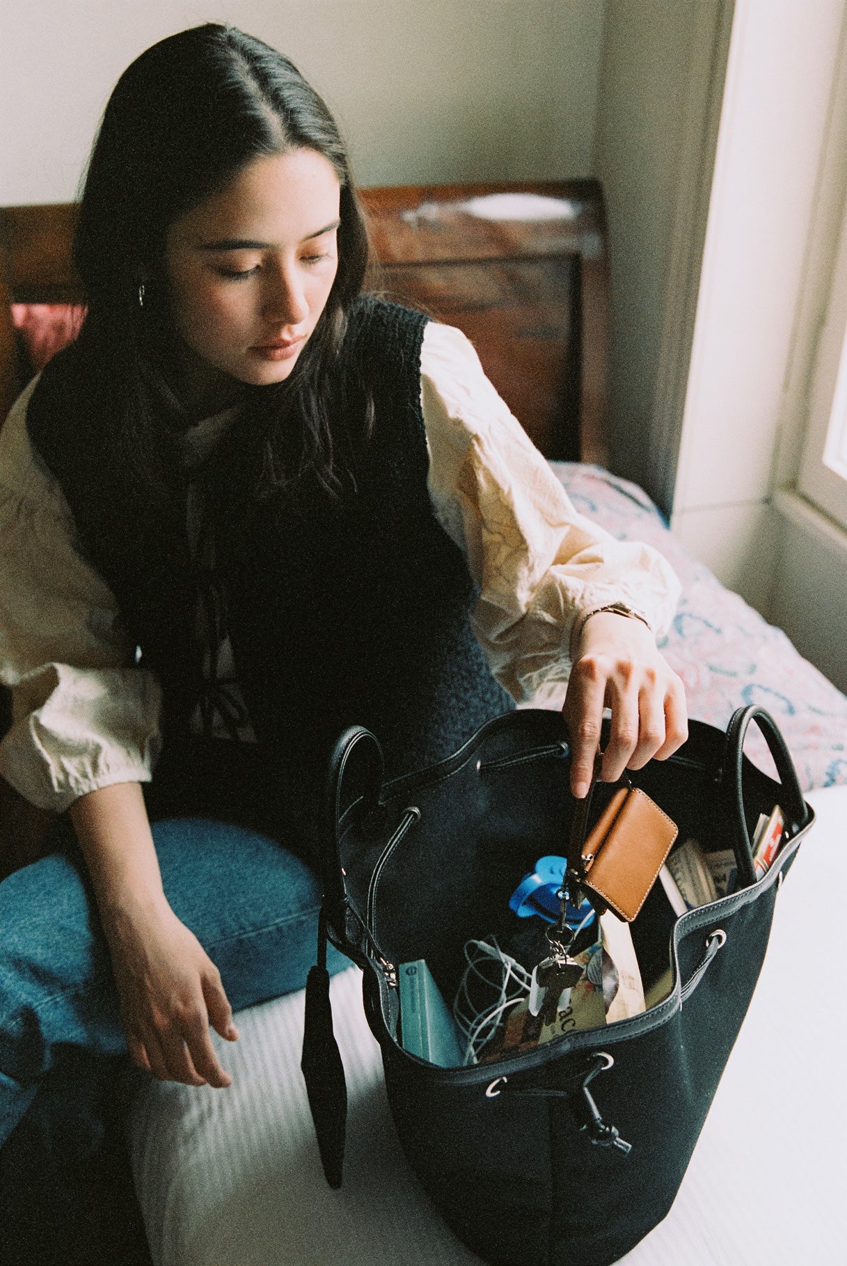 코튼 캔버스 소재에 부드러운 양가죽 더하여 완성한 쇼퍼백입니다. COQUILLE는 프랑스어로 조개 껍질을 뜻하며, 상단의 가죽 스트링으로 자유롭게 형태 조절이 가능한 가방의 특징을 담았습니다. 소지품이 많을 때는 넓게 펼쳐 쇼퍼백의 형태로, 또는 스트링을 조여 버킷백의 형태로도 사용해보세요. 중앙에는 로고가 각인된 스냅이 있어 잠금이 가능합니다. 또한 탈부착이 가능한 파우치를 함께 구성하여 자주 손이 가는 작은 소지품을 보관하기에 용이합니다. 부드럽고 둥근 스트랩은 소지품을 많이 넣어도 편안한 그립감을 제공하고, 탄탄한 양가죽으로 제작된 하단은 가방을 안정적으로 지탱합니다.
