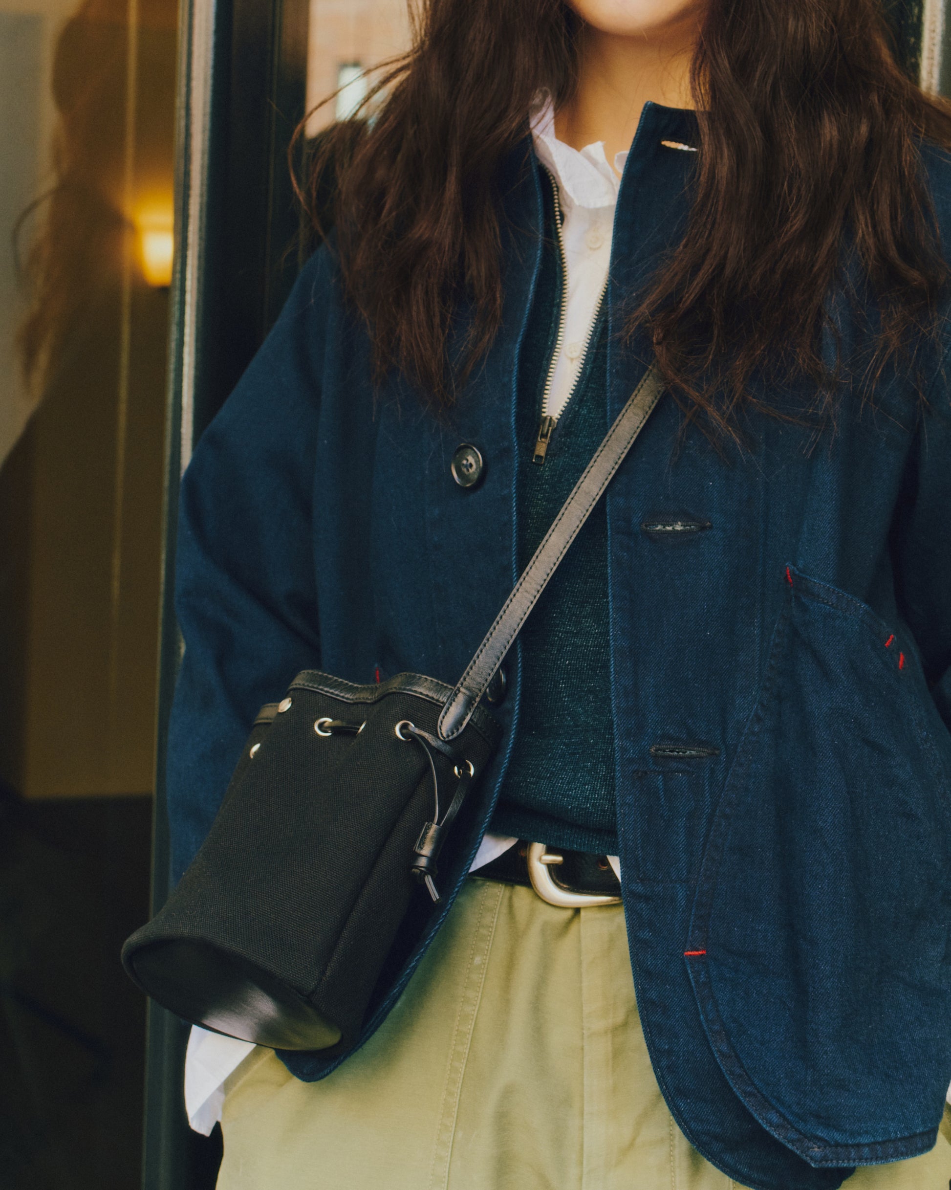 코튼 캔버스에 부드러운 소가죽을 더해 완성한 코키 버킷백의 미니 사이즈입니다. ‘COQUILLE’은 프랑스어로 조개껍질을 뜻하며, 상단의 가죽 스트링을 통해 형태를 자유롭게 조절할 수 있는 가방의 특징을 담고 있습니다.