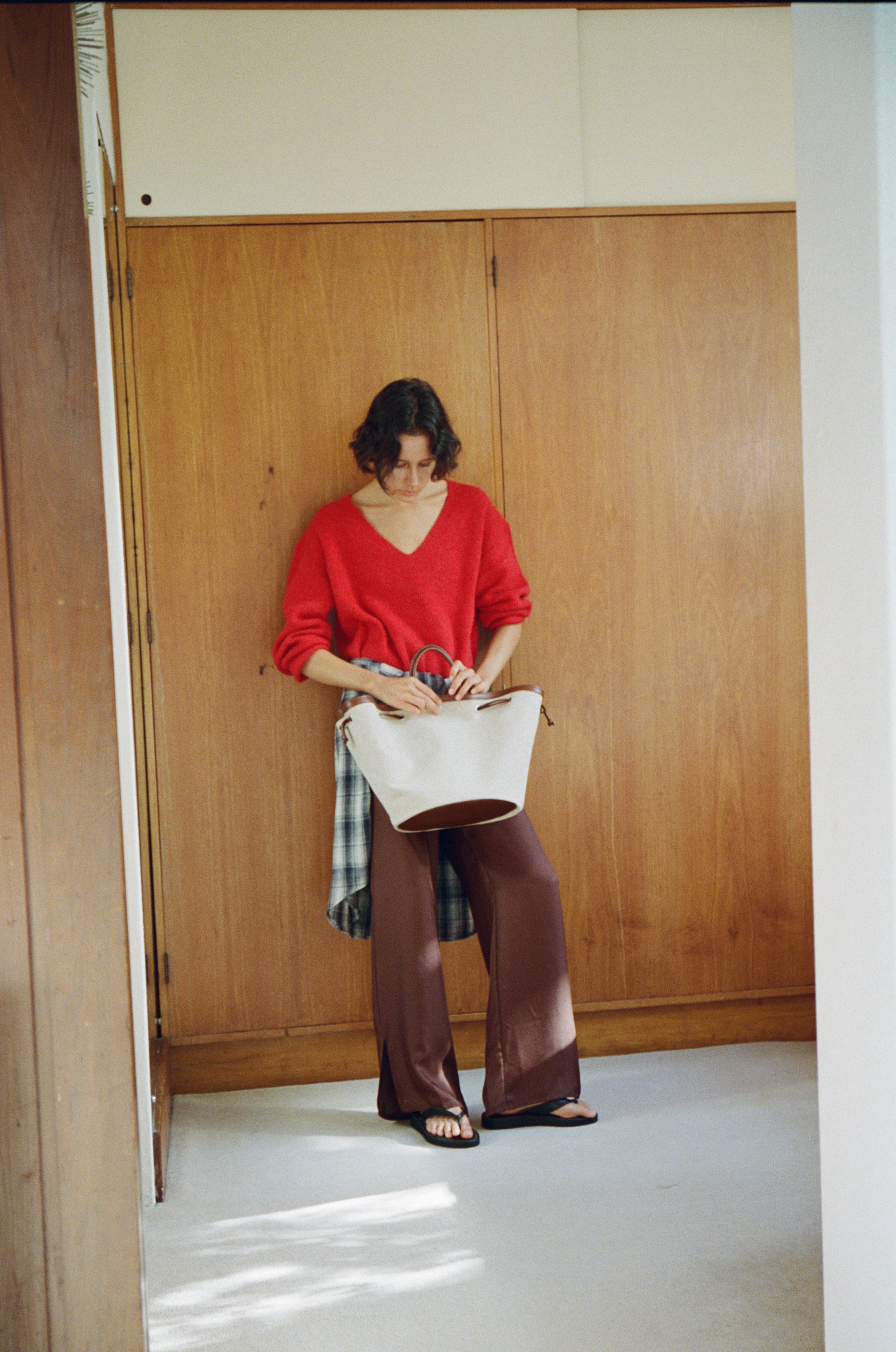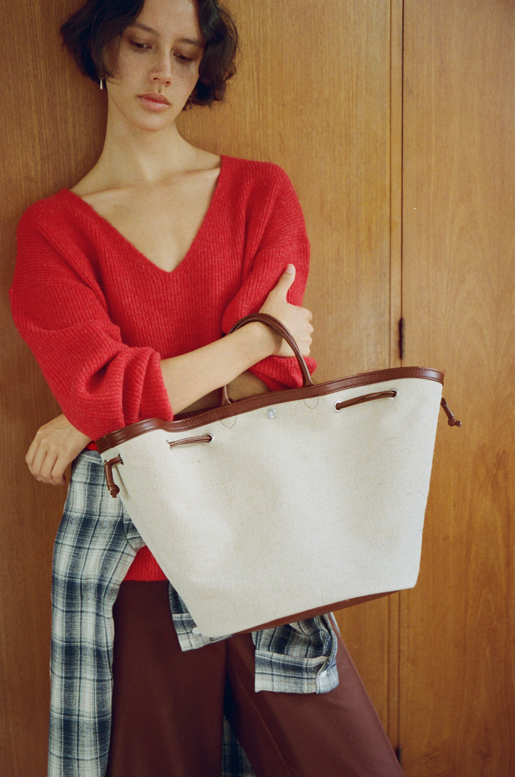 코튼 캔버스 소재에 부드러운 양가죽 더하여 완성한 쇼퍼백입니다. COQUILLE는 프랑스어로 조개 껍질을 뜻하며, 상단의 가죽 스트링으로 자유롭게 형태 조절이 가능한 가방의 특징을 담았습니다. 소지품이 많을 때는 넓게 펼쳐 쇼퍼백의 형태로, 또는 스트링을 조여 버킷백의 형태로도 사용해보세요. 중앙에는 로고가 각인된 스냅이 있어 잠금이 가능합니다. 또한 탈부착이 가능한 파우치를 함께 구성하여 자주 손이 가는 작은 소지품을 보관하기에 용이합니다. 부드럽고 둥근 스트랩은 소지품을 많이 넣어도 편안한 그립감을 제공하고, 탄탄한 양가죽으로 제작된 하단은 가방을 안정적으로 지탱합니다.