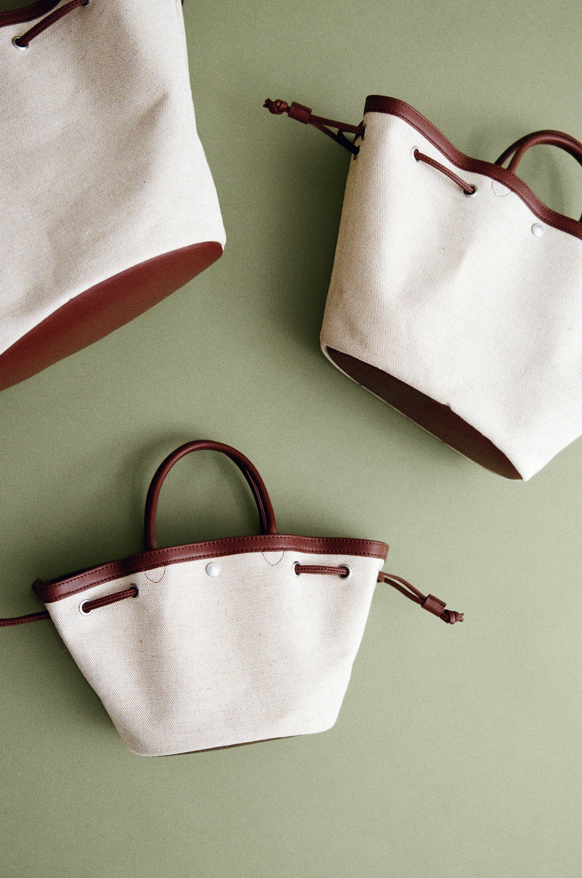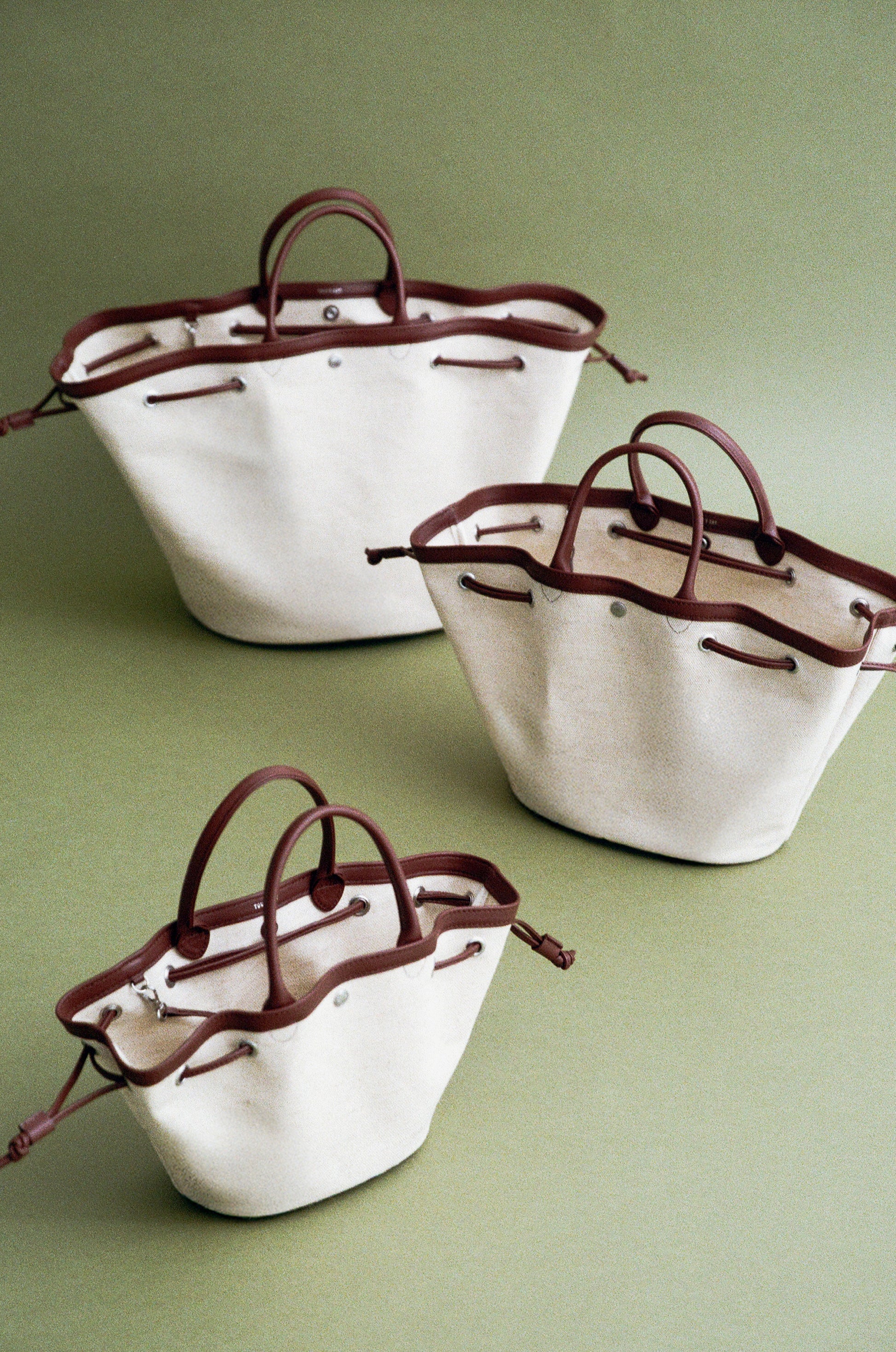 코튼 캔버스 소재에 부드러운 양가죽 더하여 완성한 쇼퍼백입니다. COQUILLE는 프랑스어로 조개 껍질을 뜻하며, 상단의 가죽 스트링으로 자유롭게 형태 조절이 가능한 가방의 특징을 담았습니다. 소지품이 많을 때는 넓게 펼쳐 쇼퍼백의 형태로, 또는 스트링을 조여 버킷백의 형태로도 사용해보세요. 중앙에는 로고가 각인된 스냅이 있어 잠금이 가능합니다. 또한 탈부착이 가능한 파우치를 함께 구성하여 자주 손이 가는 작은 소지품을 보관하기에 용이합니다. 부드럽고 둥근 스트랩은 소지품을 많이 넣어도 편안한 그립감을 제공하고, 탄탄한 양가죽으로 제작된 하단은 가방을 안정적으로 지탱합니다.