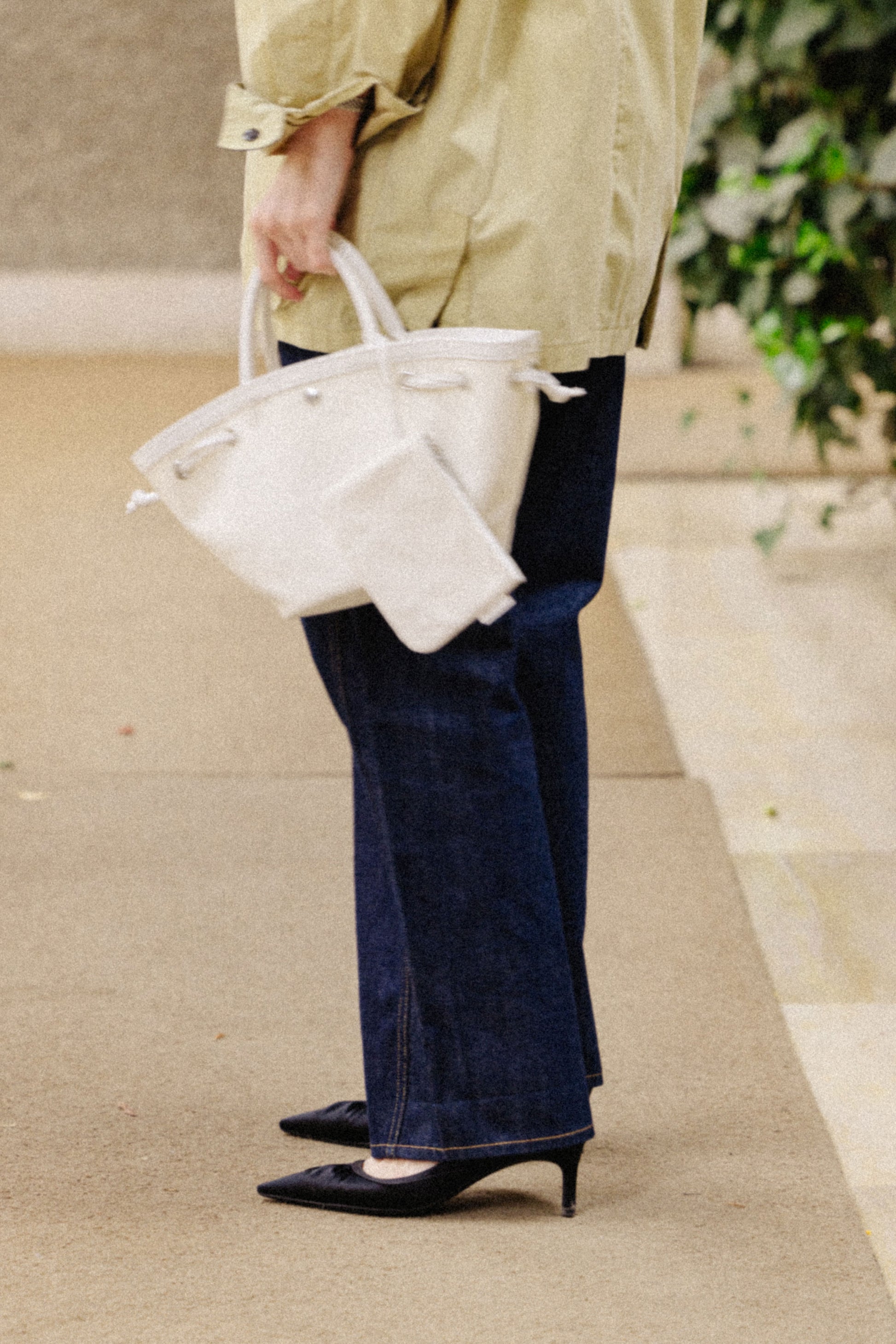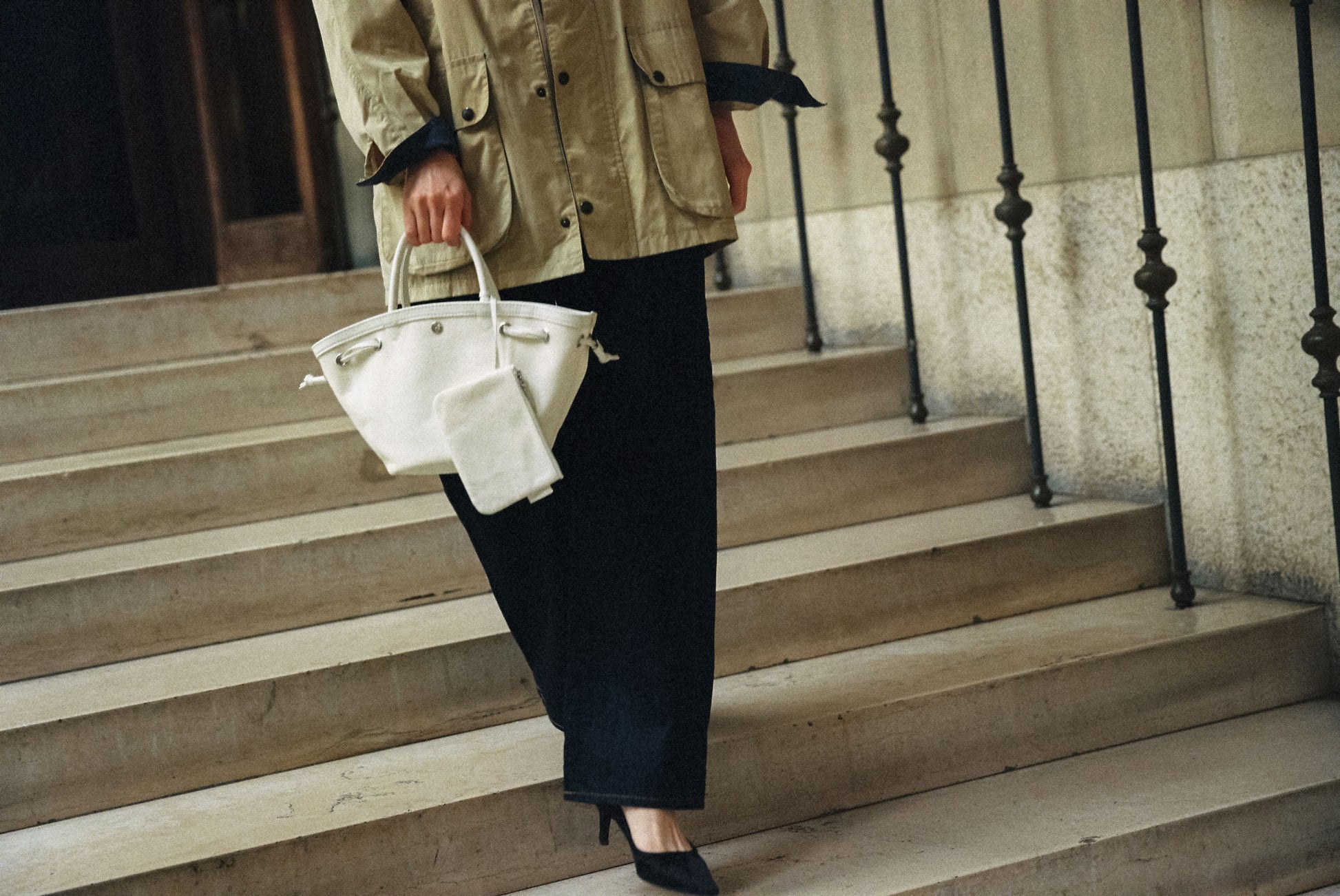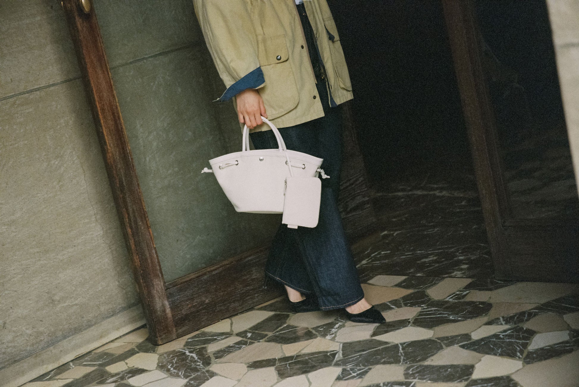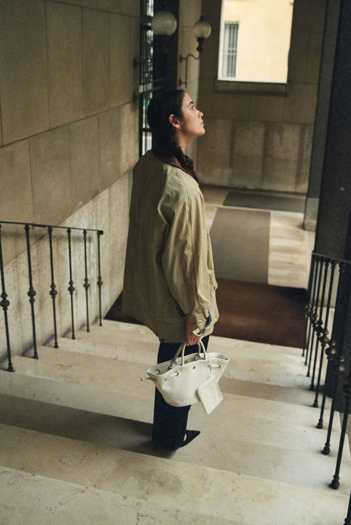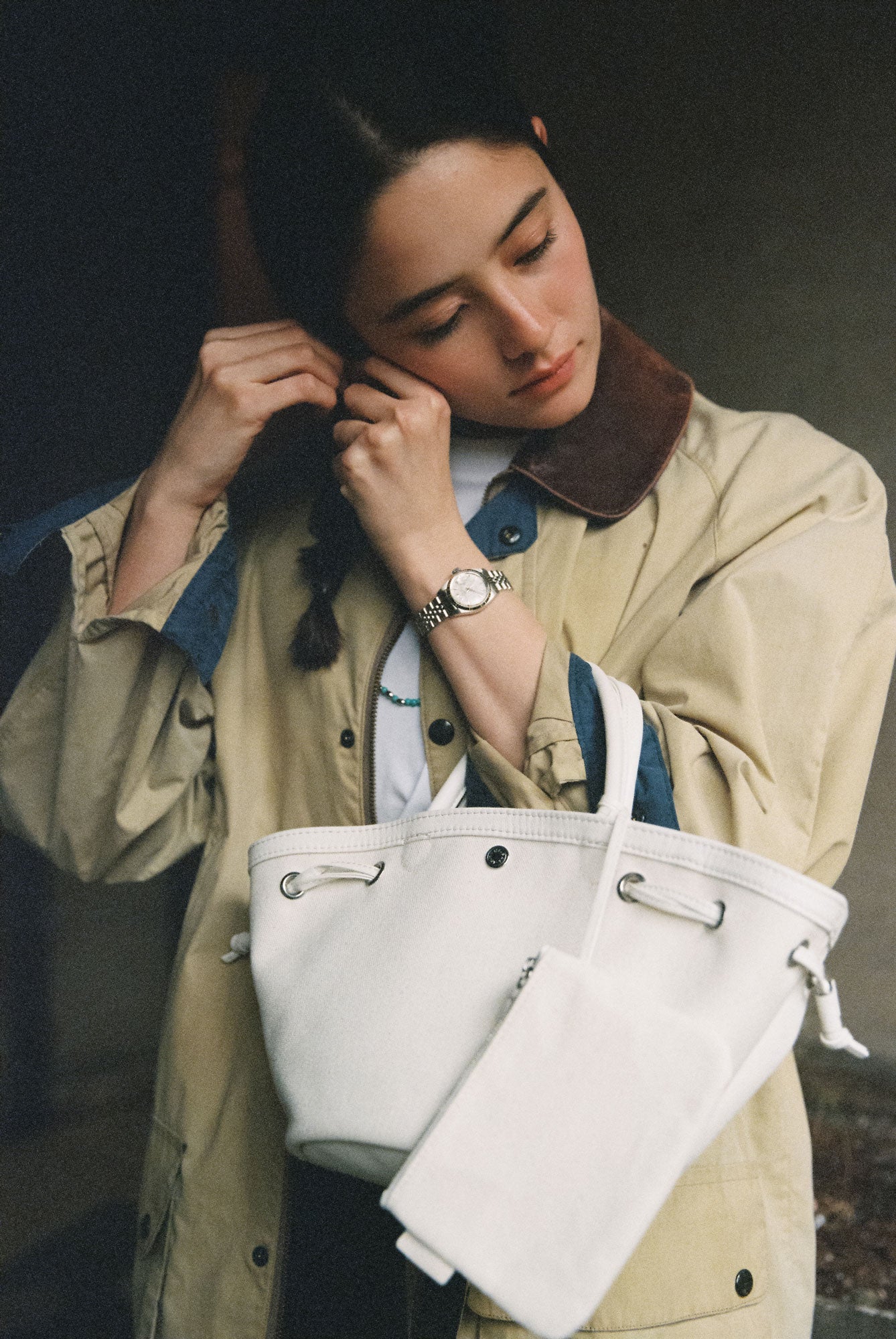 코튼 캔버스 소재에 부드러운 양가죽 더하여 완성한 쇼퍼백입니다. COQUILLE는 프랑스어로 조개 껍질을 뜻하며, 상단의 가죽 스트링으로 자유롭게 형태 조절이 가능한 가방의 특징을 담았습니다. 소지품이 많을 때는 넓게 펼쳐 쇼퍼백의 형태로, 또는 스트링을 조여 버킷백의 형태로도 사용해보세요. 중앙에는 로고가 각인된 스냅이 있어 잠금이 가능합니다. 또한 탈부착이 가능한 파우치를 함께 구성하여 자주 손이 가는 작은 소지품을 보관하기에 용이합니다. 부드럽고 둥근 스트랩은 소지품을 많이 넣어도 편안한 그립감을 제공하고, 탄탄한 양가죽으로 제작된 하단은 가방을 안정적으로 지탱합니다.