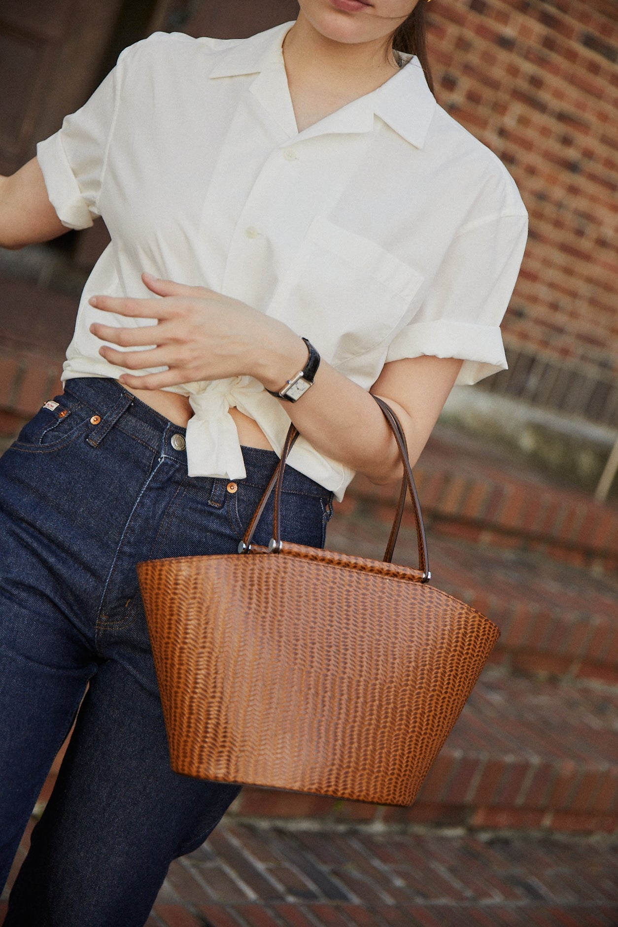 새롭게 선보이는 위브 패턴으로 만든 에티레백은 안정적인 형태의 쇼퍼백으로 넉넉한 수납력을 자랑합니다. 가죽을 엮은듯한 위브 패턴은 섬세하면서도 견고하며 자연스러운 투 톤 표현으로 투티에만의 빈티지한 느낌을 그대로 지니고 있습니다. 언뜻 보여지는 안감 또한 톡톡한 질감의 린넨 코튼 소재를 사용하여 완성도를 높였습니다. 지퍼가 달린 내부 포켓은 소지품을 안전하게 수납할 수 있으며 탈착이 편한 작은 고리로 여닫을 수 있습니다.