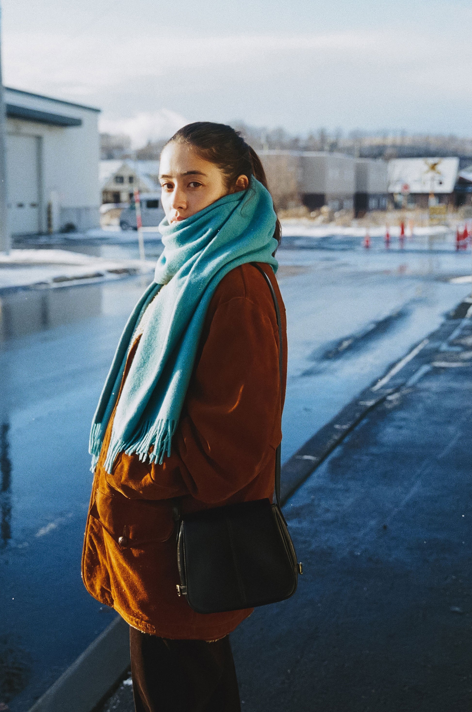 전면 가죽 플랩은 중앙 스티치 디테일로 깔끔하게 마감하고, 측면은 아코디언 형태로 나뉜 가죽을 작은 버클로 고정해 디테일을 더했습니다. 측면의 버클을 사용해 소지품에 따라 가방의 부피를 조절할 수 있고, 길이 조절이 가능한 스트랩을 부착하여 숄더 및 크로스로 착용이 가능합니다.