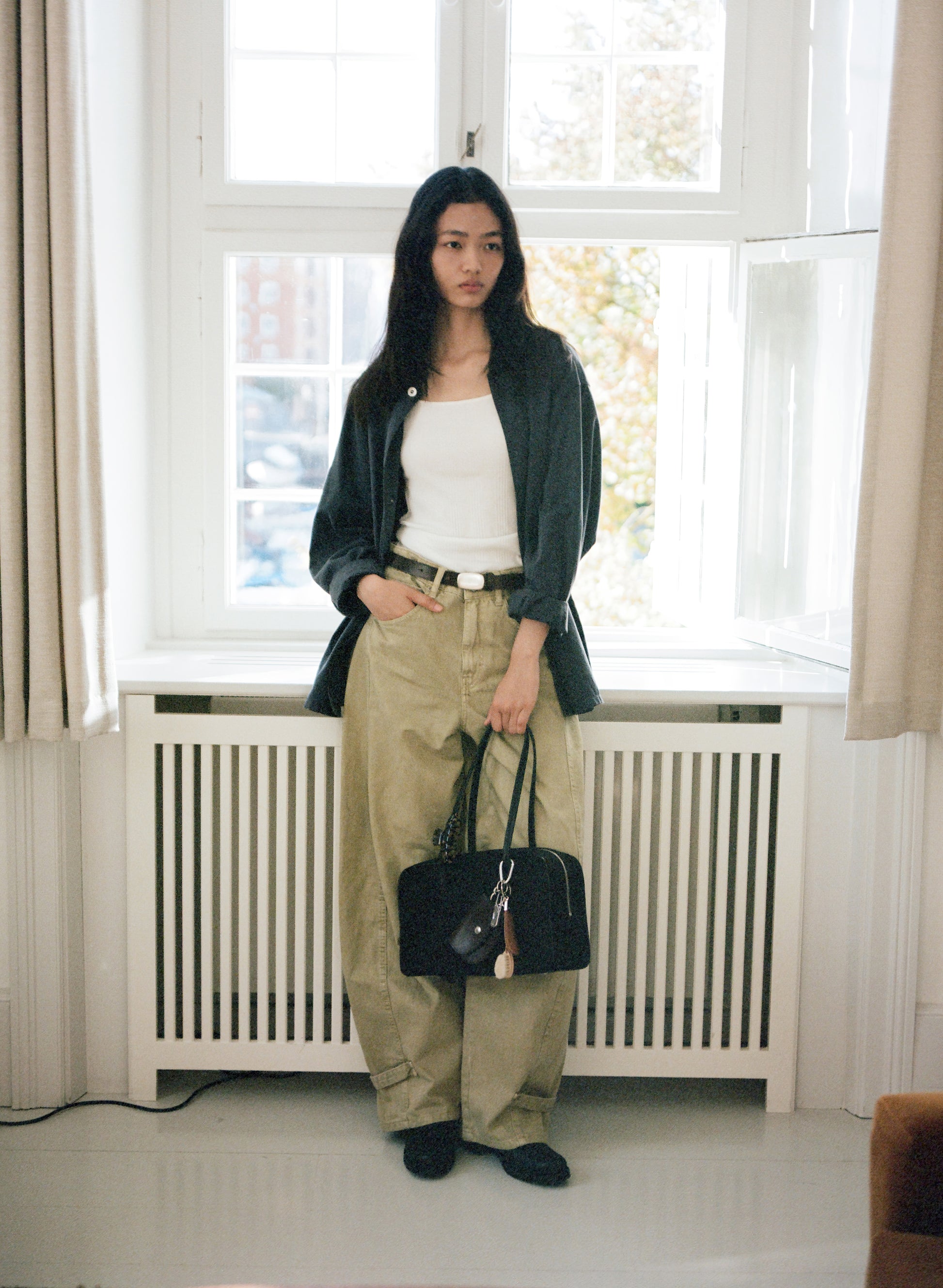 투티에의 시그니처 제품 로케백을 코튼처럼 부드러운 촉감의 캔버스 소재로 소개합니다. 긴 스트랩으로 숄더백으로 사용 가능하고, 소프트한 마감으로 착용 시 자연스럽게 모양이 잡히며 편안한 착용감을 제공합니다. 스트랩과 가방의 밑면은 소가죽을 사용하여 내구성을 높였고, 모서리를 따라 두른 가죽 트림은 가방의 형태를 안정감있게 잡아줍니다. 오염에 강하면서도 부드러운 코튼 질감을 살린 캔버스 소재를 사용하여 계절에 상관없이 편하게 착용이 가능하며, 안감은 두툼한 린넨 코튼을 사용하였습니다. 또한 넓게 열리는 지퍼로 넉넉한 수납력과 430g의 가벼운 무게감을 자랑합니다.