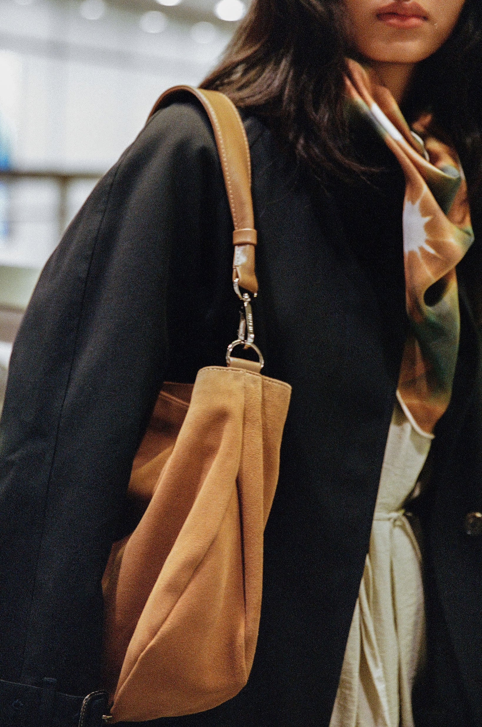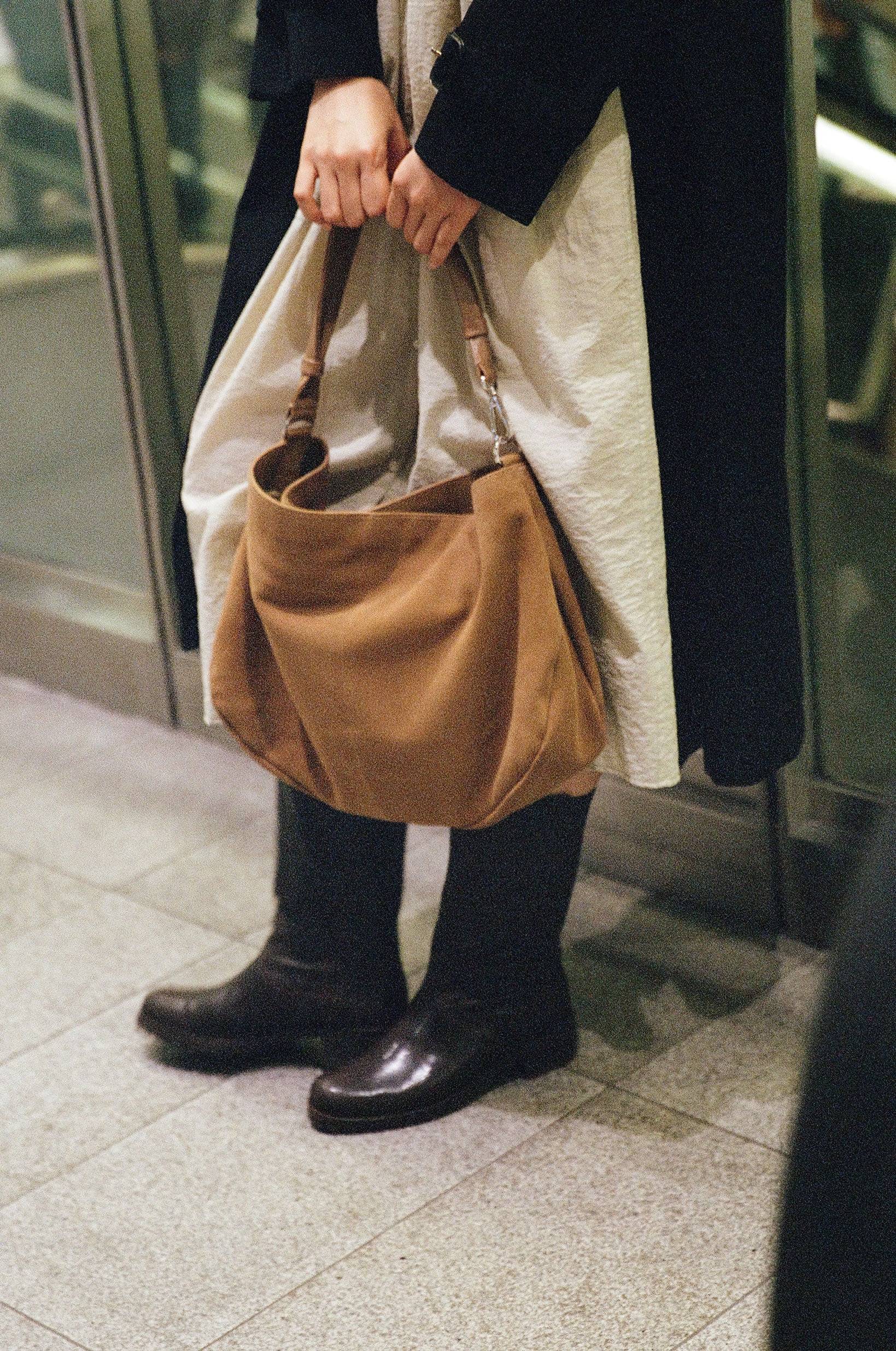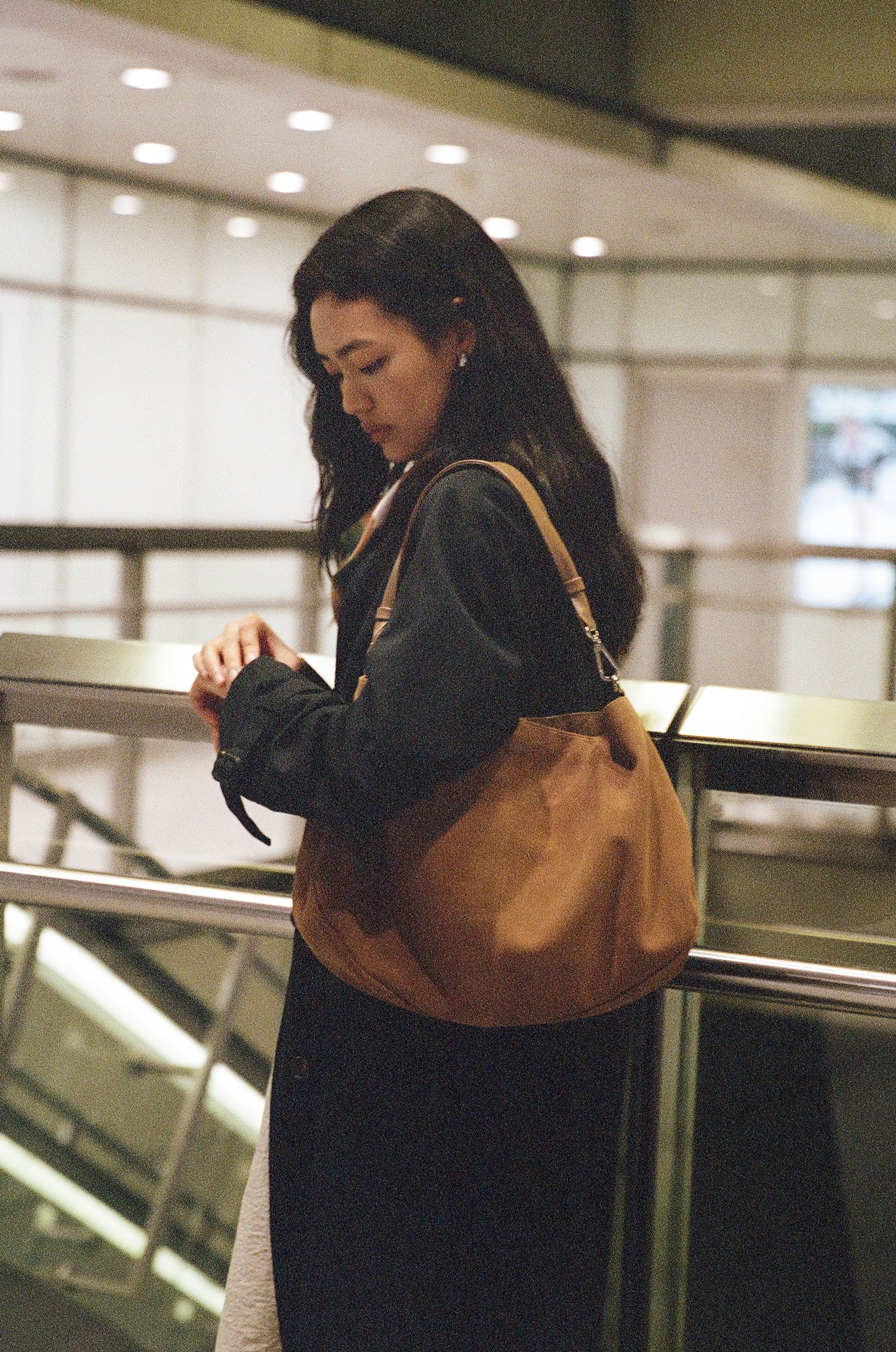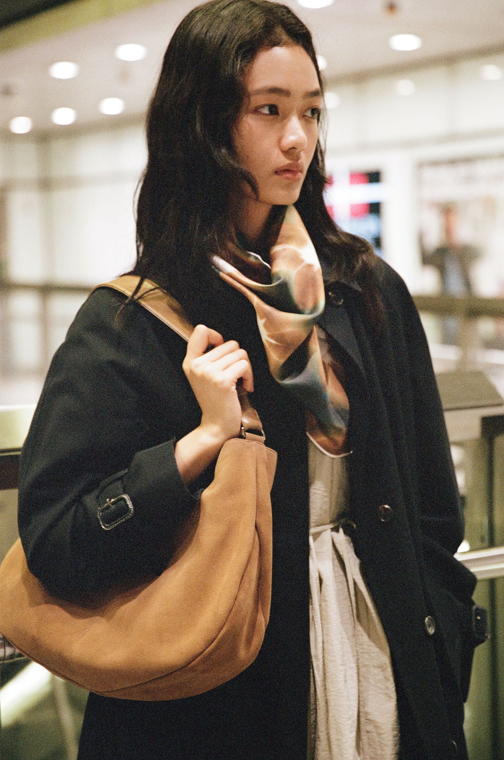 작은 배를 뜻하는 프랑스어 'Nacelle'을 형상화한 나셀백은 부드럽고 유연한 스웨이드 소재로 만들어진 호보백입니다. 투톤이 매력적인 고트 스웨이드 소재는 소프트하게 가공되어 수납하는 소지품에 따라 자연스럽게 모양이 잡히며, 두 겹으로 제작된 스트랩은 편안한 착용감을 제공합니다. 스트랩의 한 쪽 끝에는 로고가 각인된 고리 장식을 사용하였습니다. 내부는 두 칸으로 나뉘어져 있으며, 중앙 패널에는 지퍼를 달아 수납이 가능하도록 하였습니다. 심플한 형태에 버클 장식과 절개로 포인트를 준 나셀백은 가벼운 무게감으로 사계절 어느 착장에나 잘 어우러집니다.