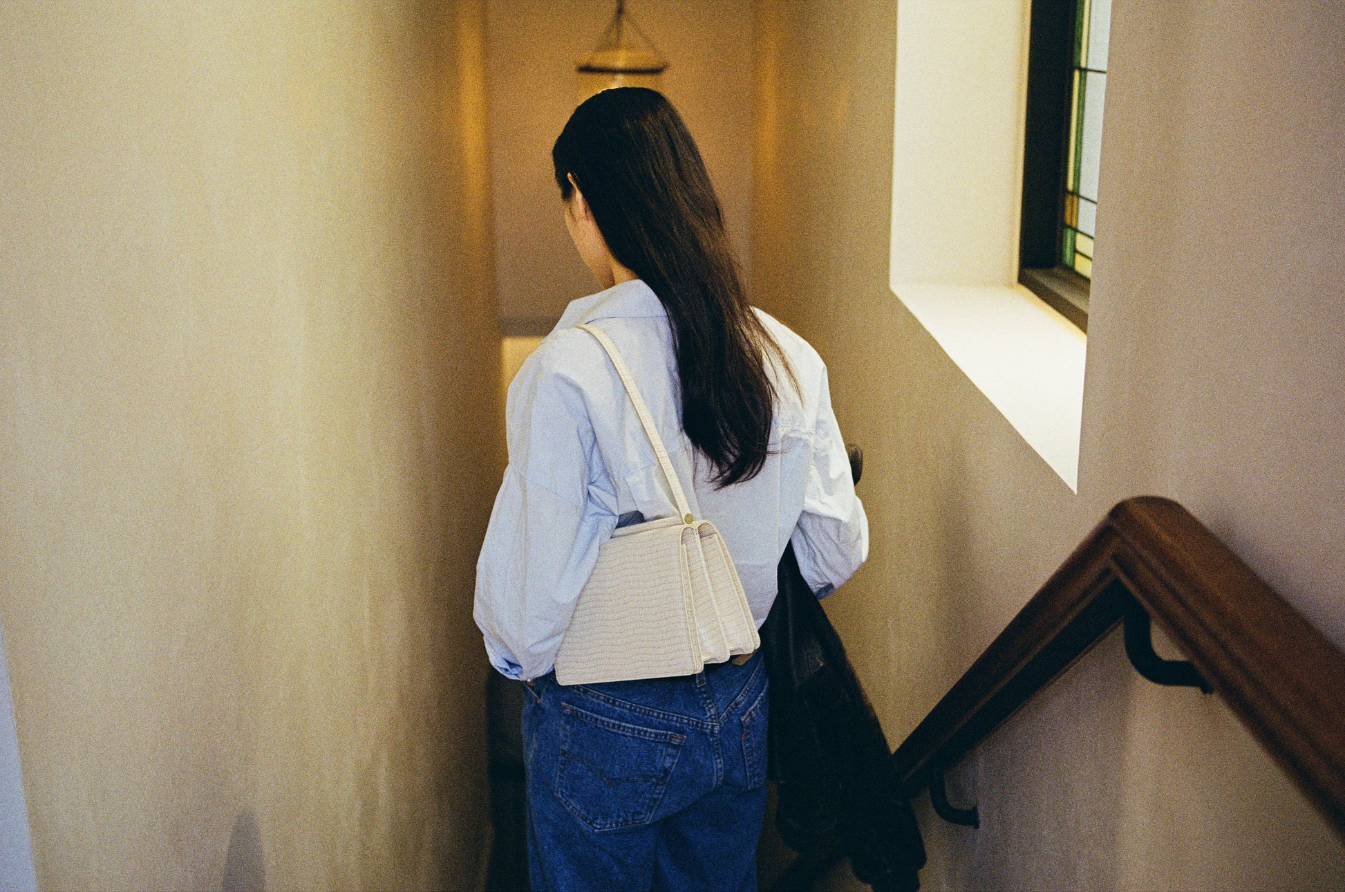 포멜백은 네모 반듯하고 단정한 형태의 숄더백으로 투티에의 시그니처 모델 중 하나입니다. 간결한 바디의 모양과 투티에의 상징적인 브라스 바 장식을 이어주는 하나의 스트랩이 특징적입니다. 알맞은 길이로 떨어지는 스트랩은 숄더로 착용이 가능하며, 앞, 뒷면 각각 플랩이 있는 빈티지한 디자인으로 내부 포켓이 있는 부분과 구별하여 양쪽 모두 수납하실 수 있습니다.
